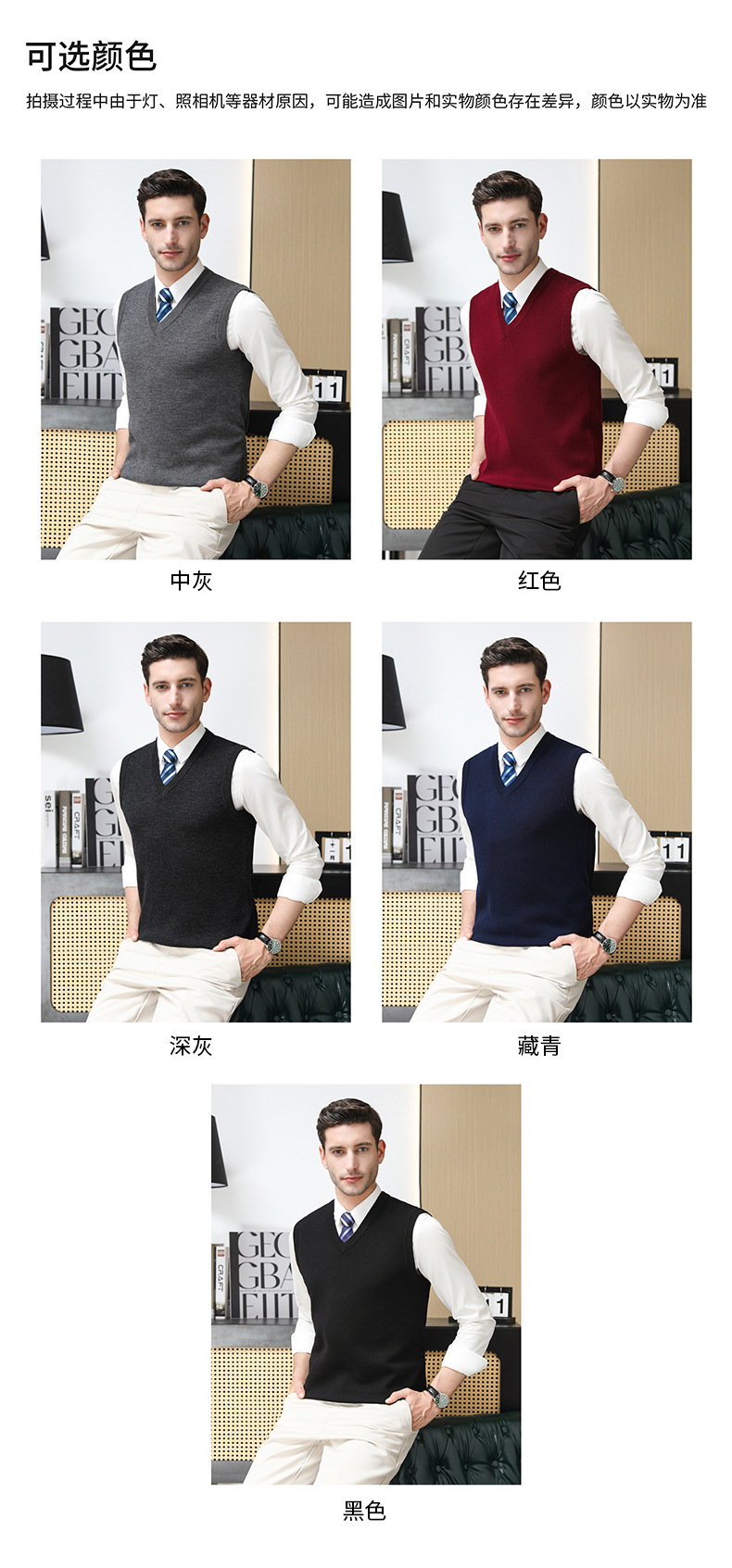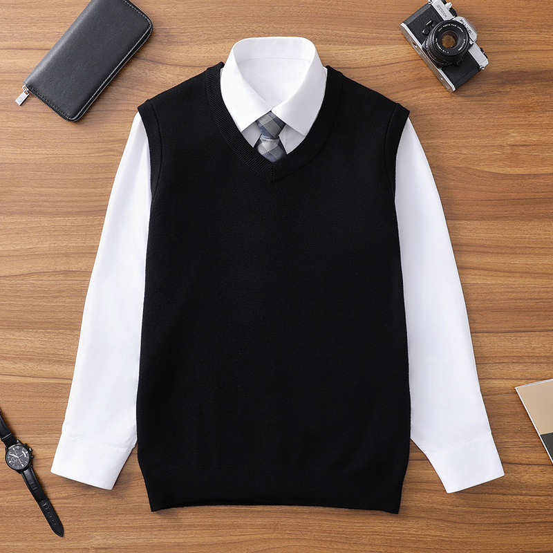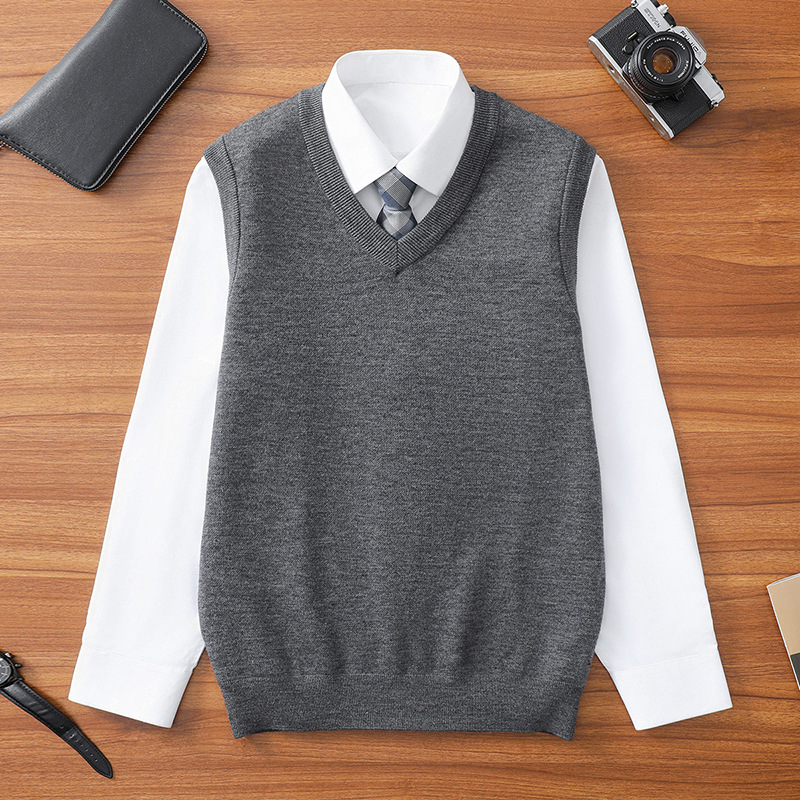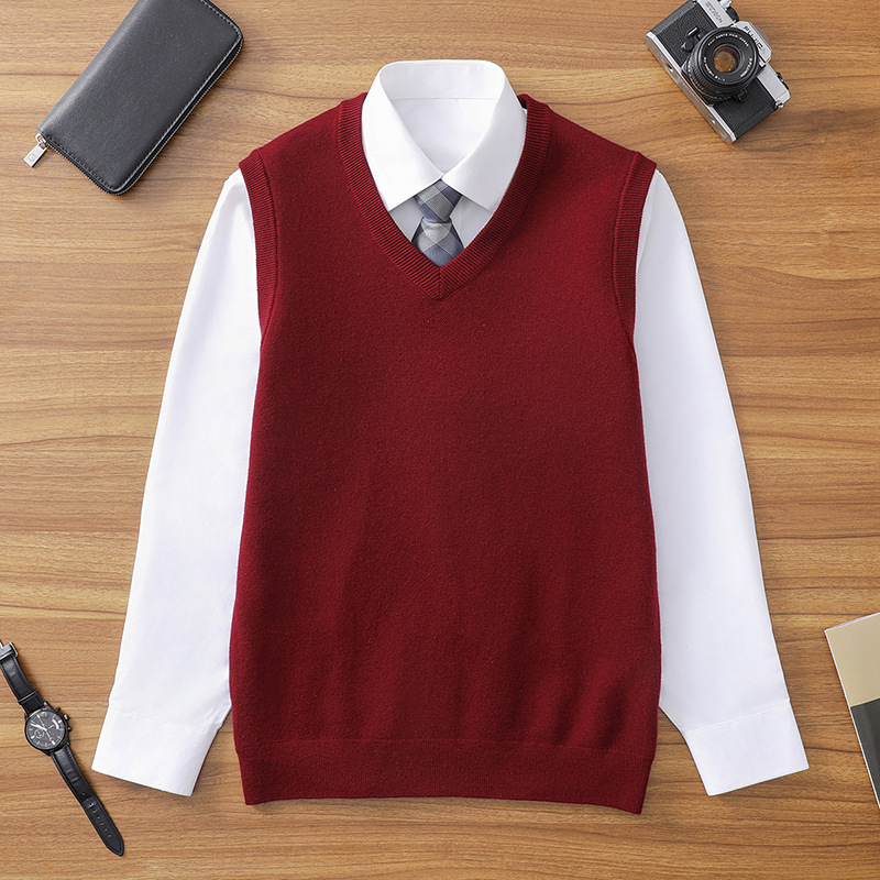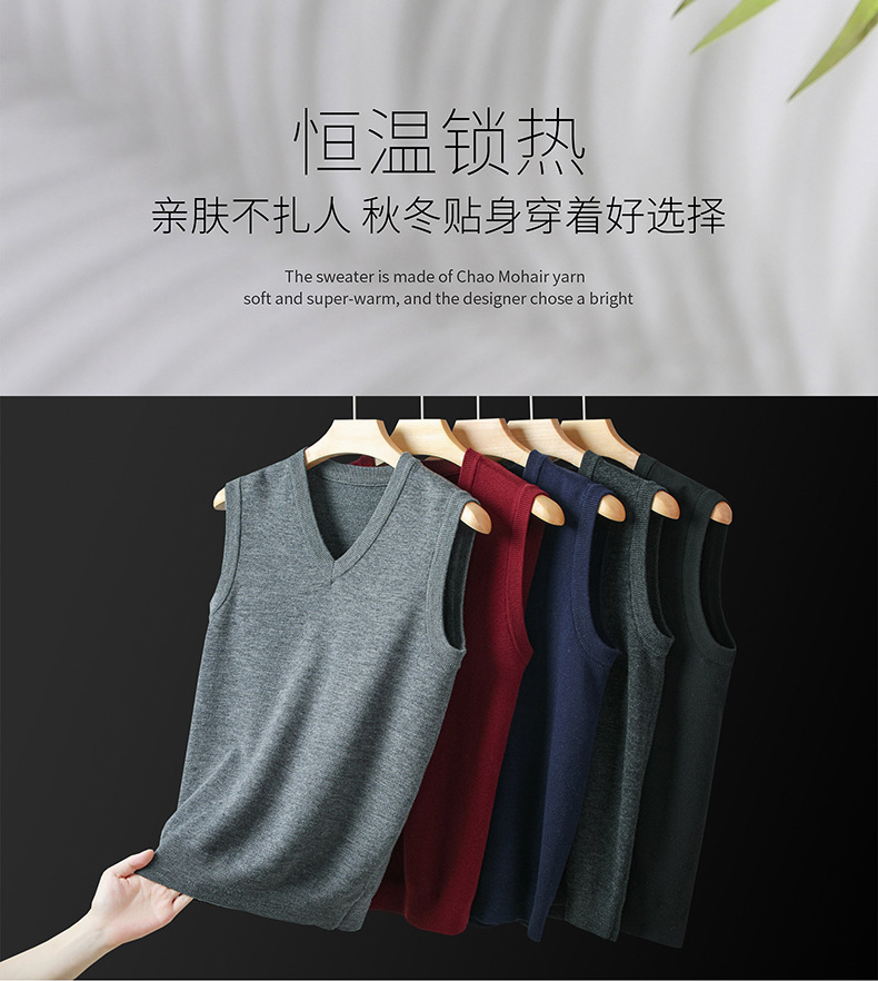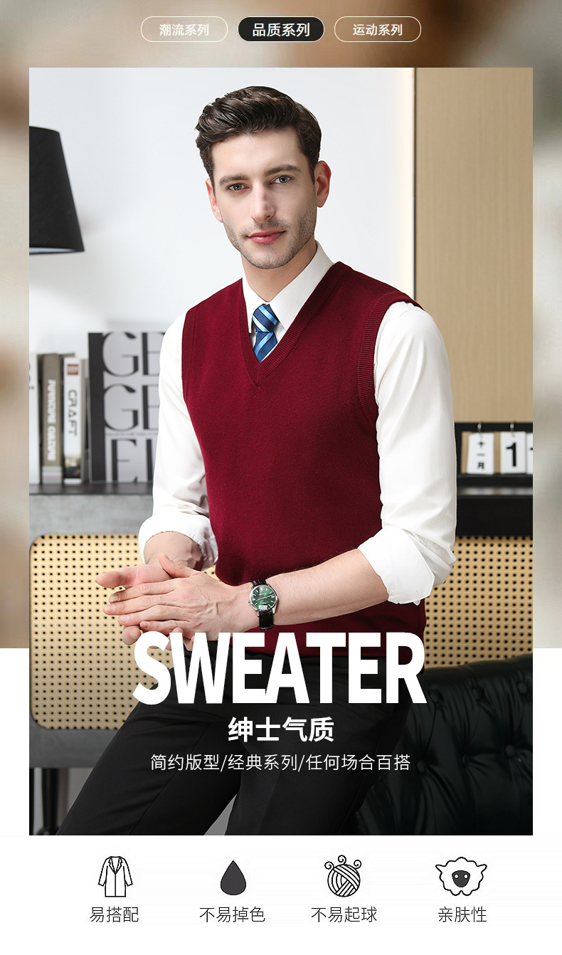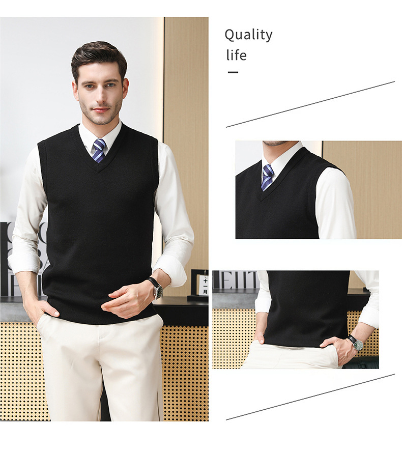 Puyuan 가을과 겨울 100 메리노 울 조끼 남자 V-Neck 조끼 민소매 두꺼운 스웨터 아빠 Waistcoat