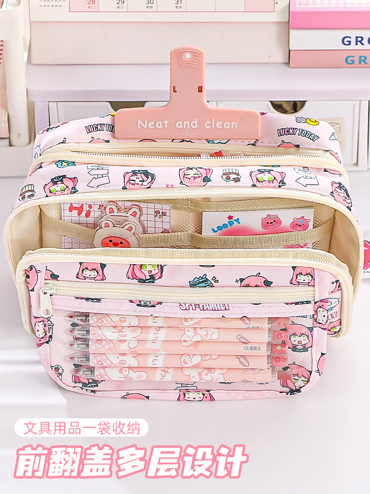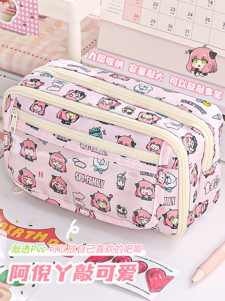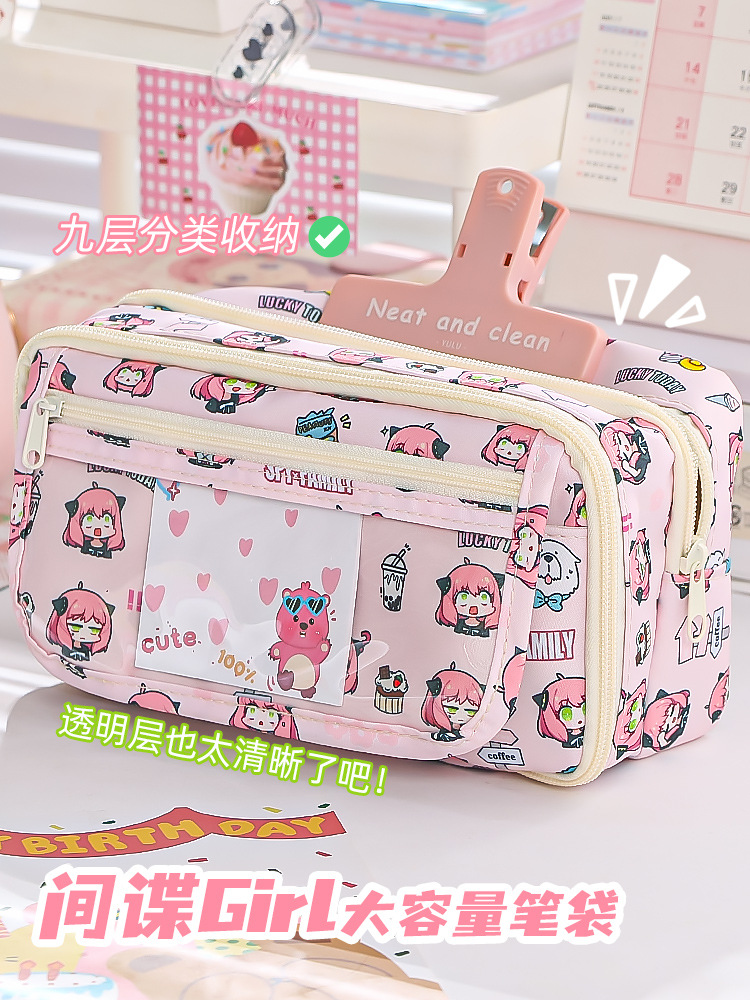 스파이 GIRL2024 새로운 대용량 연필 케이스 소녀의 심장 만화 통증 가방 다기능 문구 상자스토어 가기