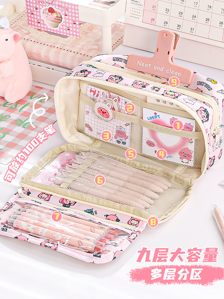 스파이 GIRL2024 새로운 대용량 연필 케이스 소녀의 심장 만화 통증 가방 다기능 문구 상자