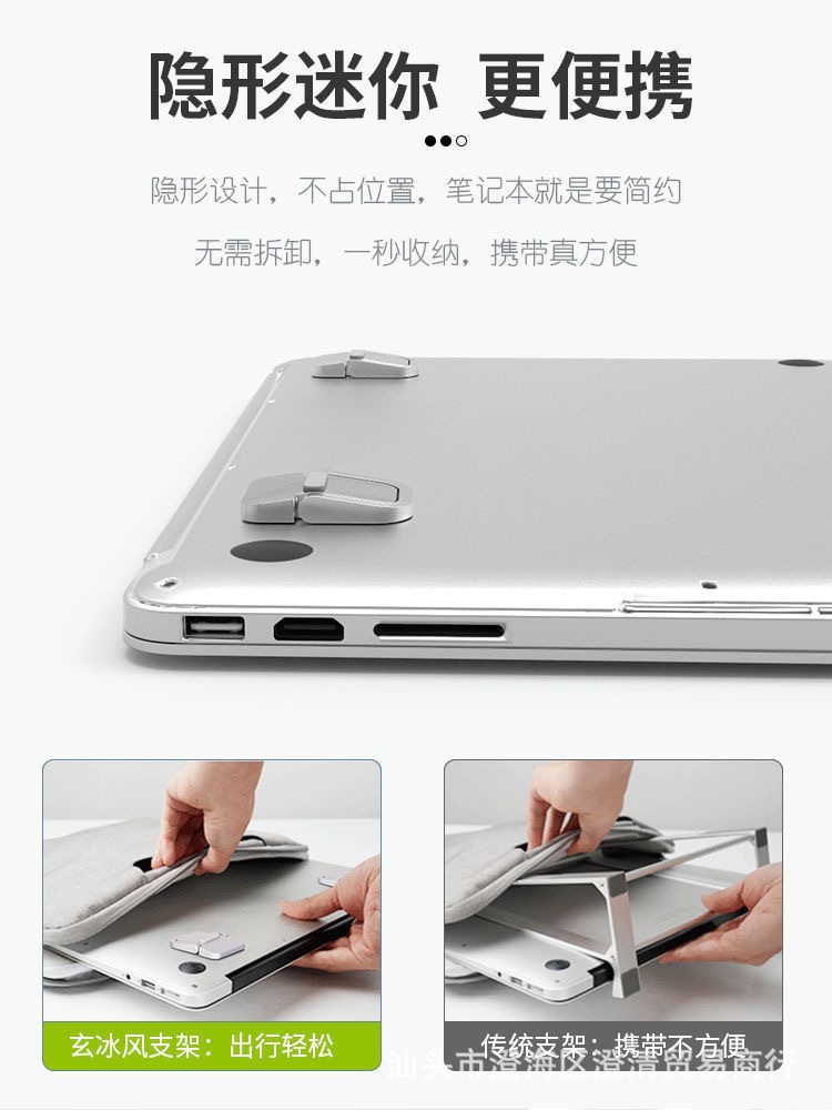알루미늄 합금 노트북 스탠드, 휴대용 높이 조절 냉각 거치대, 접이식 베이스, 가볍고 얇음