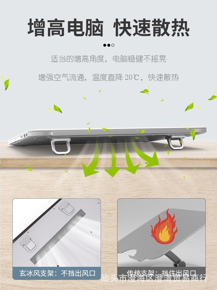 알루미늄 합금 노트북 스탠드, 휴대용 높이 조절 냉각 거치대, 접이식 베이스, 가볍고 얇음스토어 가기