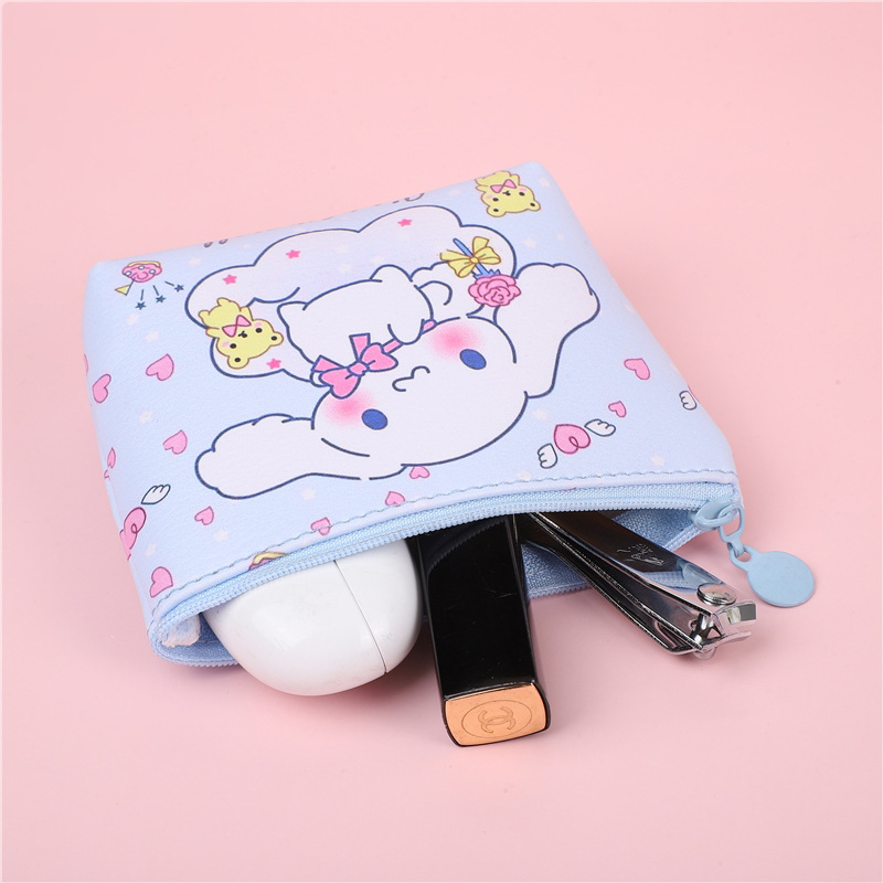 한국 스타일 소녀 심장 만화 동전 지갑 학생 귀여운 휴대용 헤드폰 방수 가죽 보관 가방 동전 가방
