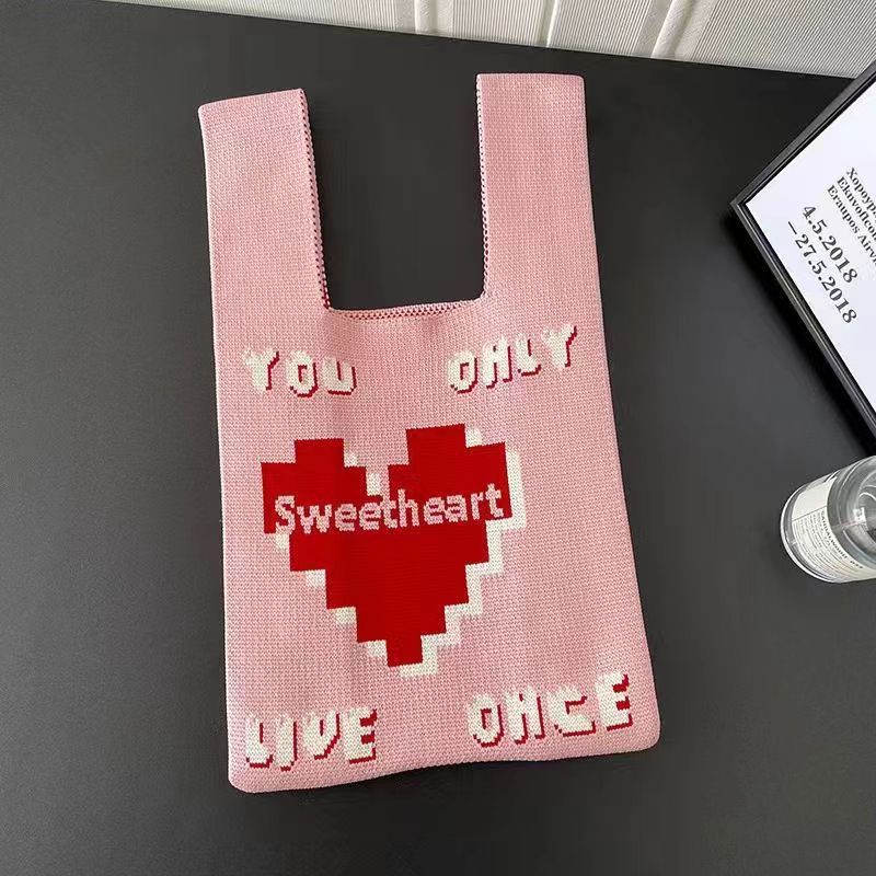 여성 니트 가방 손으로 선물 가방 스퀘어 가방 작은 가방 니트 가방 패션 만화 핸드백 캐주얼 토트 백