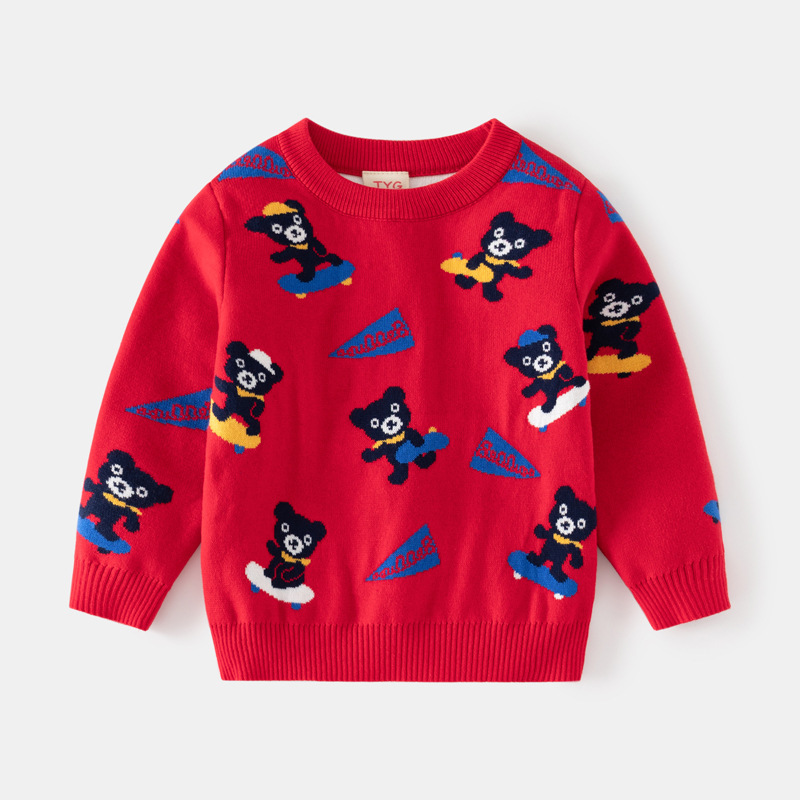 소년과 소녀를위한 깨진 크기 특수 아동복 더블 레이어 코튼 풀오버 스웨터 새로운 아기의 다이아몬드 자카드 파인 스웨터