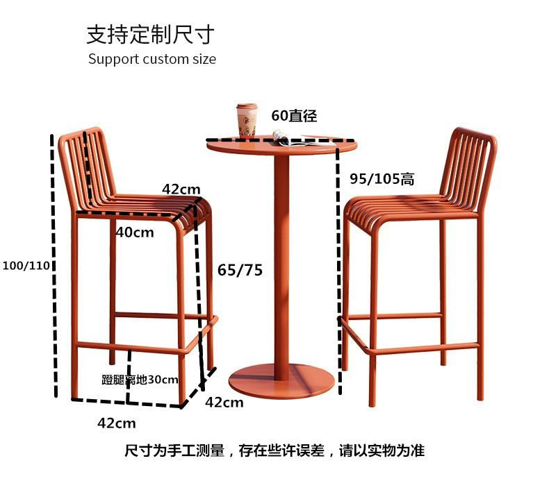 야외 창조적 인 바 테이블과 의자 조합 우유 차 가게 카페 야외 식사 테이블 및 의자 공원 안뜰 높은 테이블 및 의자