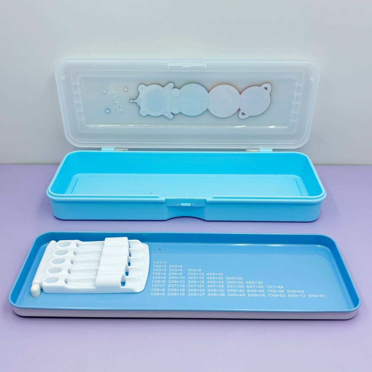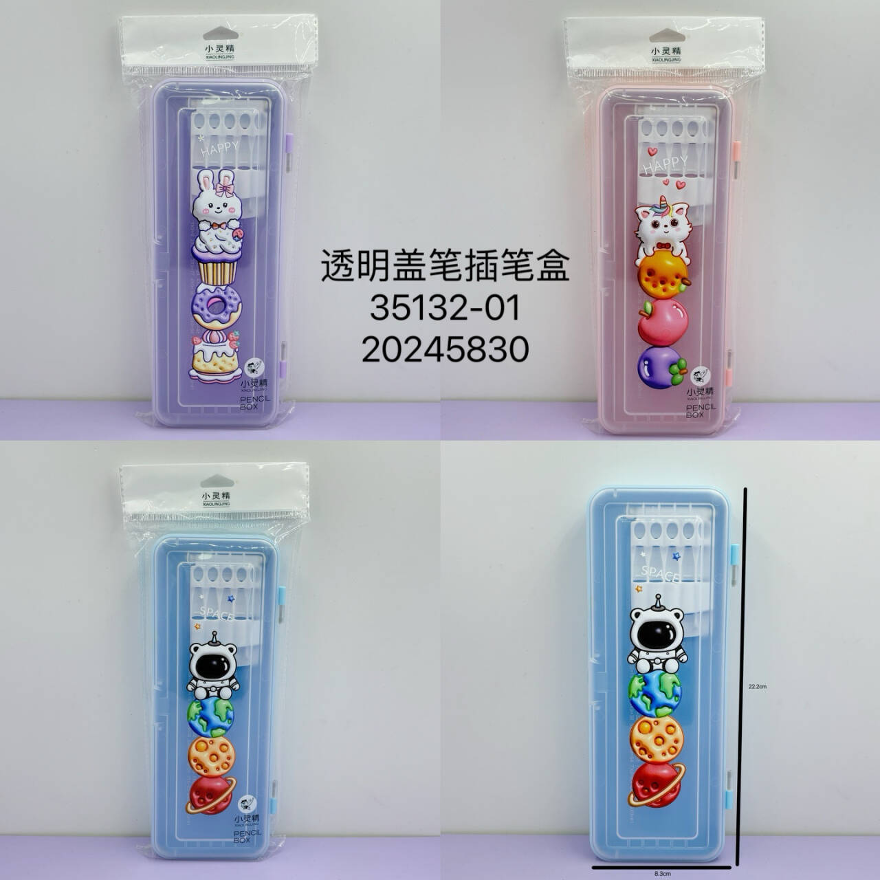 Lingjing 창조적 인 투명 뚜껑 펜 케이스 연필 케이스 만화 더블 레이어 유치원 어린이를위한 유니섹스 연필 케이스