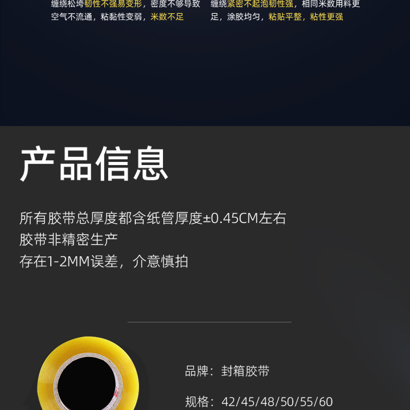 • 투명 노란색, 폭 4.5, 두께 1.0, 길이 50(90롤 한 상자)