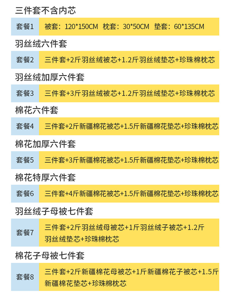 • (코어 3종세트 제외) 이불커버 + 매트리스커버 + 베갯잇