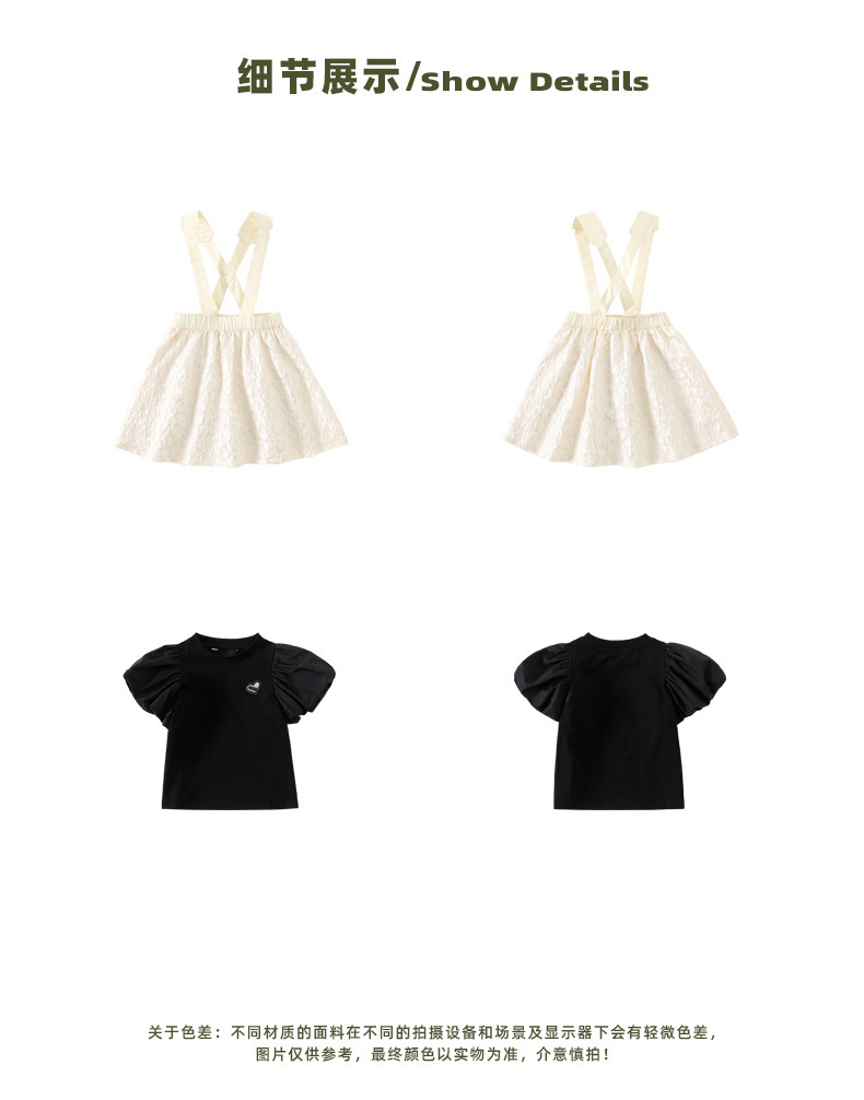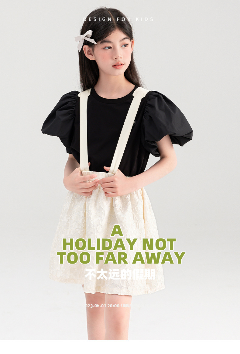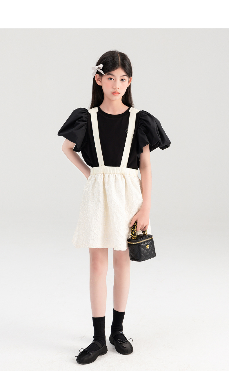 Amoy Girl's Skirt 여름 2024 새로운 스타일 중대형 어린이 캐주얼 러브 스트랩 스커트 유행 올 매치 트렌디 스커트스토어 가기