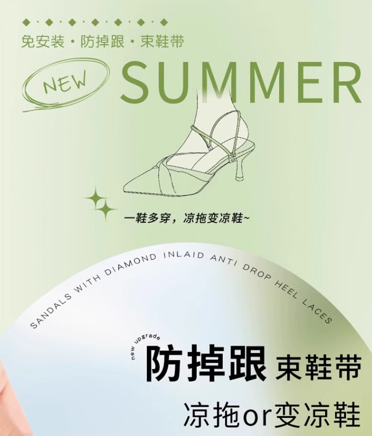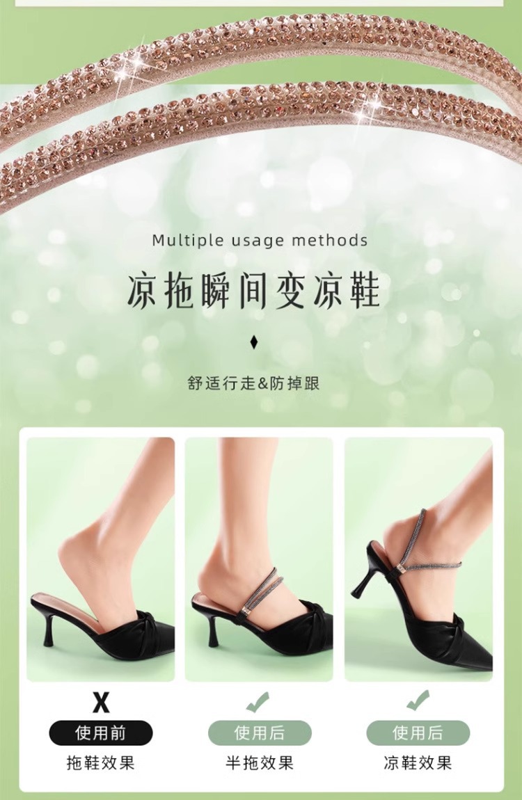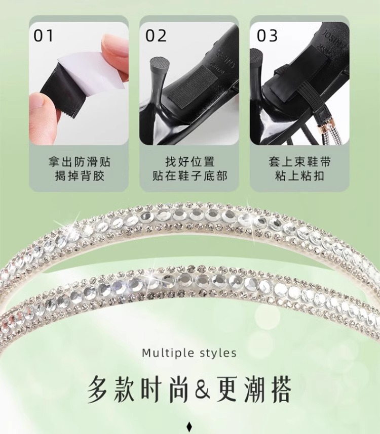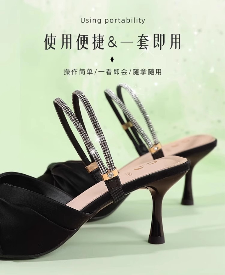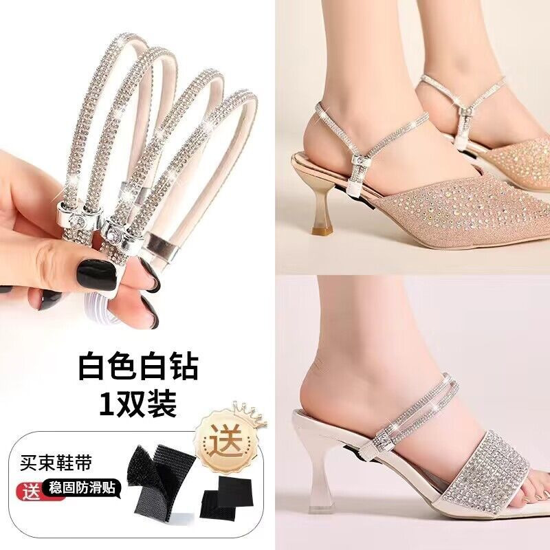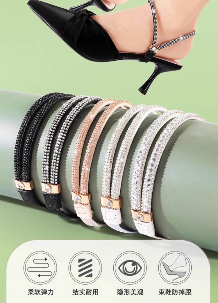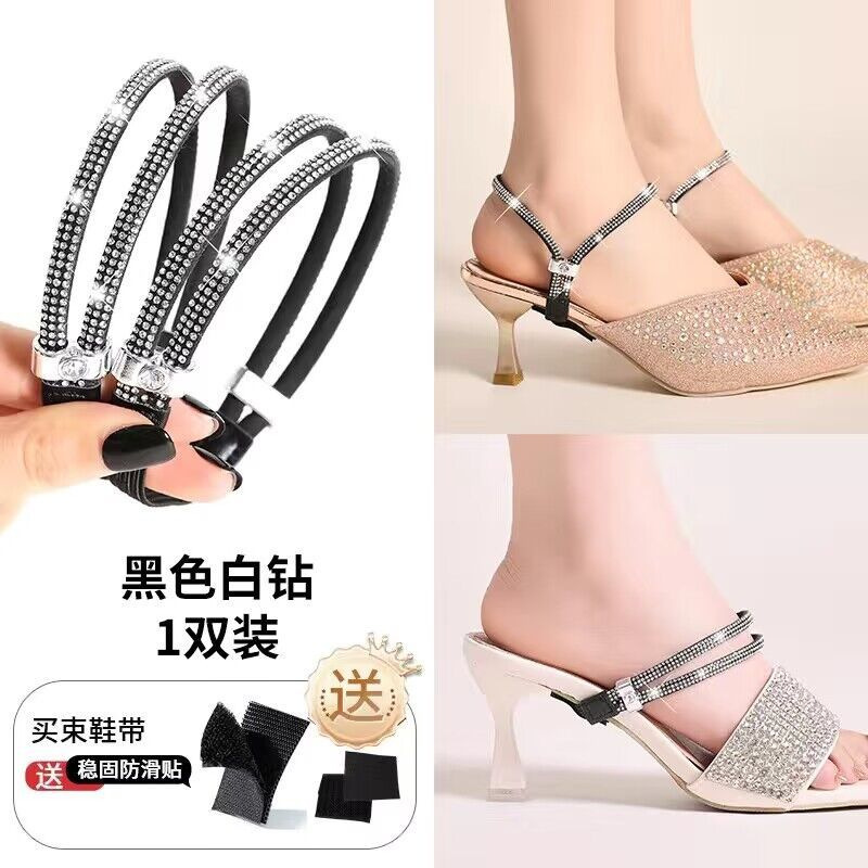 힐 설치가없는 안티 드롭 힐 타이 신발 끈이 달린 하이힐 신발-멀티 컬러 드릴 안티 드롭 탄성 고정 신발 끈스토어 가기