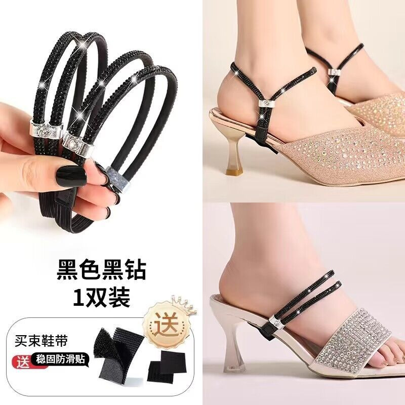 힐 설치가없는 안티 드롭 힐 타이 신발 끈이 달린 하이힐 신발-멀티 컬러 드릴 안티 드롭 탄성 고정 신발 끈