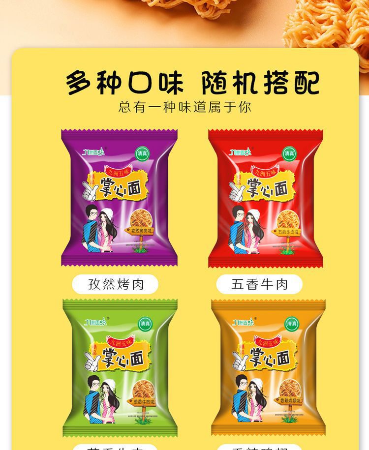 Jiuzhou Wuwei Palm Noodles 바삭한 국수 멀티 풍미 드라이 식생활 인스턴트 국수 전체 사례 어린 시절 향수 레저 스낵 도매스토어 가기
