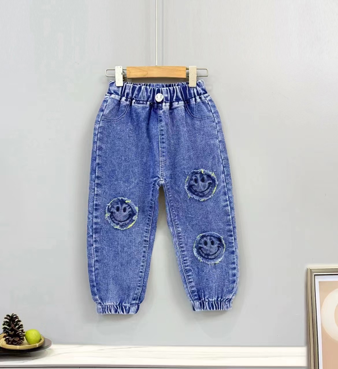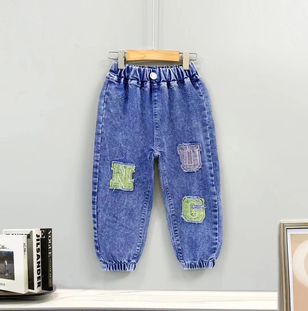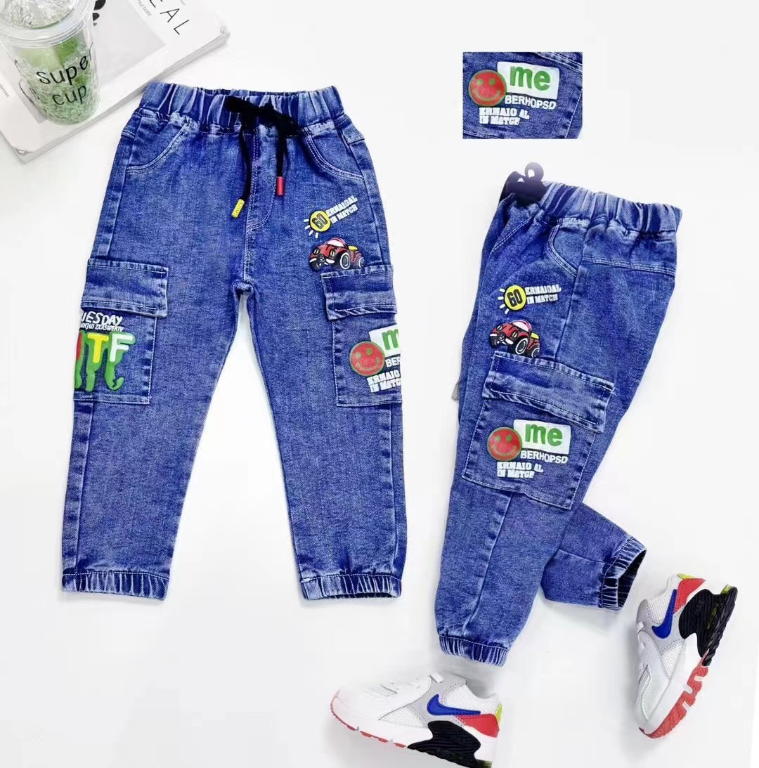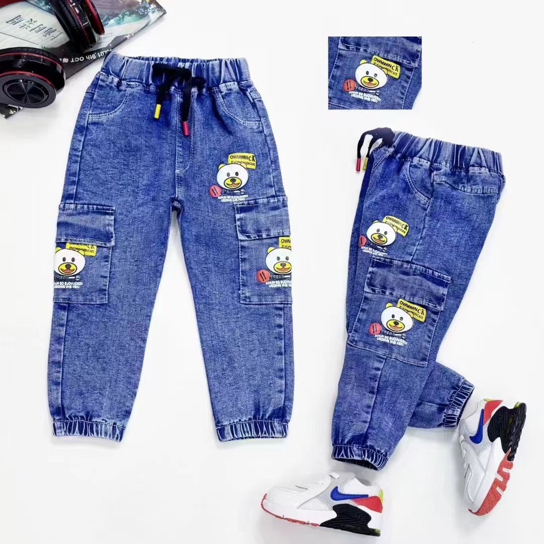 어린이 청바지 봄과 가을 새로운 만화 작업복 소년 바지 여자 올 매치 서양 한국 바지 도매스토어 가기