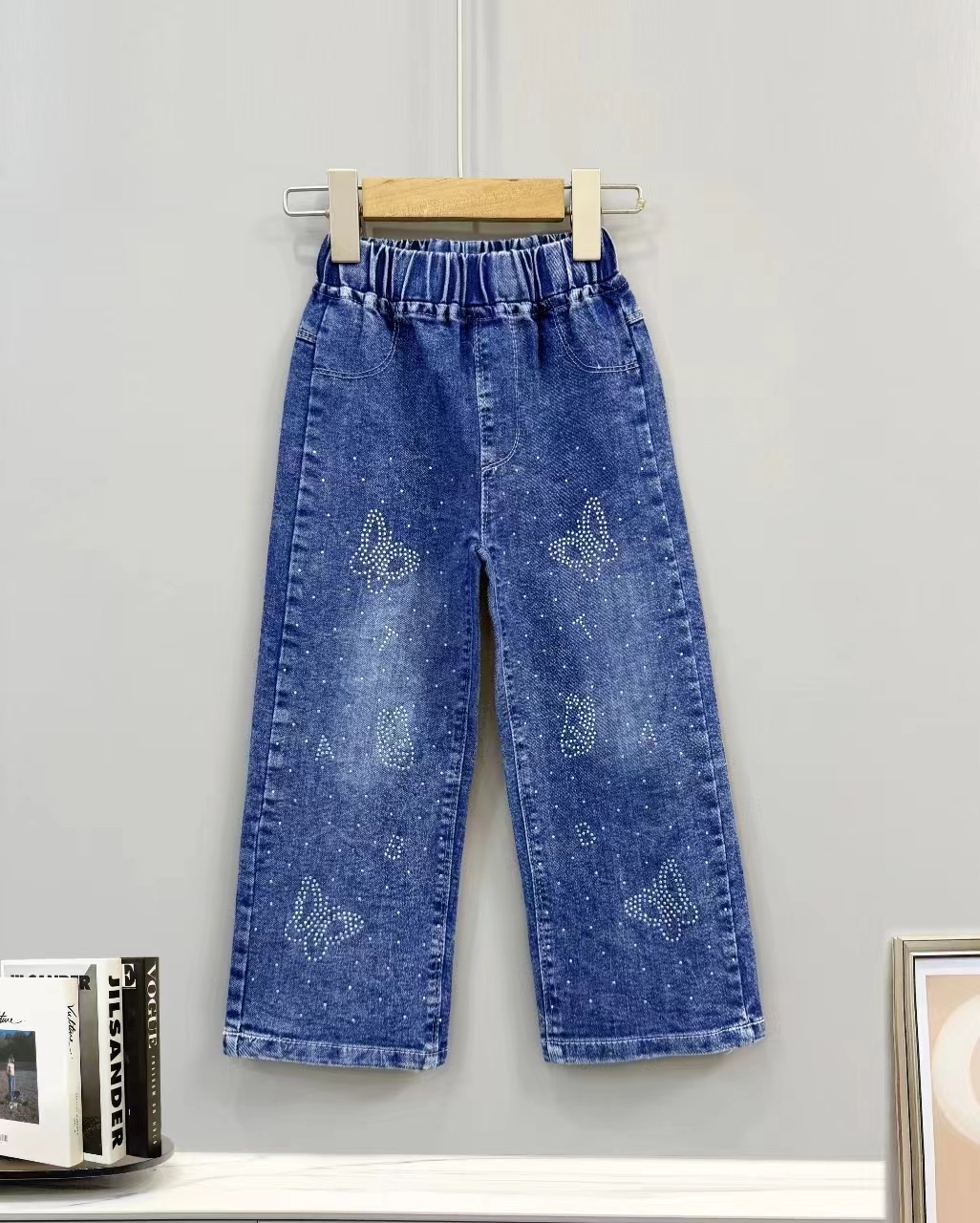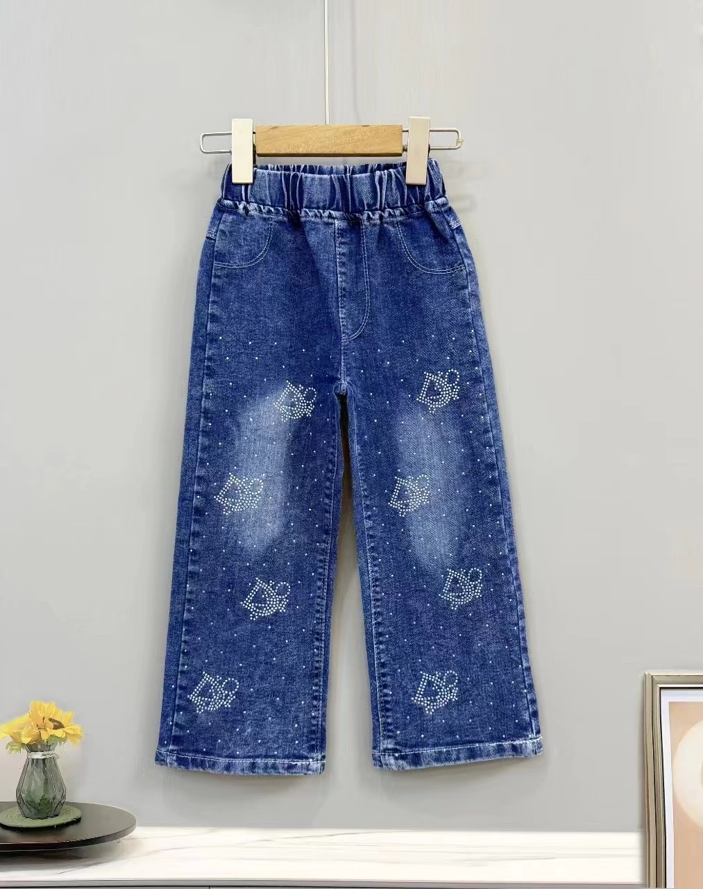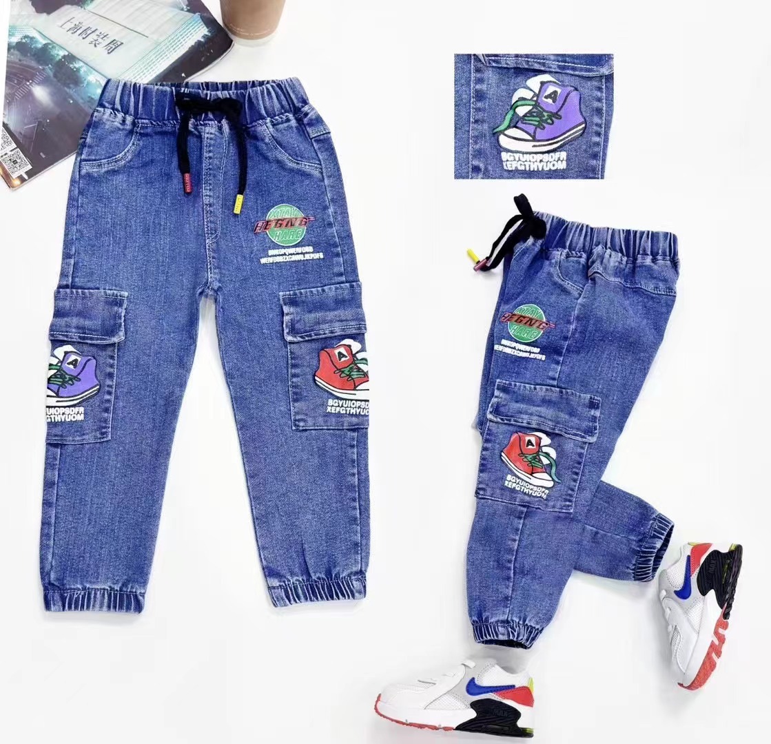 어린이 청바지 봄과 가을 새로운 만화 작업복 소년 바지 여자 올 매치 서양 한국 바지 도매스토어 가기