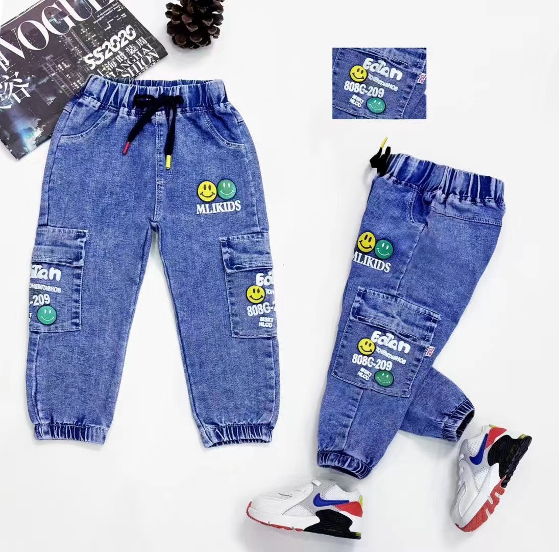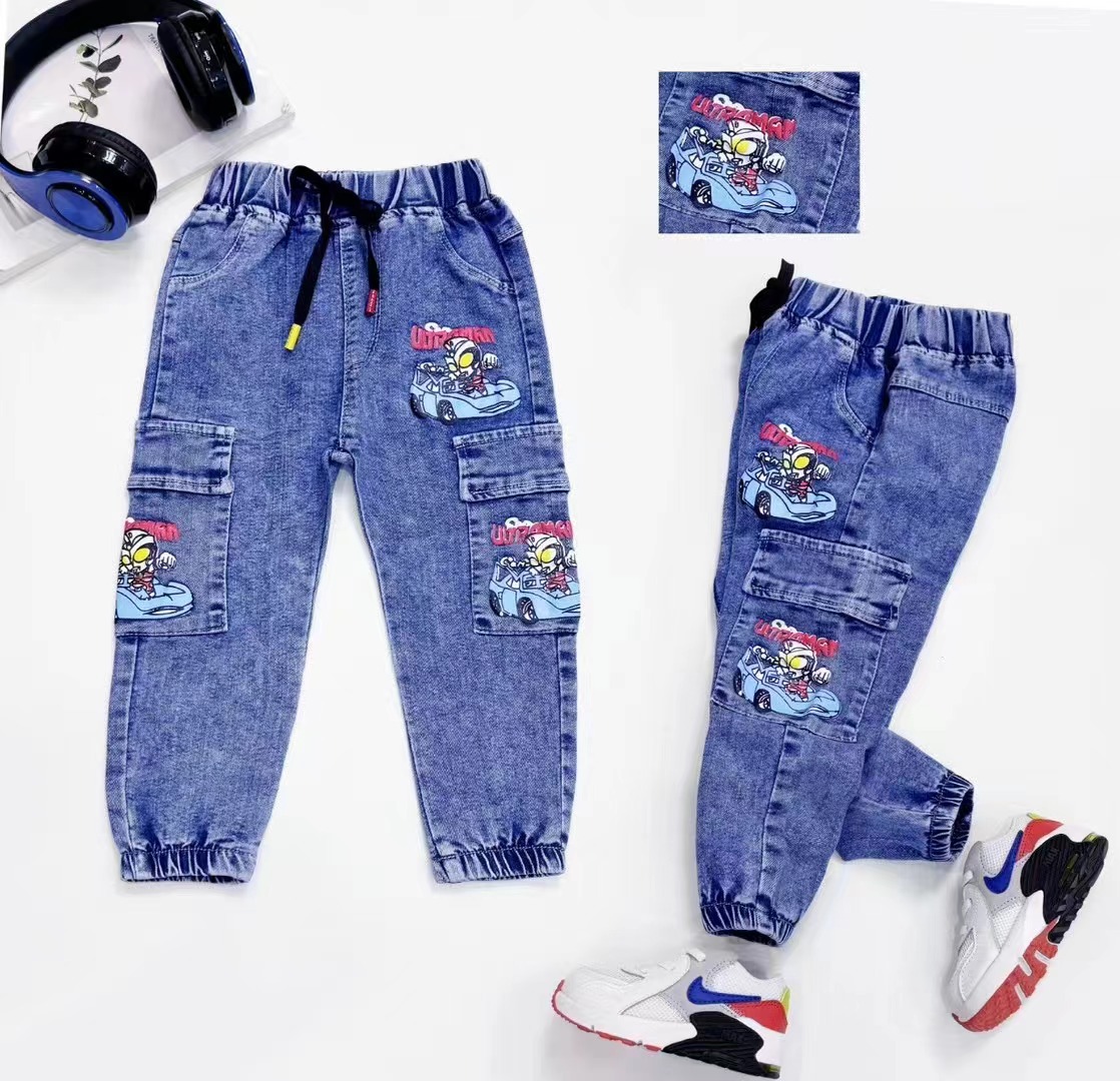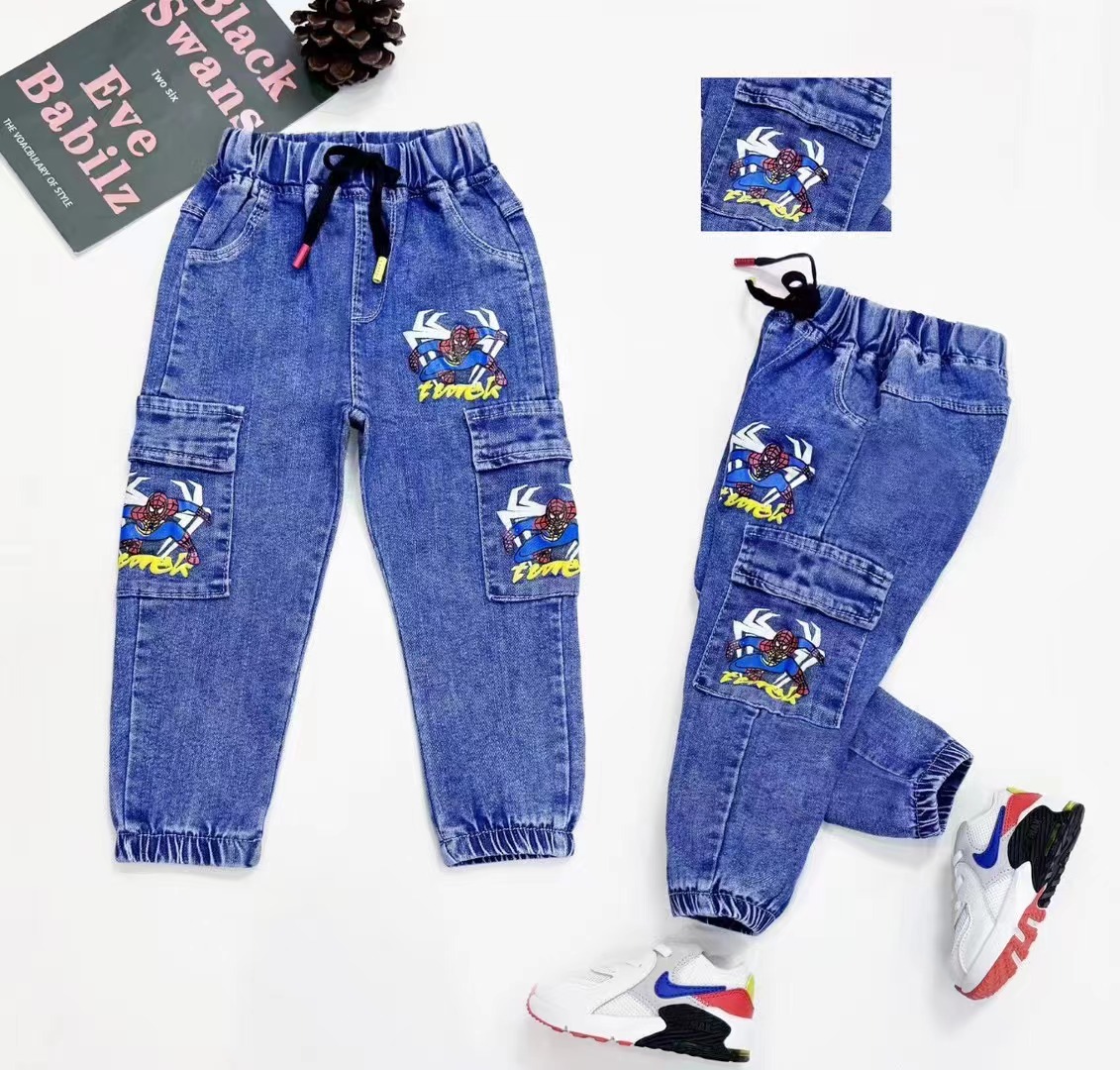 어린이 청바지 봄과 가을 새로운 만화 작업복 소년 바지 여자 올 매치 서양 한국 바지 도매