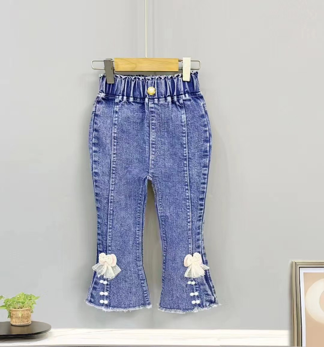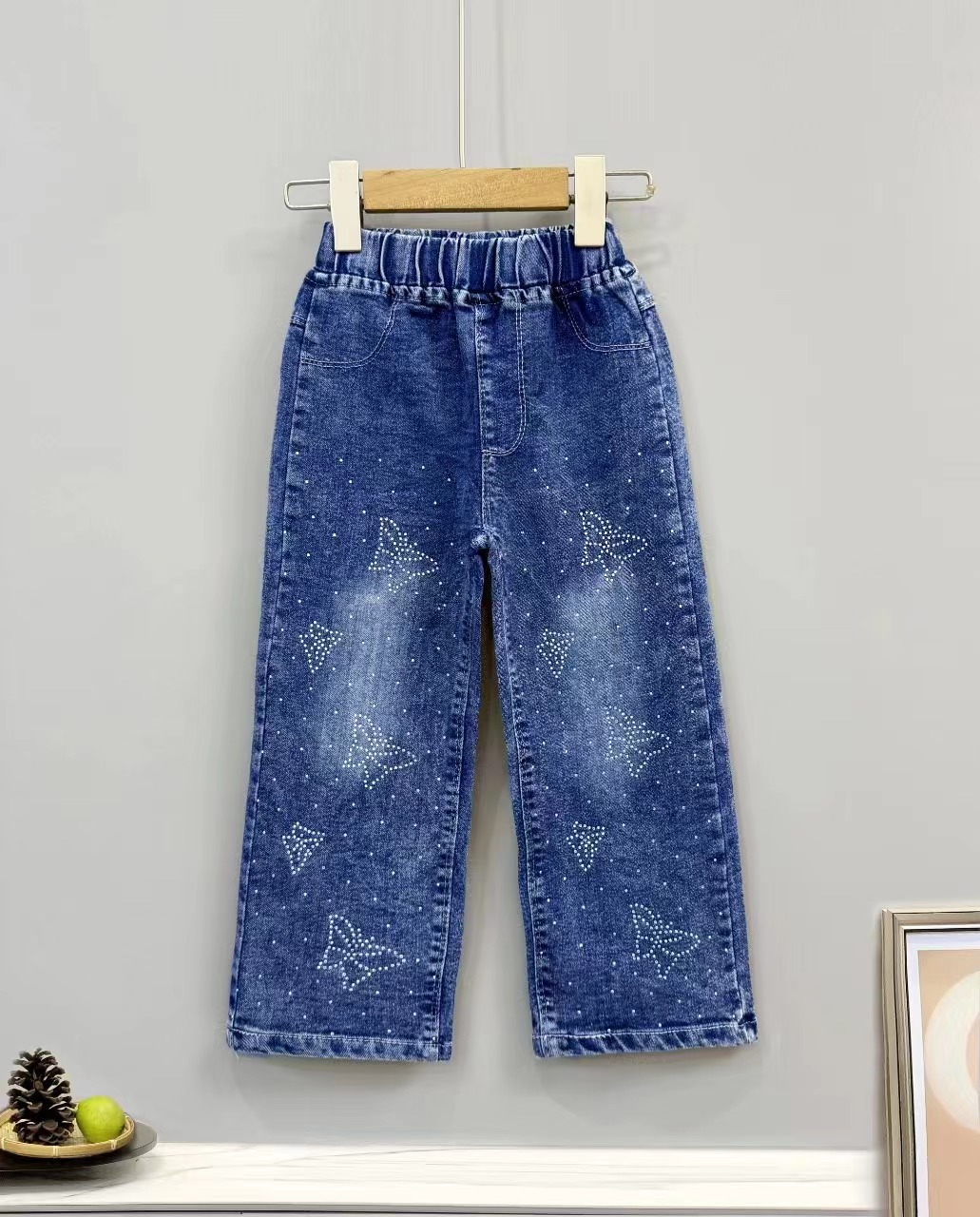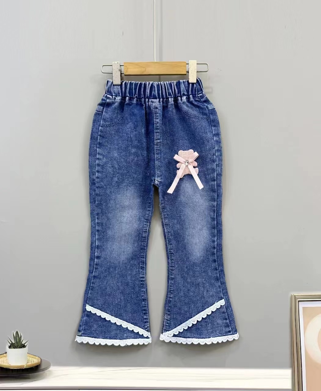 어린이 청바지 봄과 가을 새로운 만화 작업복 소년 바지 여자 올 매치 서양 한국 바지 도매