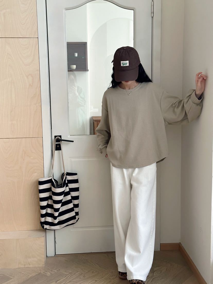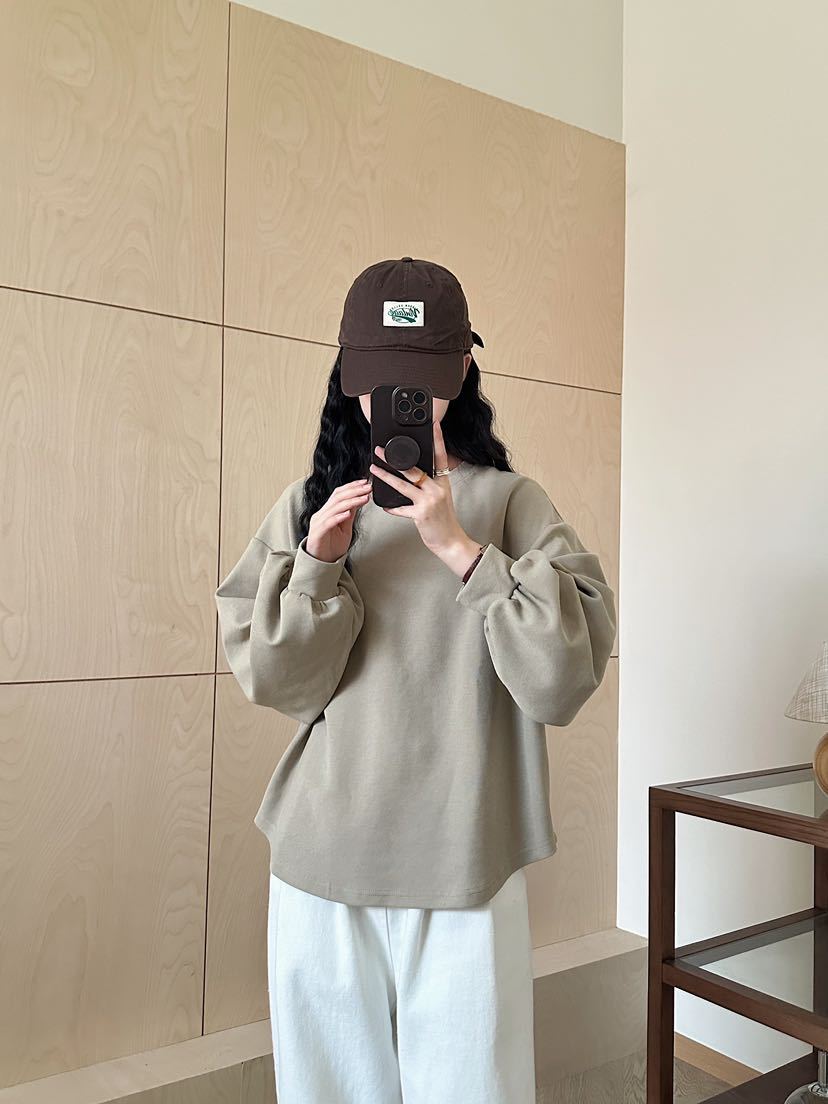 기본 풀오버 티셔츠 2024 가을 새로운 단색 간단한 둥근 목 긴 소매 여성을위한 모든 경기 루즈베이스 셔츠스토어 가기