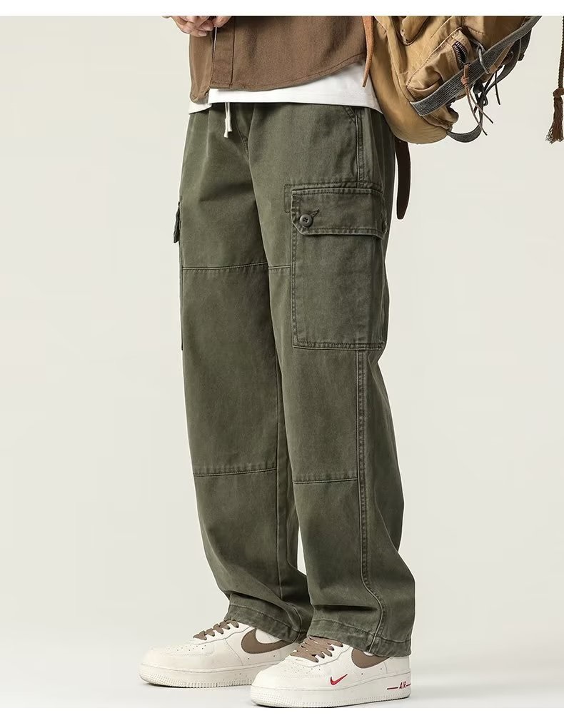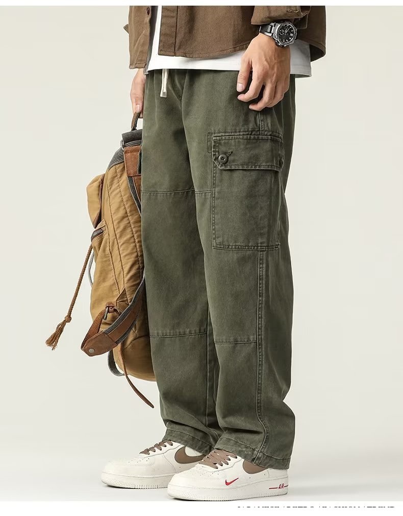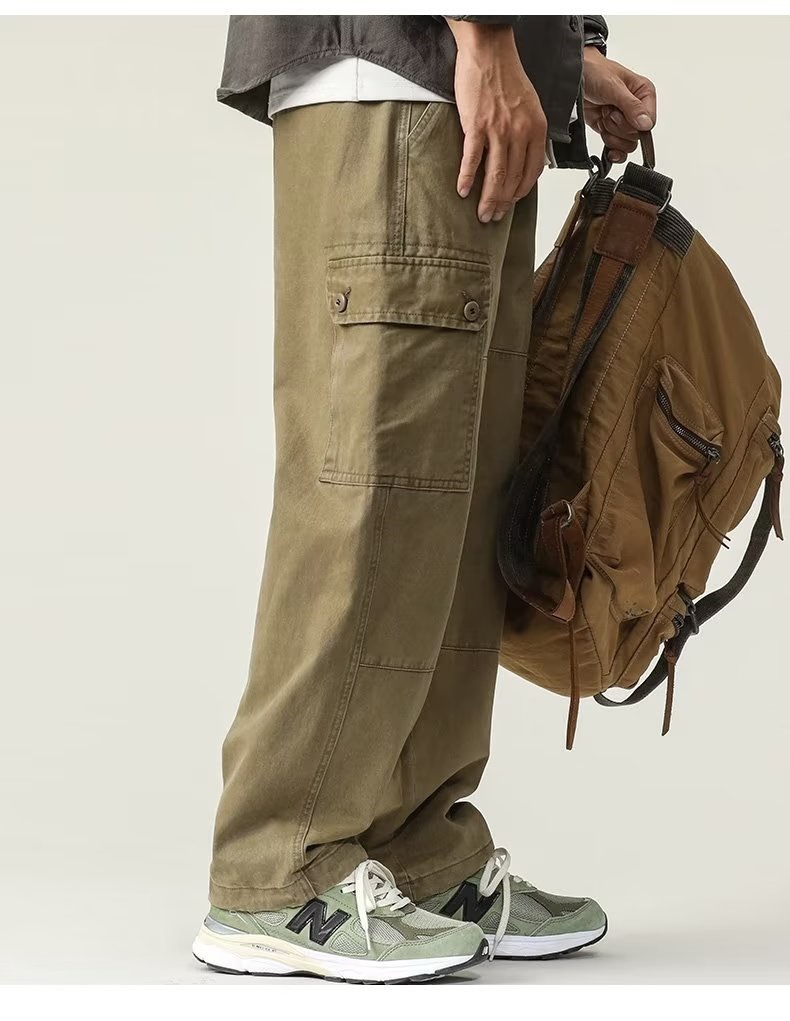 일본식 트렌디 브랜드 스트레이트 툴링 바지 남자 가을 트렌디 올 매치 캐주얼 바지 남자 드로우 스트링 레트로 멀티 포켓스토어 가기