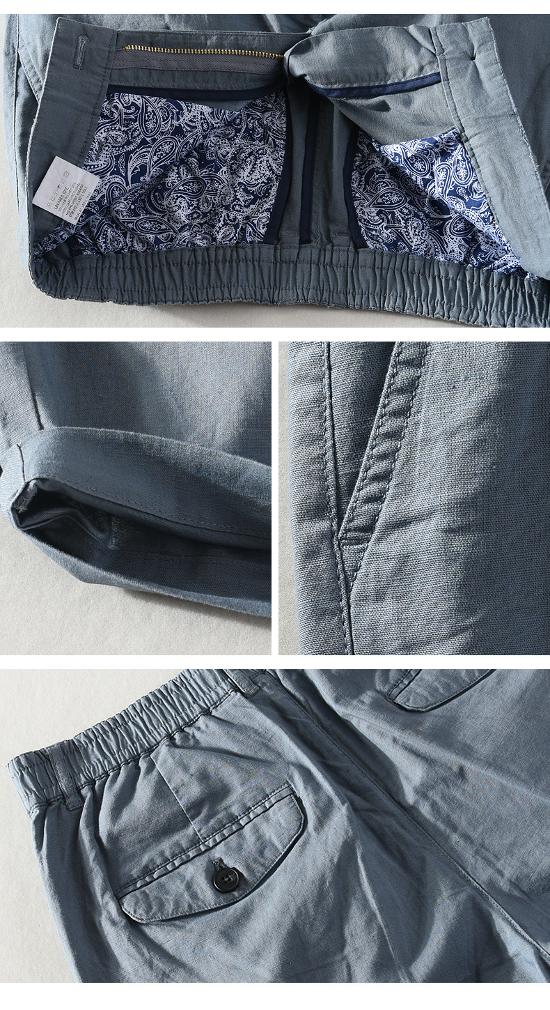 H002 여름 새로운 남성 캐주얼 린넨 반바지 남성 청소년 얇은 테더 탄성 헤드 코튼 린넨 바지스토어 가기