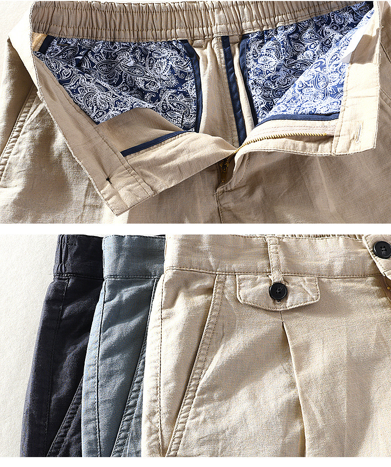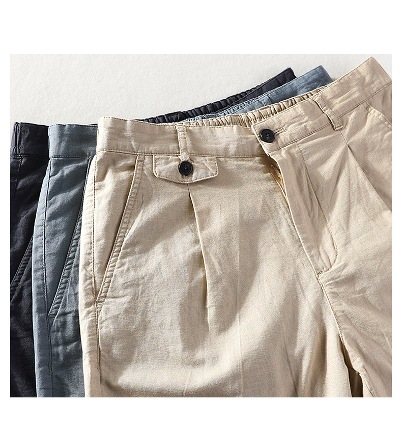 H002 여름 새로운 남성 캐주얼 린넨 반바지 남성 청소년 얇은 테더 탄성 헤드 코튼 린넨 바지