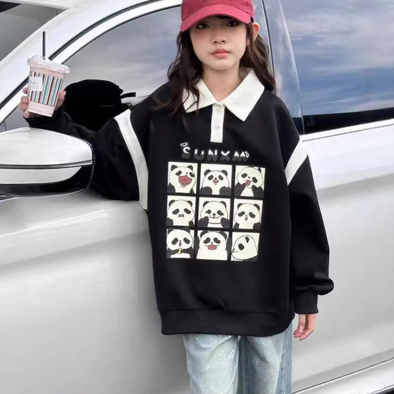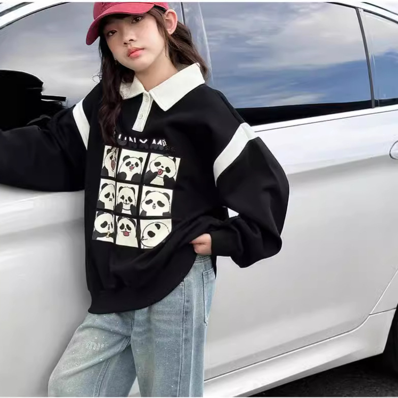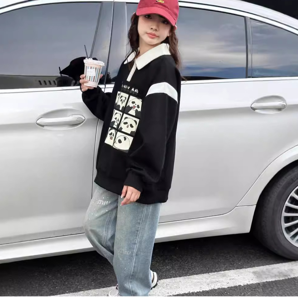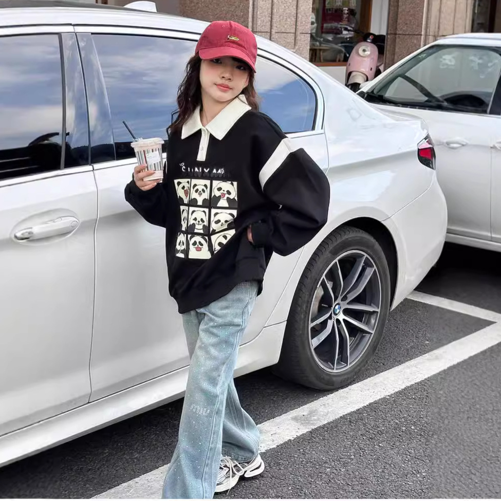 소녀 봄 가을 2024 새로운 어린이 이른 가을 긴 소매 가을 원피스 큰 어린이 가을 만화 서양식 탑