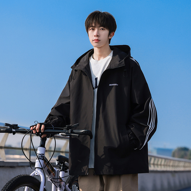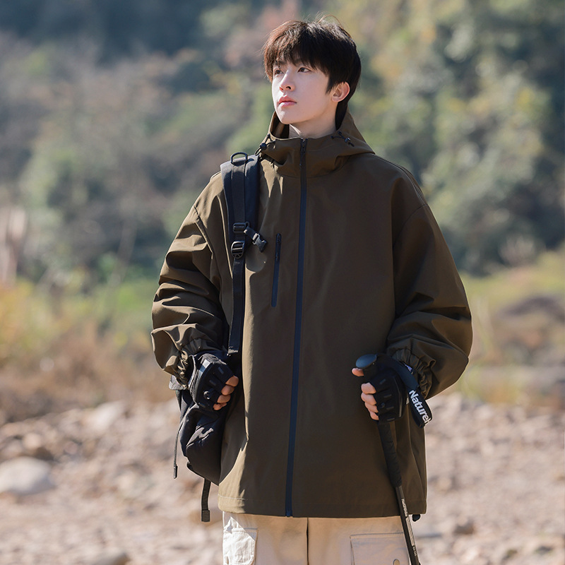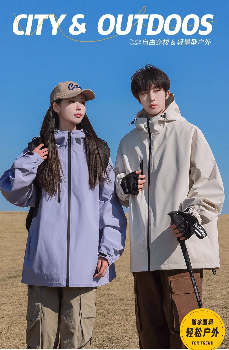 산 트렌디 브랜드 후드 크록 재킷 남자의 봄과 가을 커플 야외 충전 옷 느슨한 방풍 방수 재킷