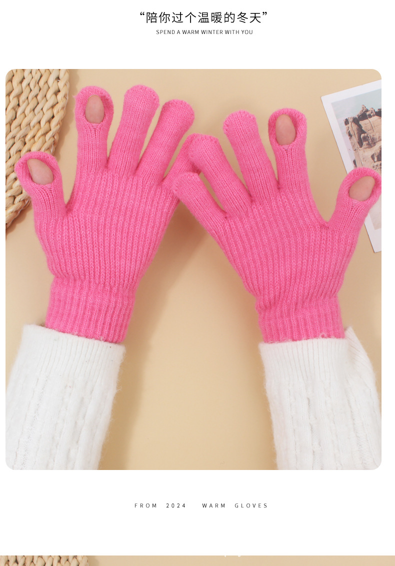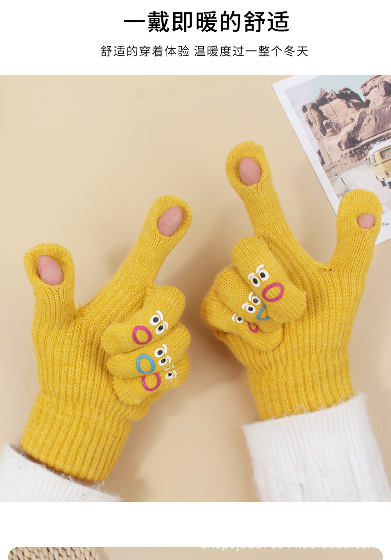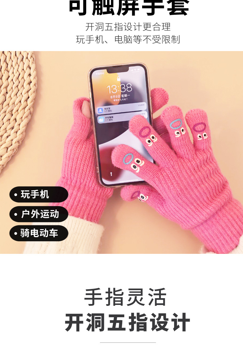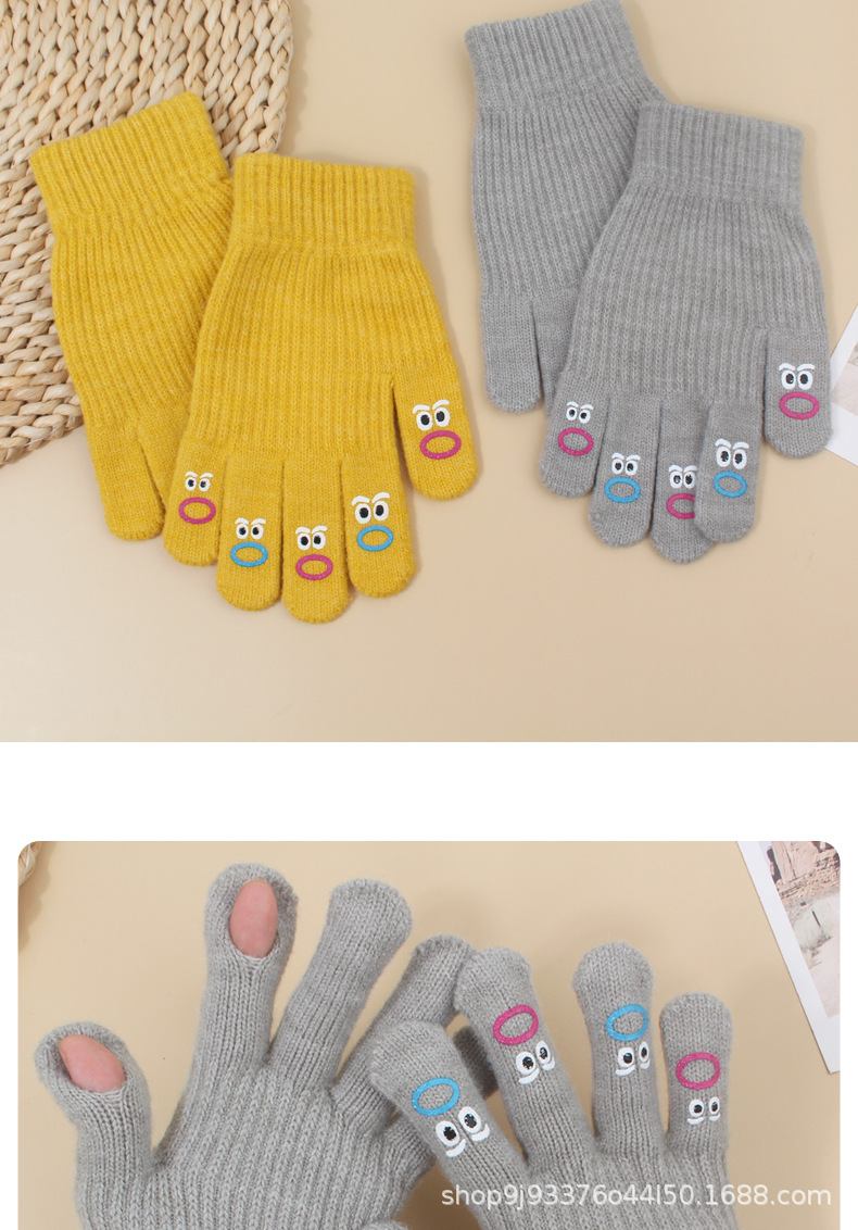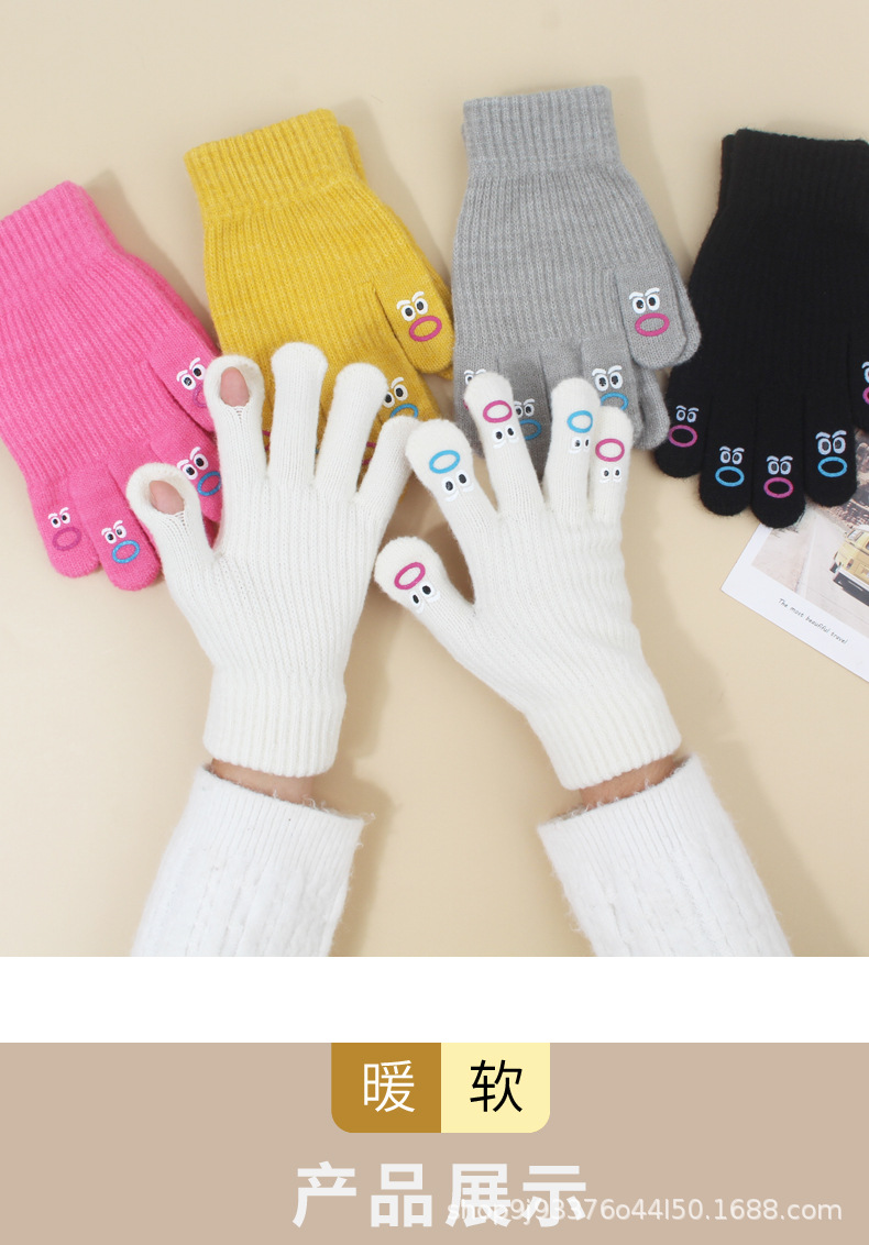 장갑 가을과 겨울 여성의 니트 양모 따뜻한 5 손가락 터치 스크린 귀여운 한국 남자 승마 방한 손가락 학생스토어 가기