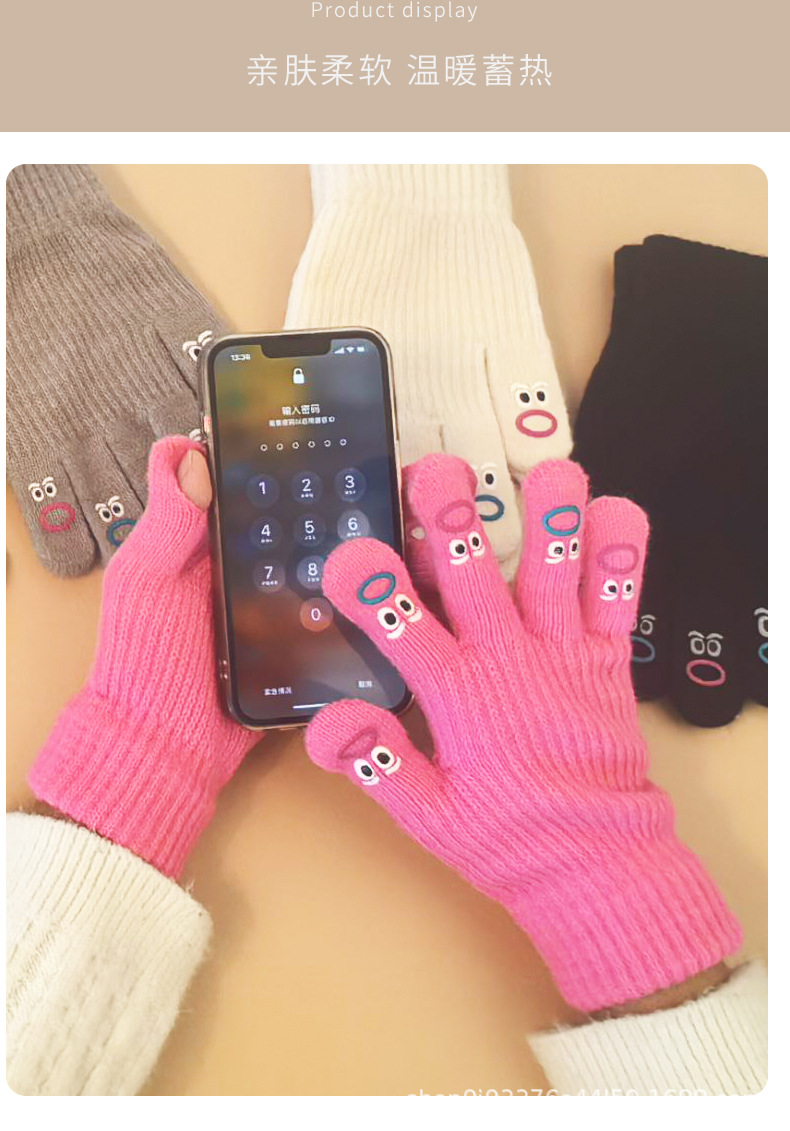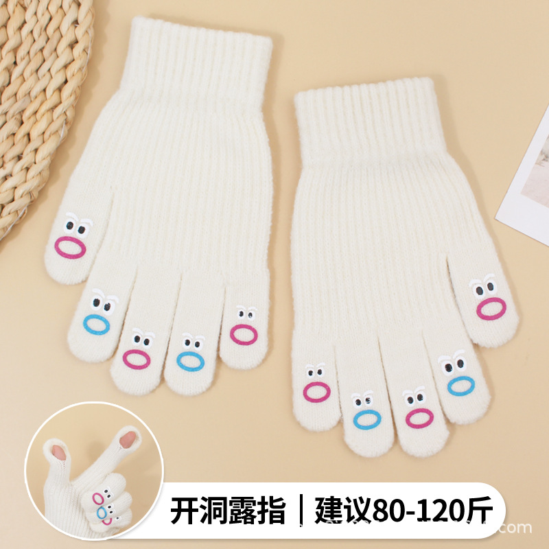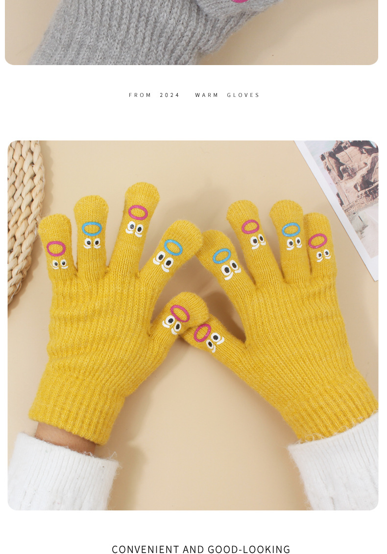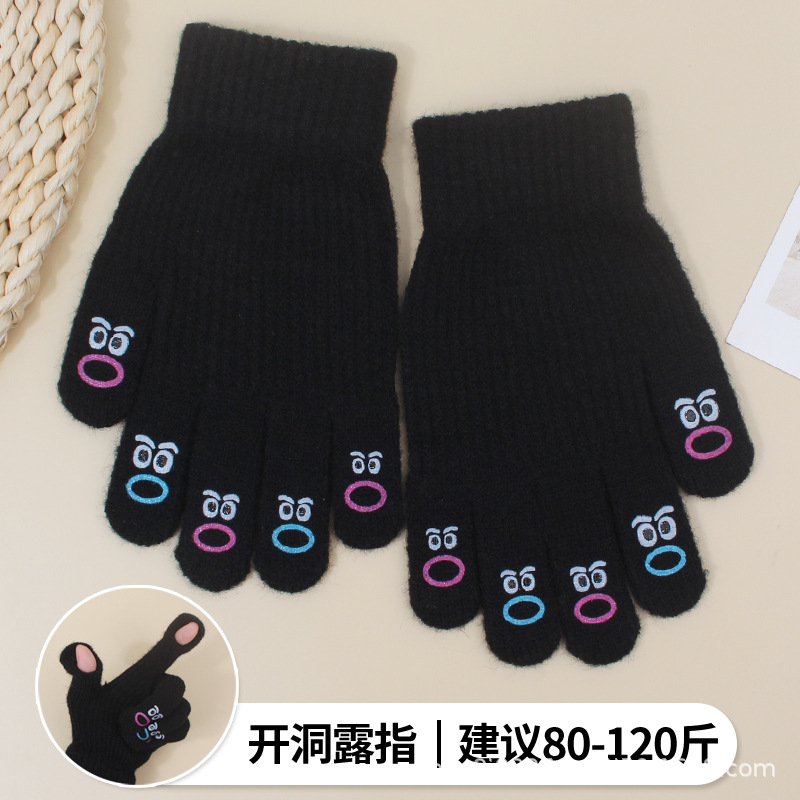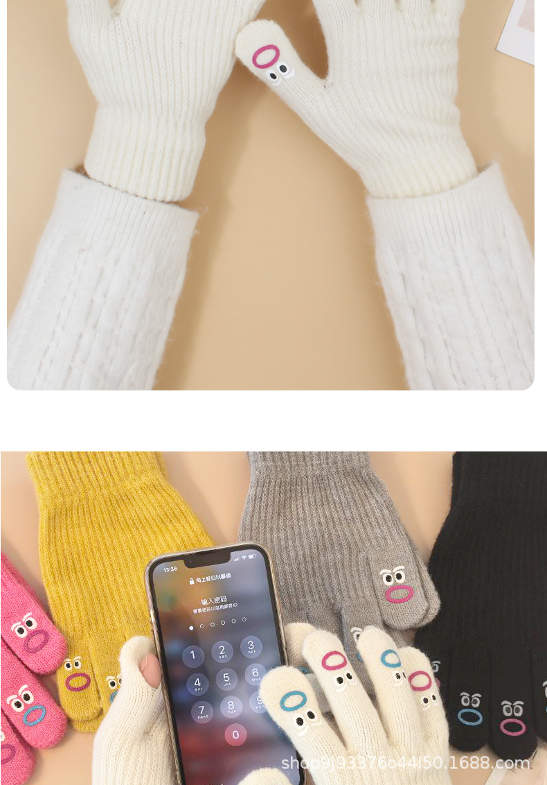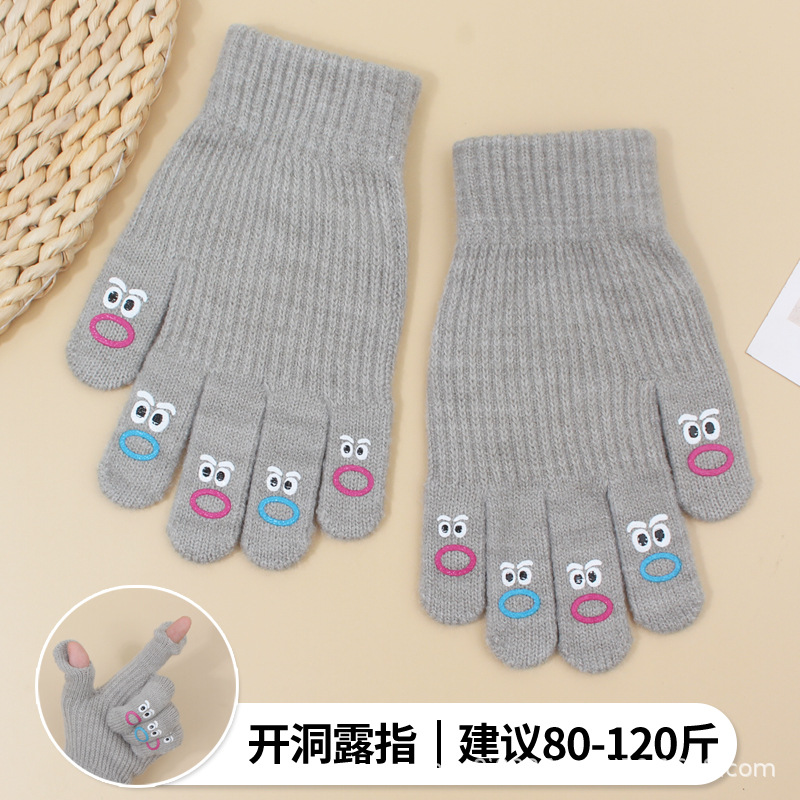 장갑 가을과 겨울 여성의 니트 양모 따뜻한 5 손가락 터치 스크린 귀여운 한국 남자 승마 방한 손가락 학생스토어 가기