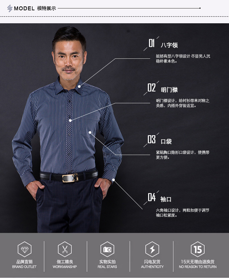 새로운 중년 줄무늬 남자 긴팔 셔츠 남자 봄 얇은 패션 셔츠 재고 남자 아빠 셔츠 탑스토어 가기