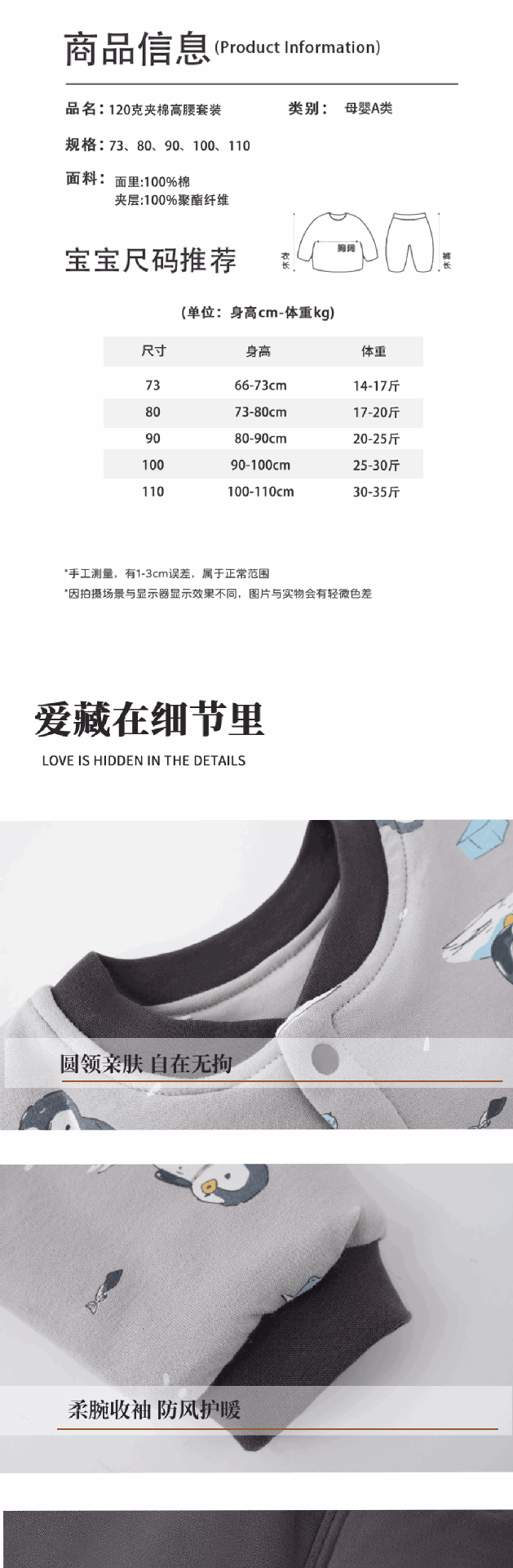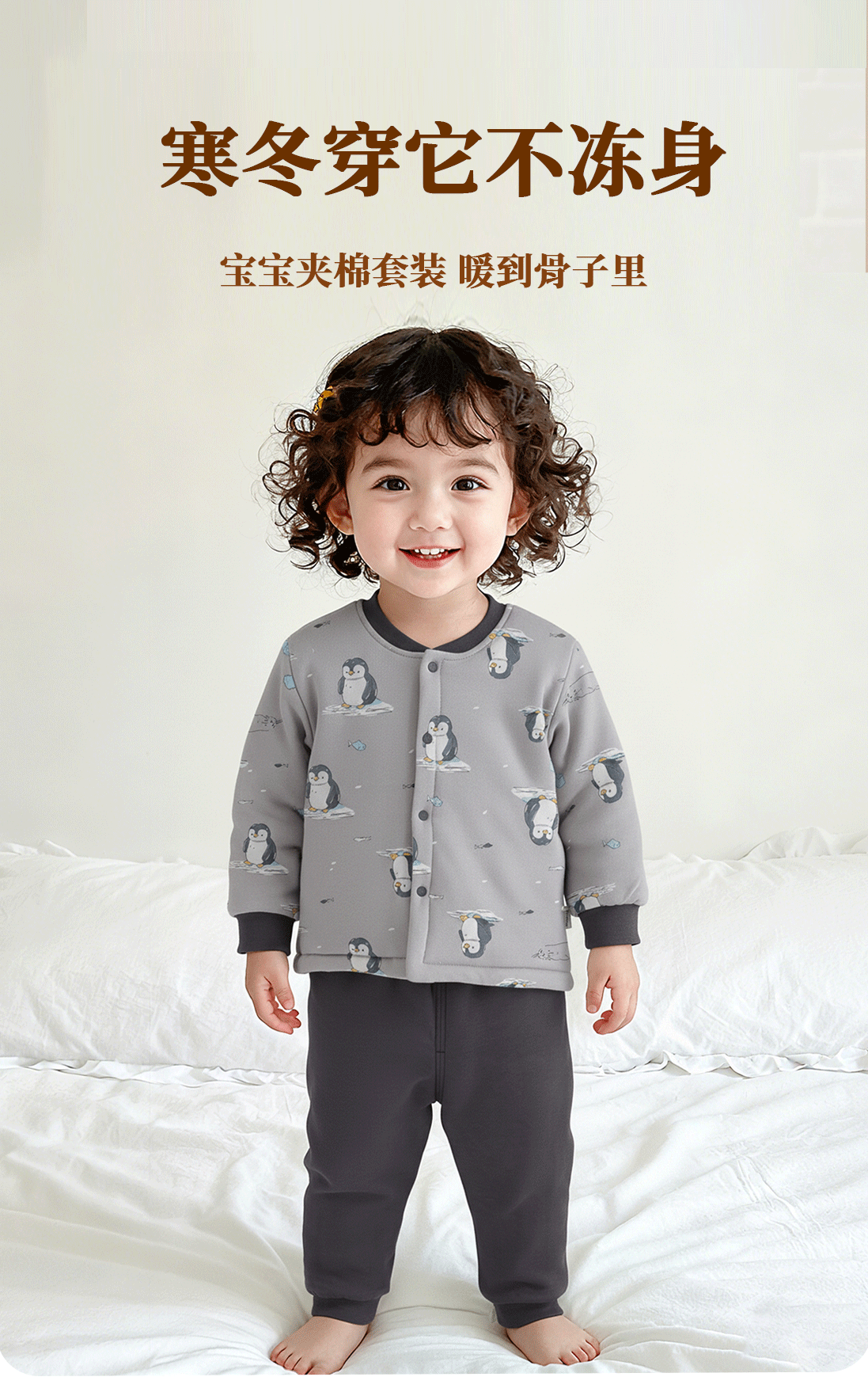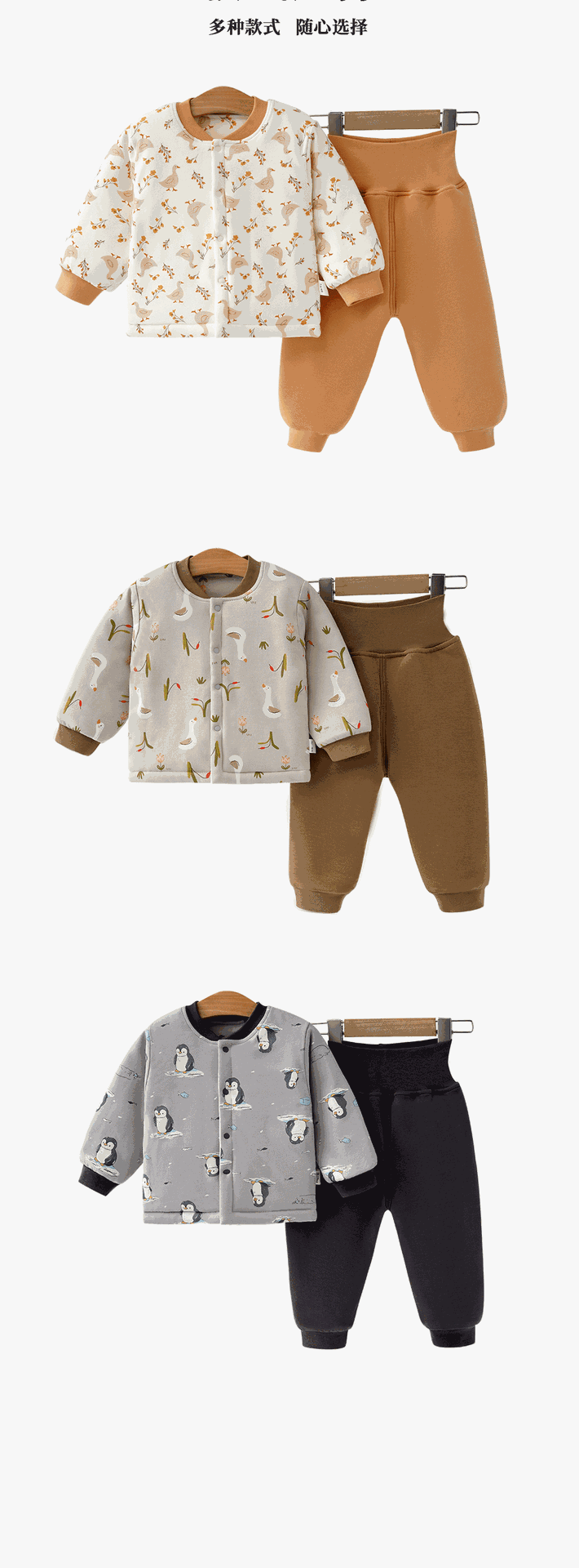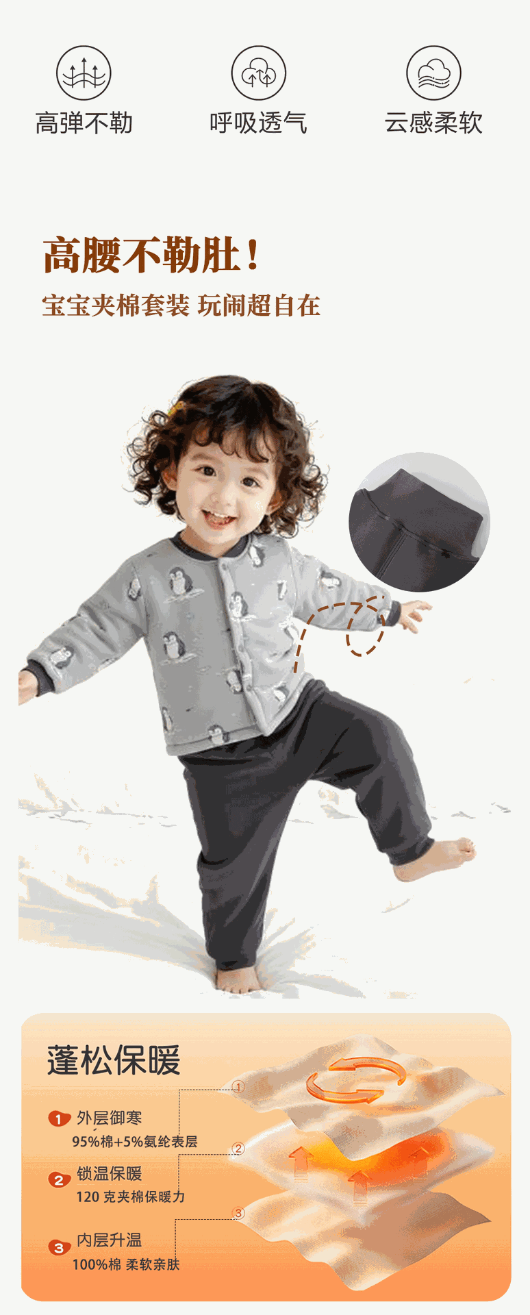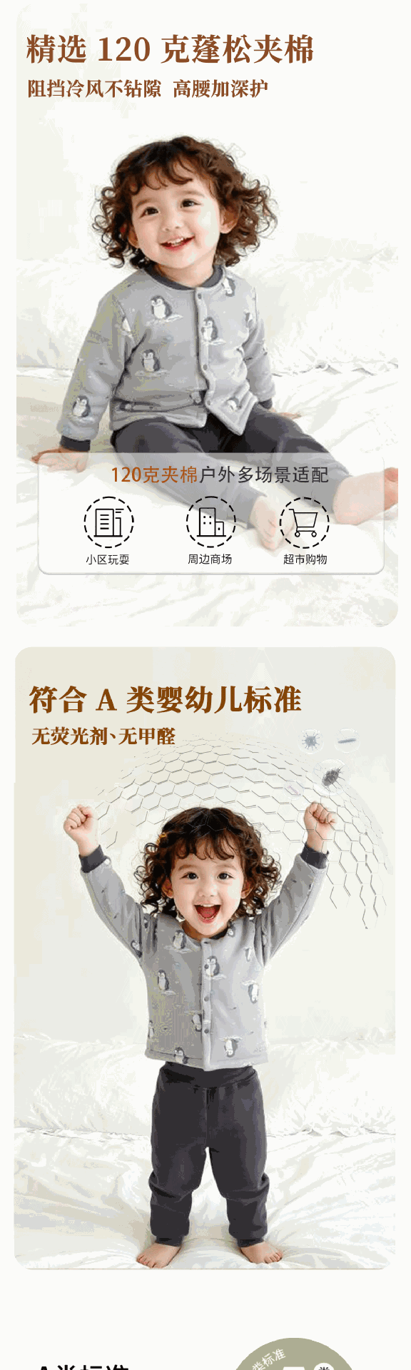 유아용 순면 무봉제 A급 120g 누빔 아기 속옷 세트 하이웨이스트 배 보호 가을옷 가을바지 투피스 세트스토어 가기