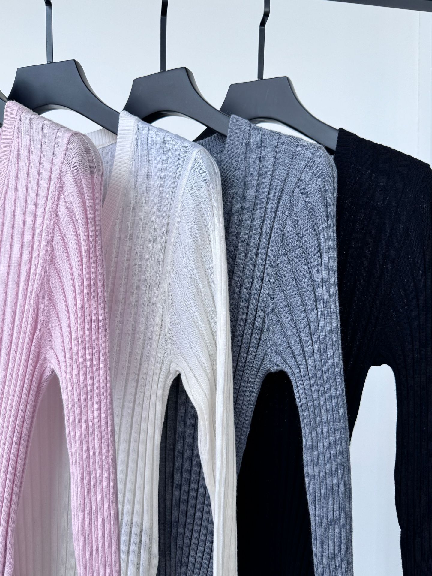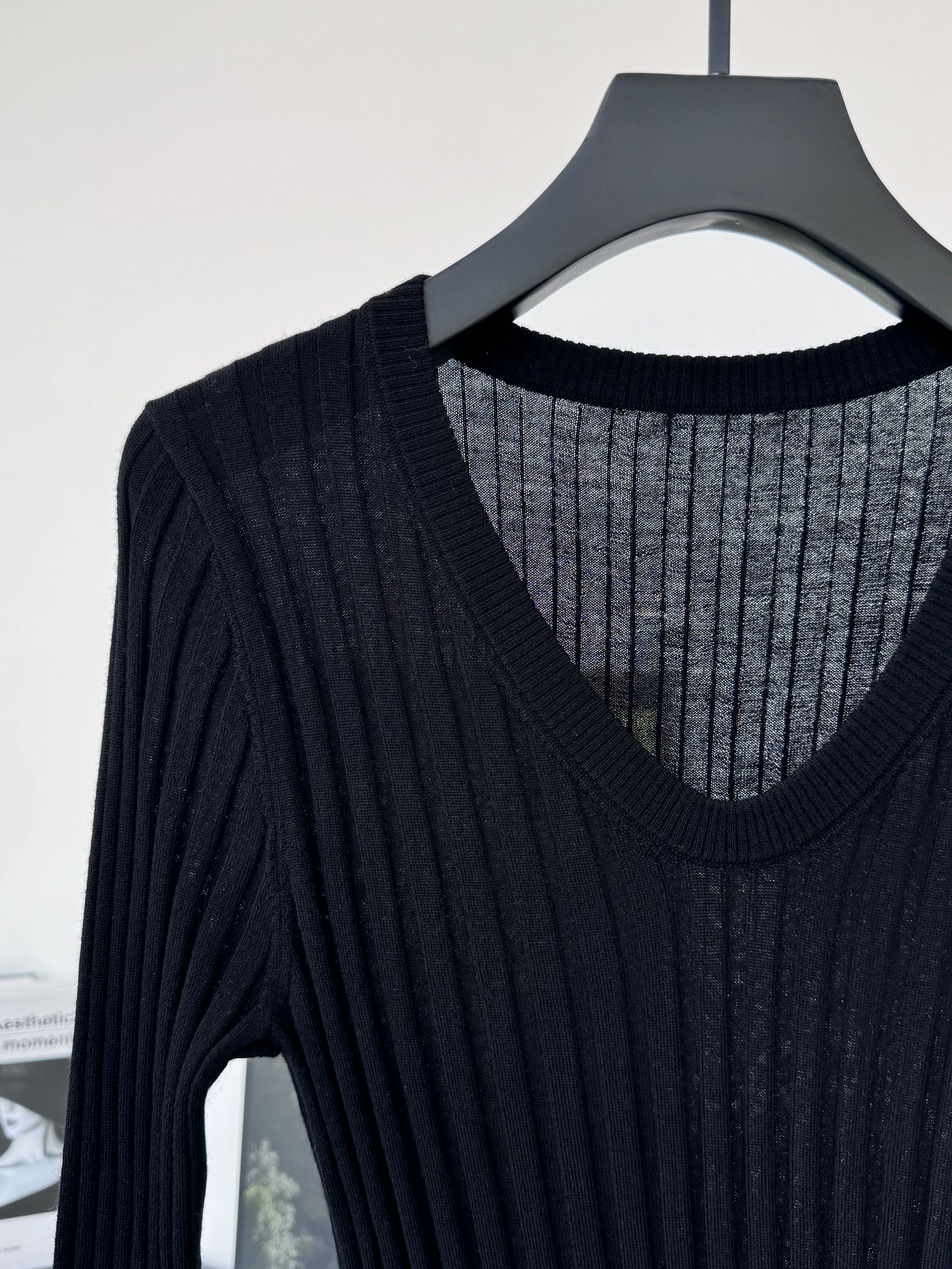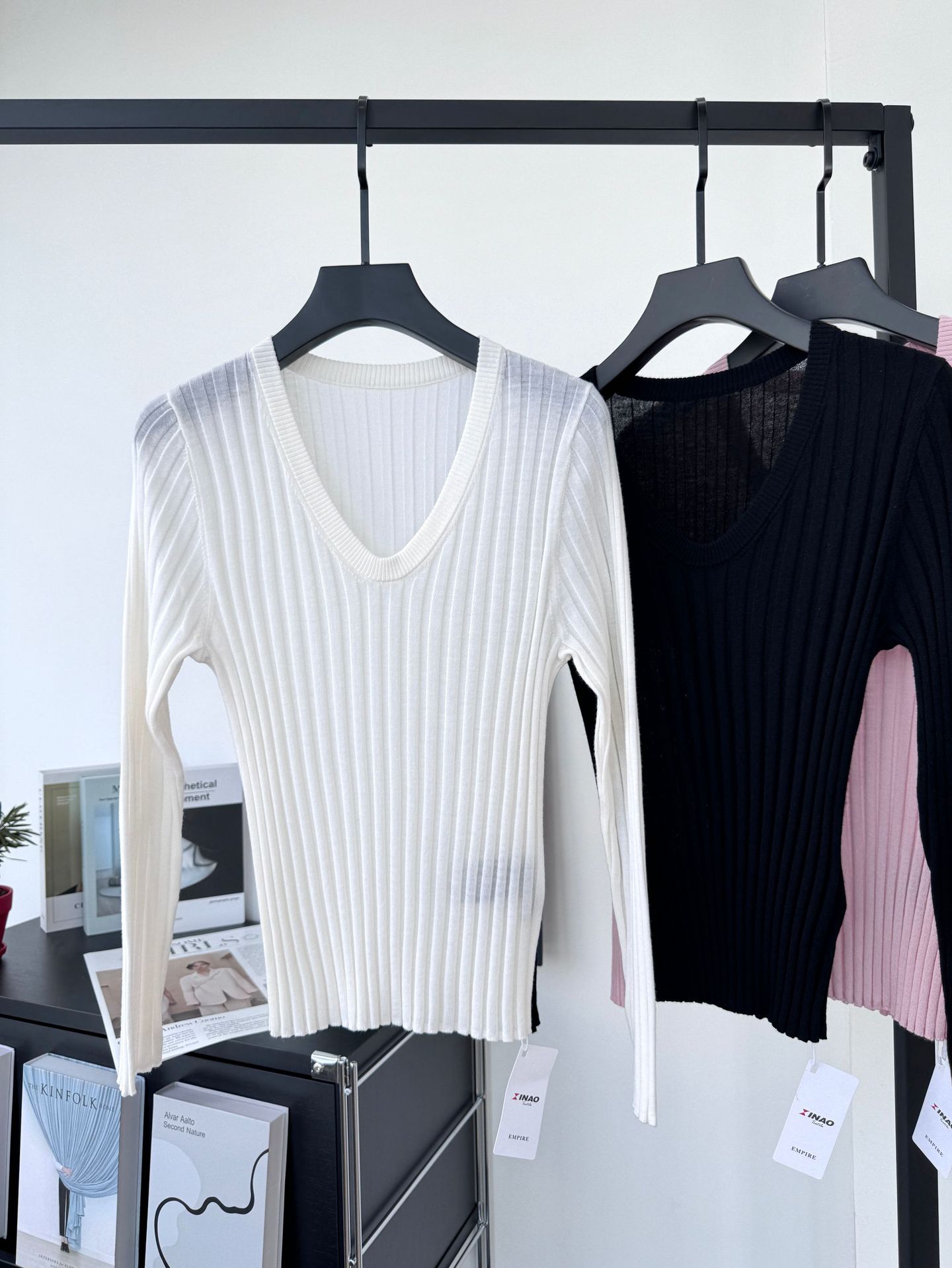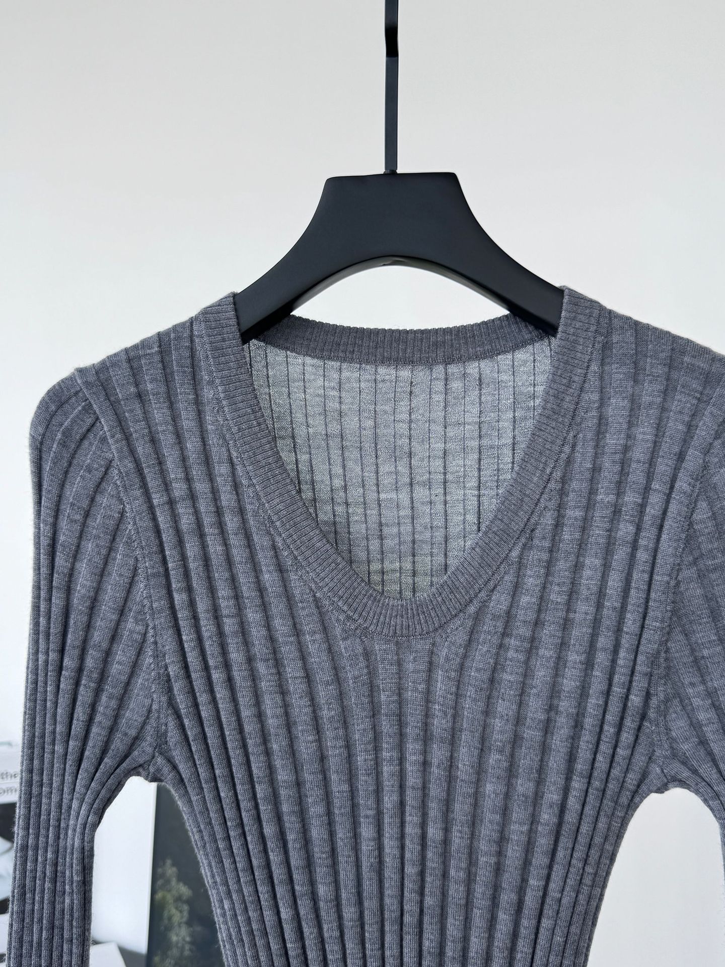 24 이른 가을 새로운 여성 스웨터 풀 오버 V-넥 긴 소매 슬림 핏 핏 스트립 탄성 울 얇은베이스 스웨터