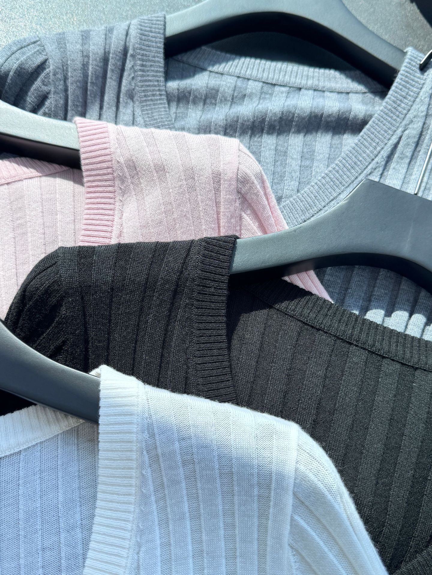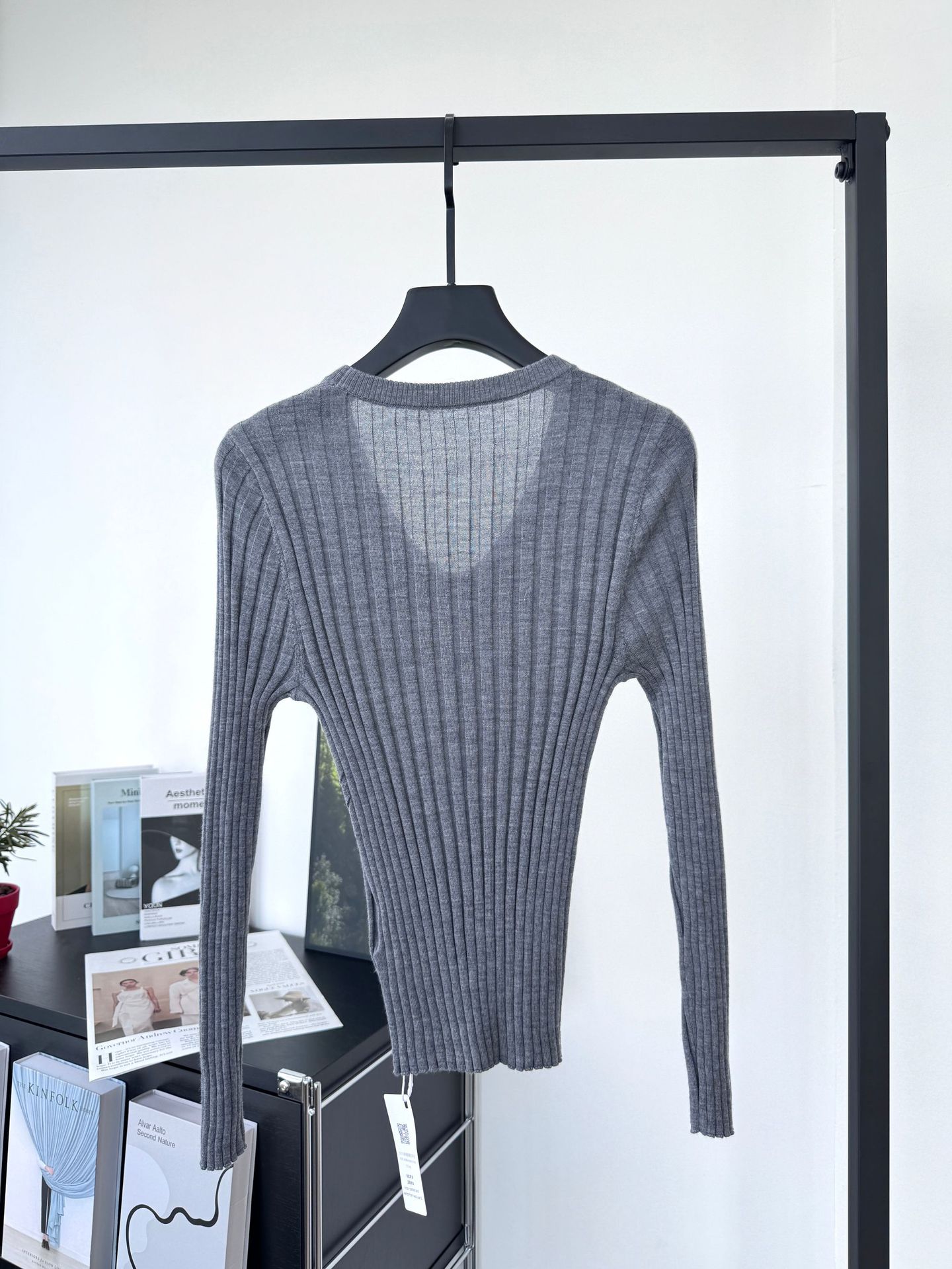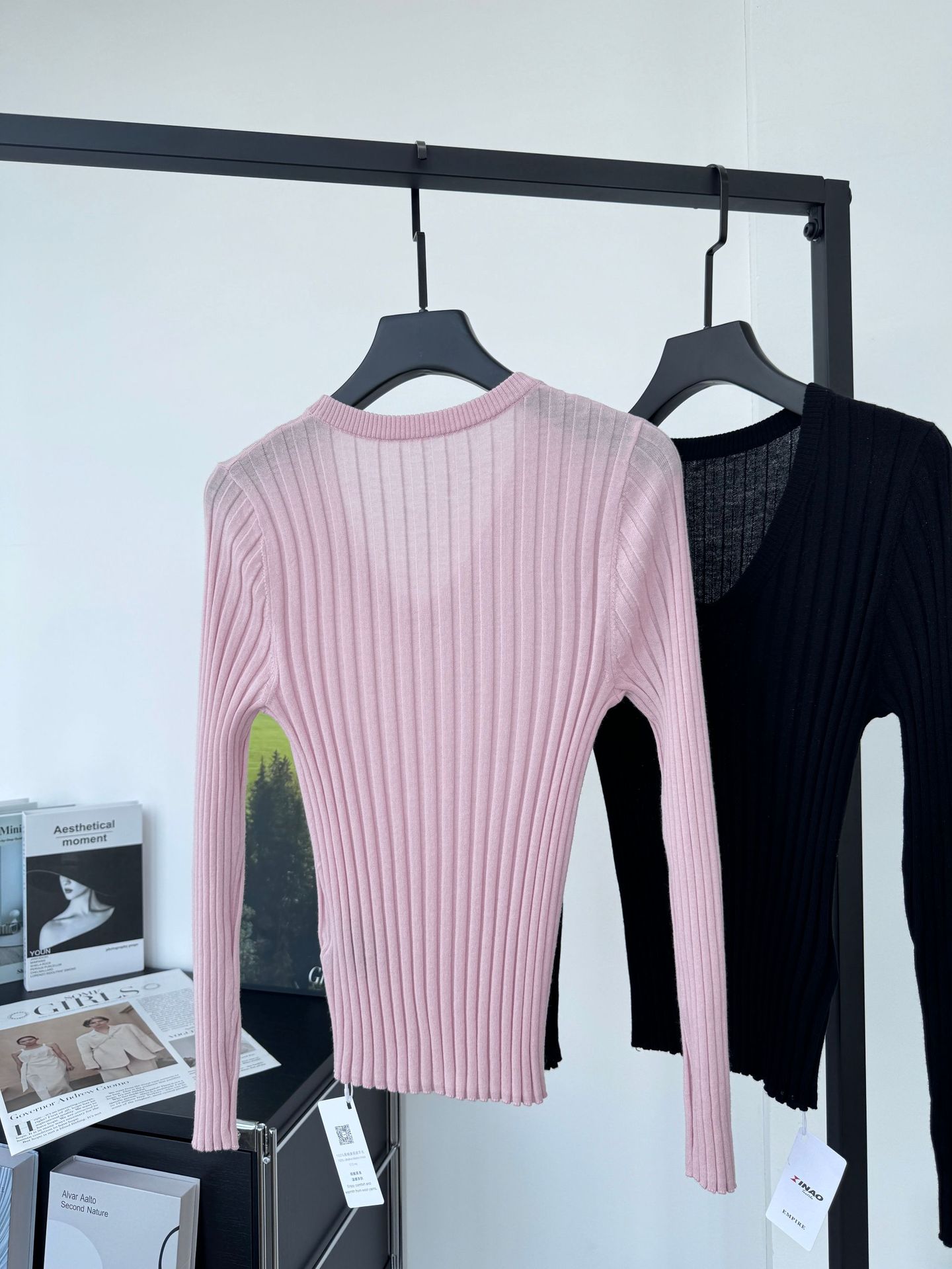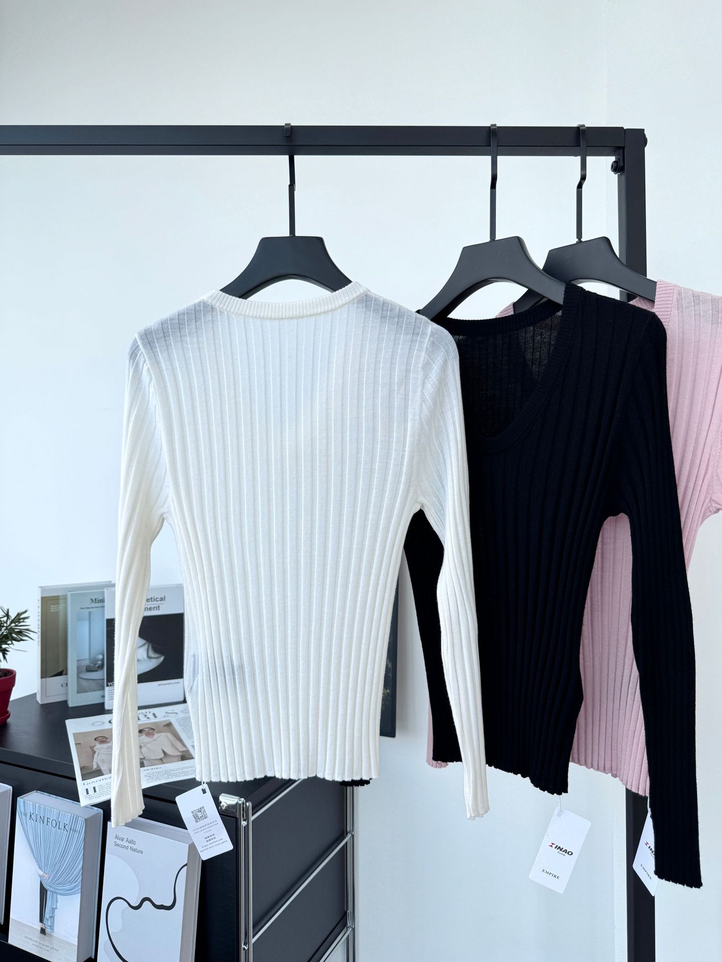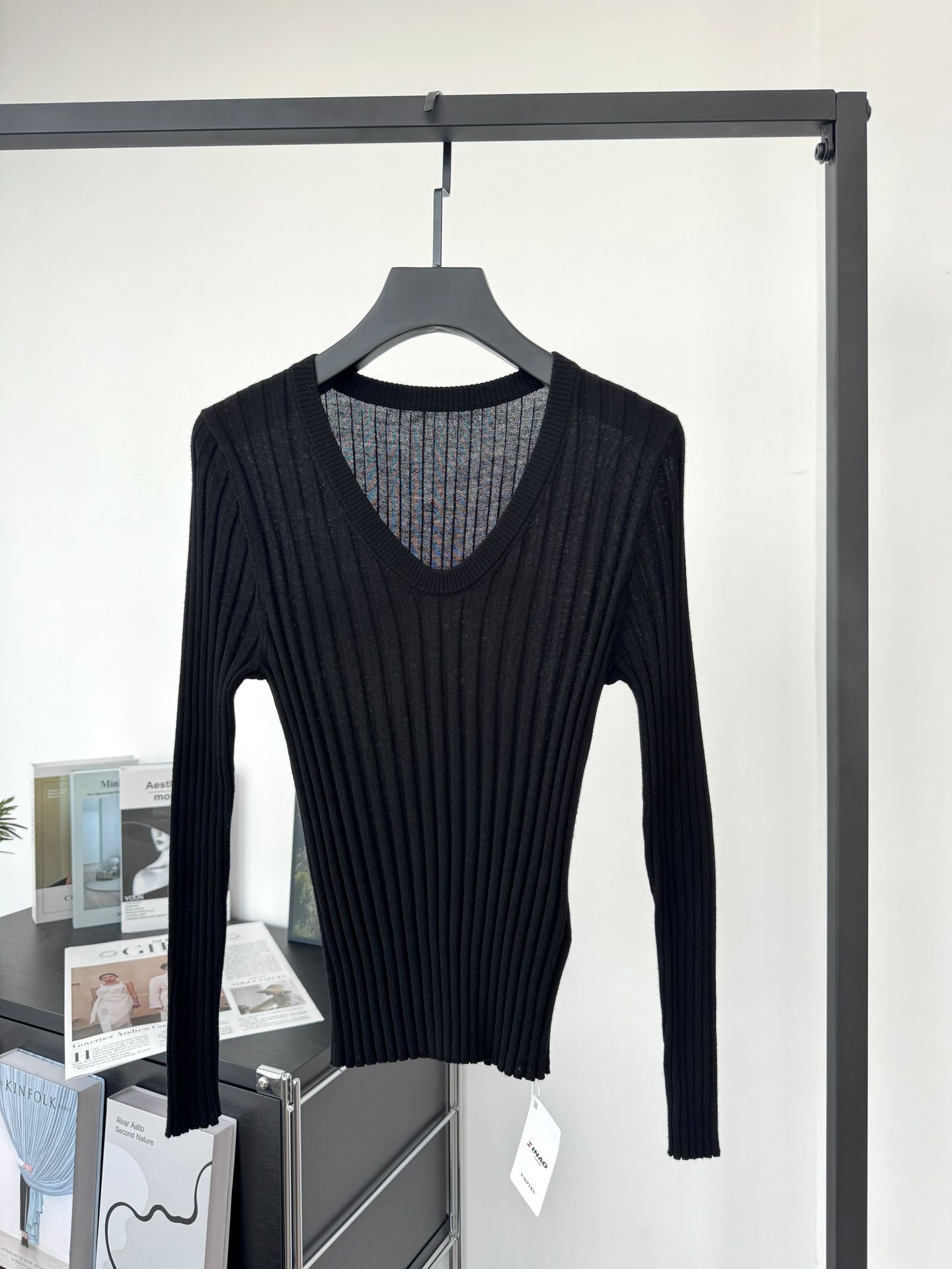 24 이른 가을 새로운 여성 스웨터 풀 오버 V-넥 긴 소매 슬림 핏 핏 스트립 탄성 울 얇은베이스 스웨터