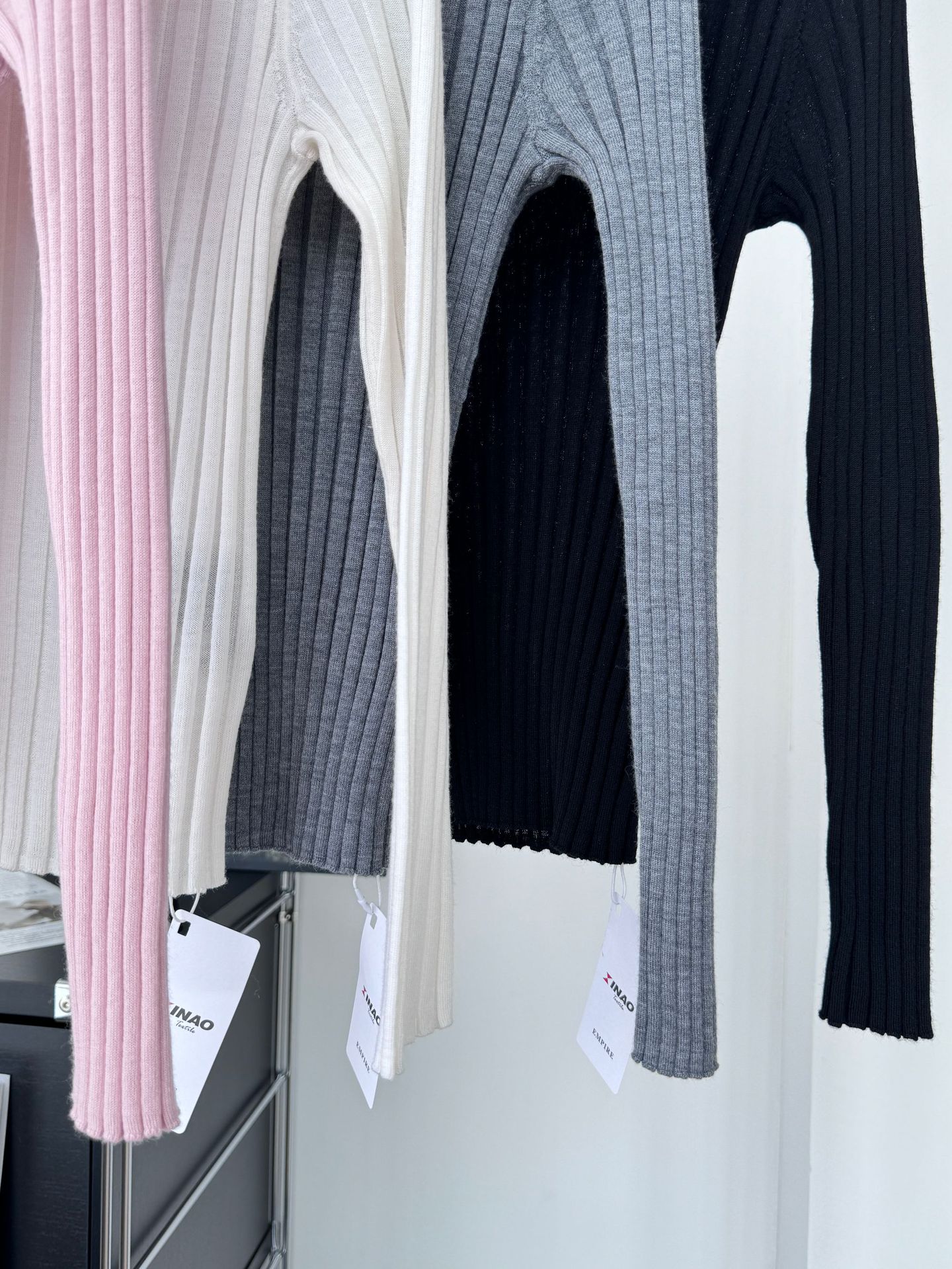 24 이른 가을 새로운 여성 스웨터 풀 오버 V-넥 긴 소매 슬림 핏 핏 스트립 탄성 울 얇은베이스 스웨터스토어 가기