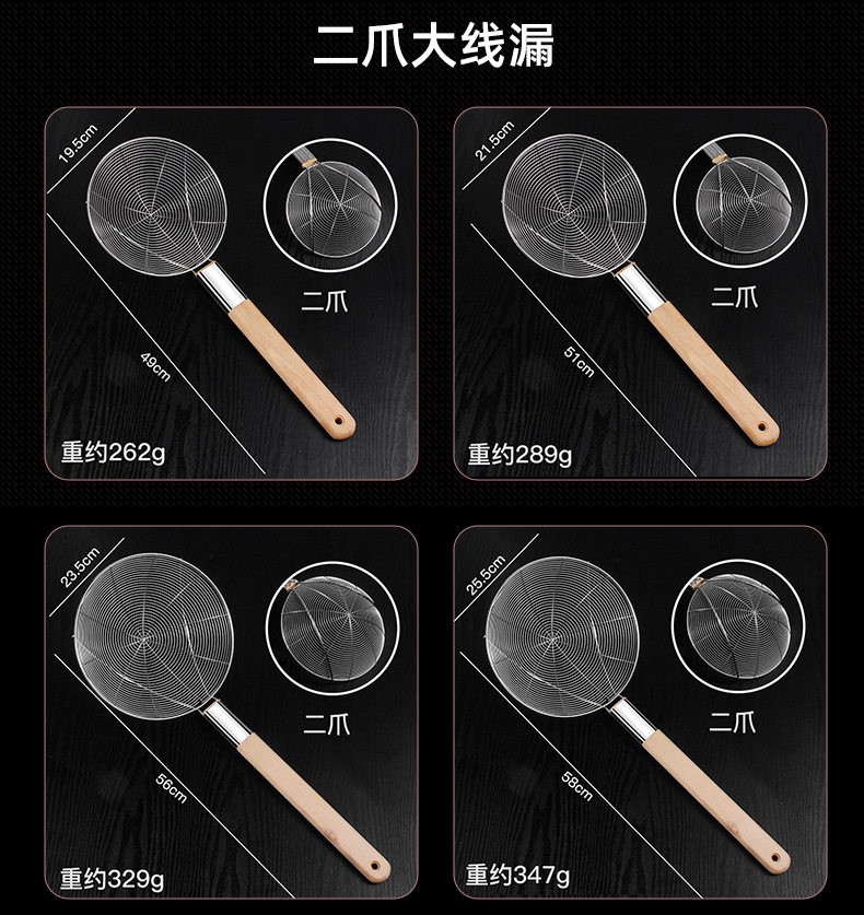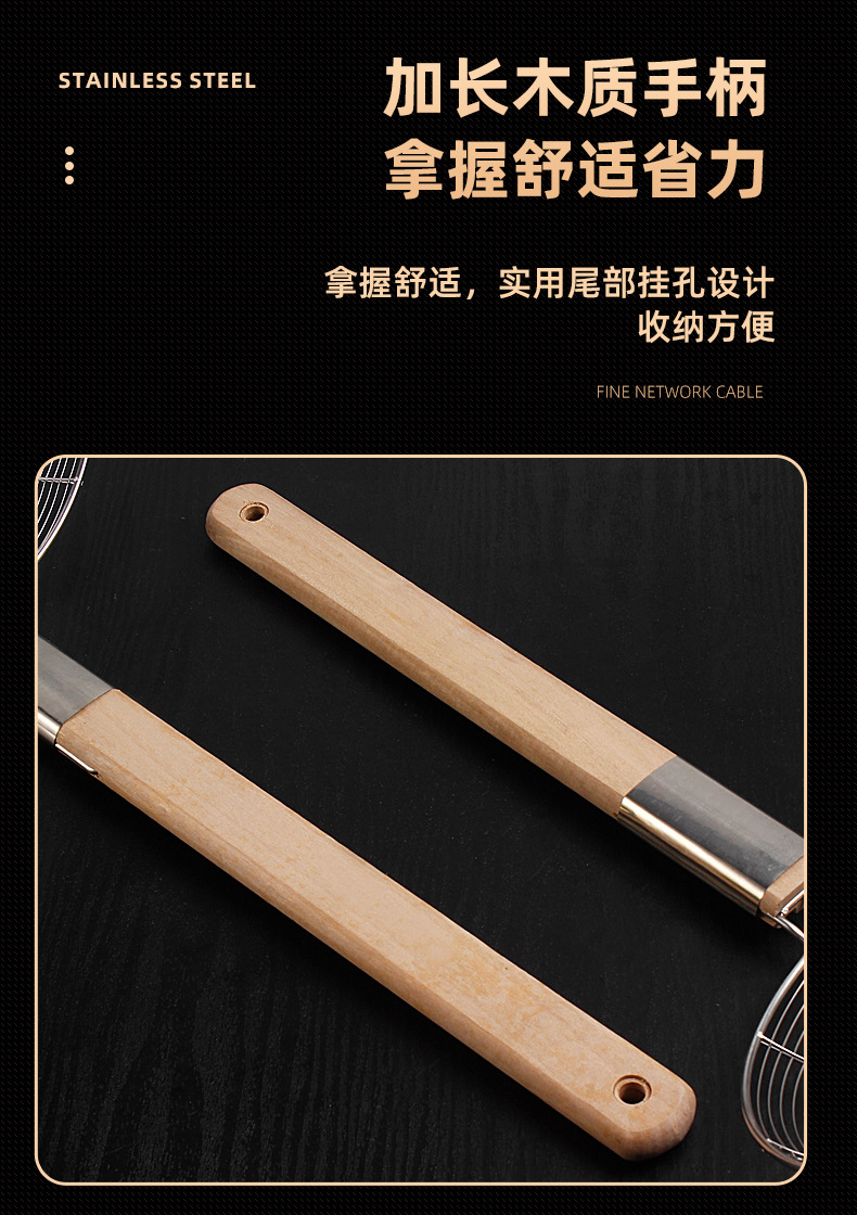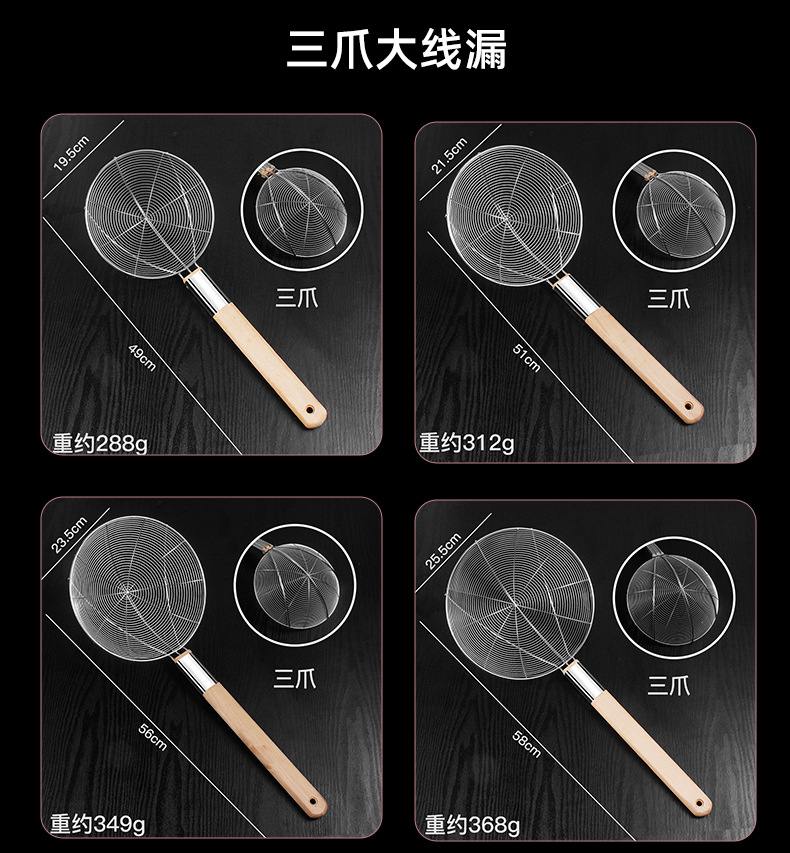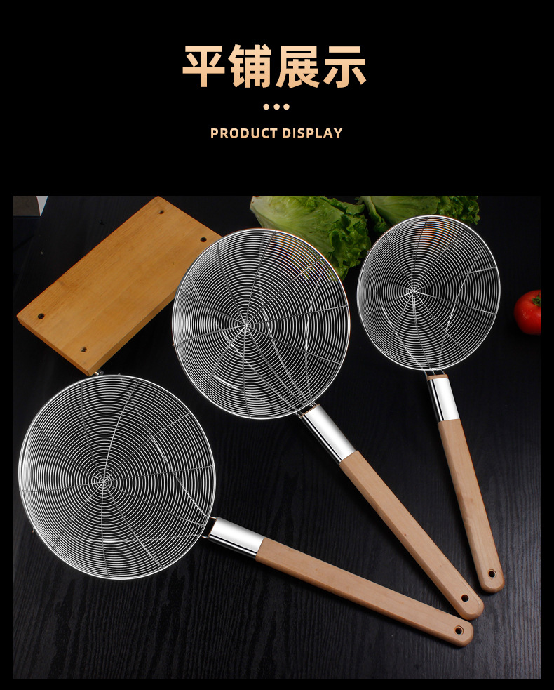 스테인레스 스틸 스트레이너 대형 콜더 주방 필터 그물 누출 생선 국수 대형 상업용 나무 손잡이 라인 누출