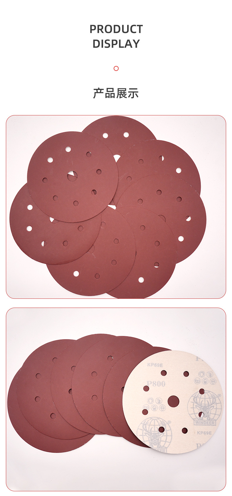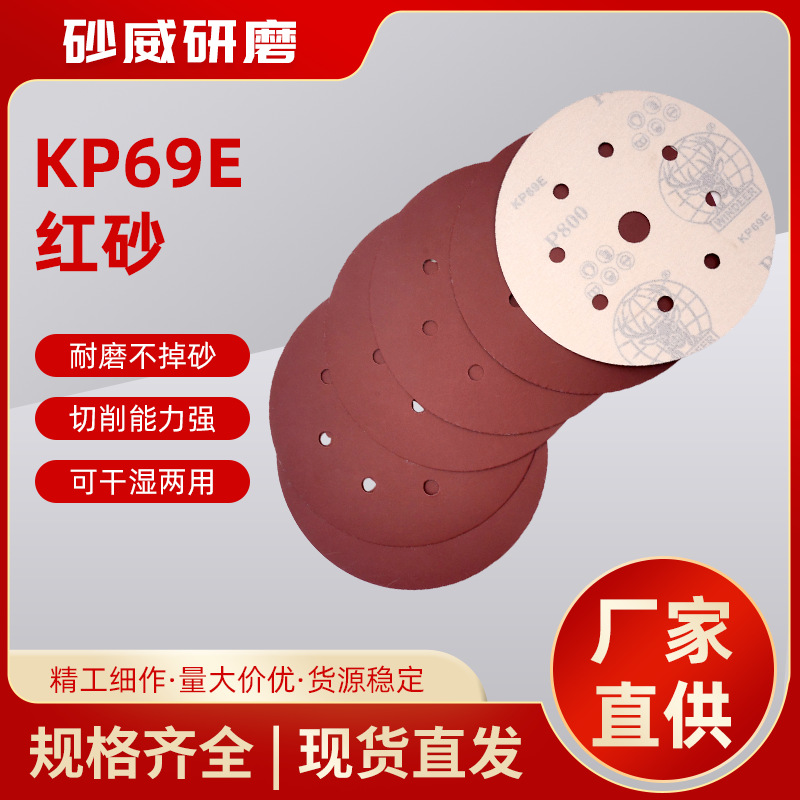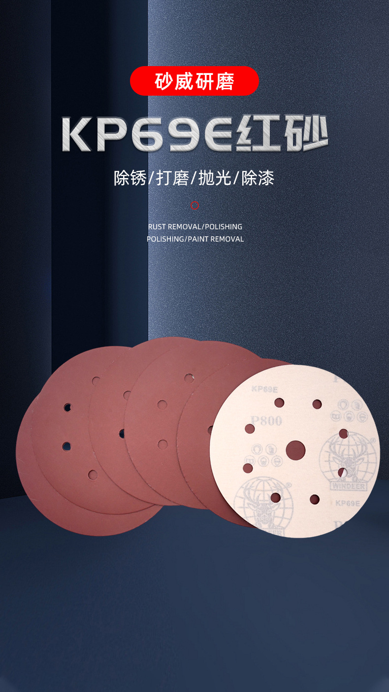 사슴 왕 KP69E 알루미나 디스크 사포 자체 접착 붉은 모래 목공 금속 자동차 가구 페인트 표면 연마 사포