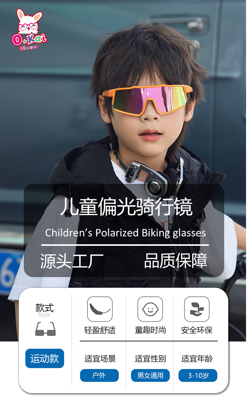 儿童骑行太阳镜新款儿童运动自行车眼镜2024潮流男女墨镜偏光眼镜