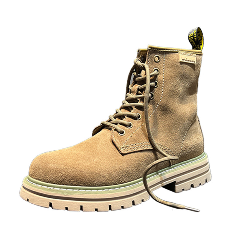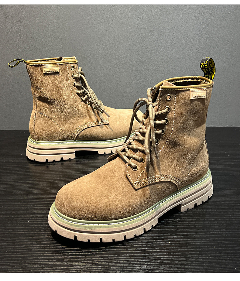 영국 스타일 2024 남성 커플을위한 새로운 마틴 부츠 가을 및 겨울 따뜻한 높이 증가 큰 머리 하이 탑 작업복 부츠 솔리드 컬러 부츠