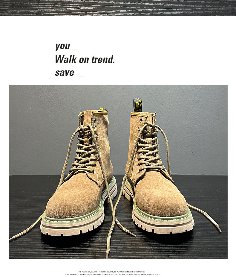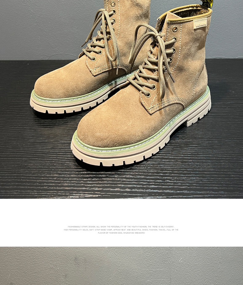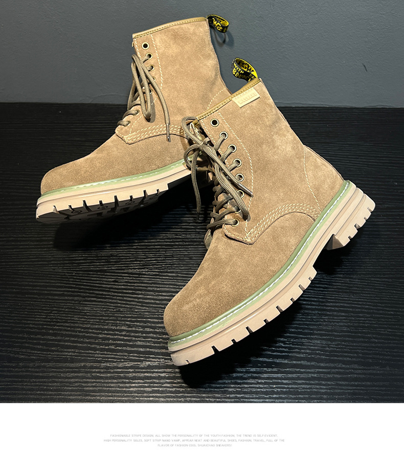 영국 스타일 2024 남성 커플을위한 새로운 마틴 부츠 가을 및 겨울 따뜻한 높이 증가 큰 머리 하이 탑 작업복 부츠 솔리드 컬러 부츠스토어 가기