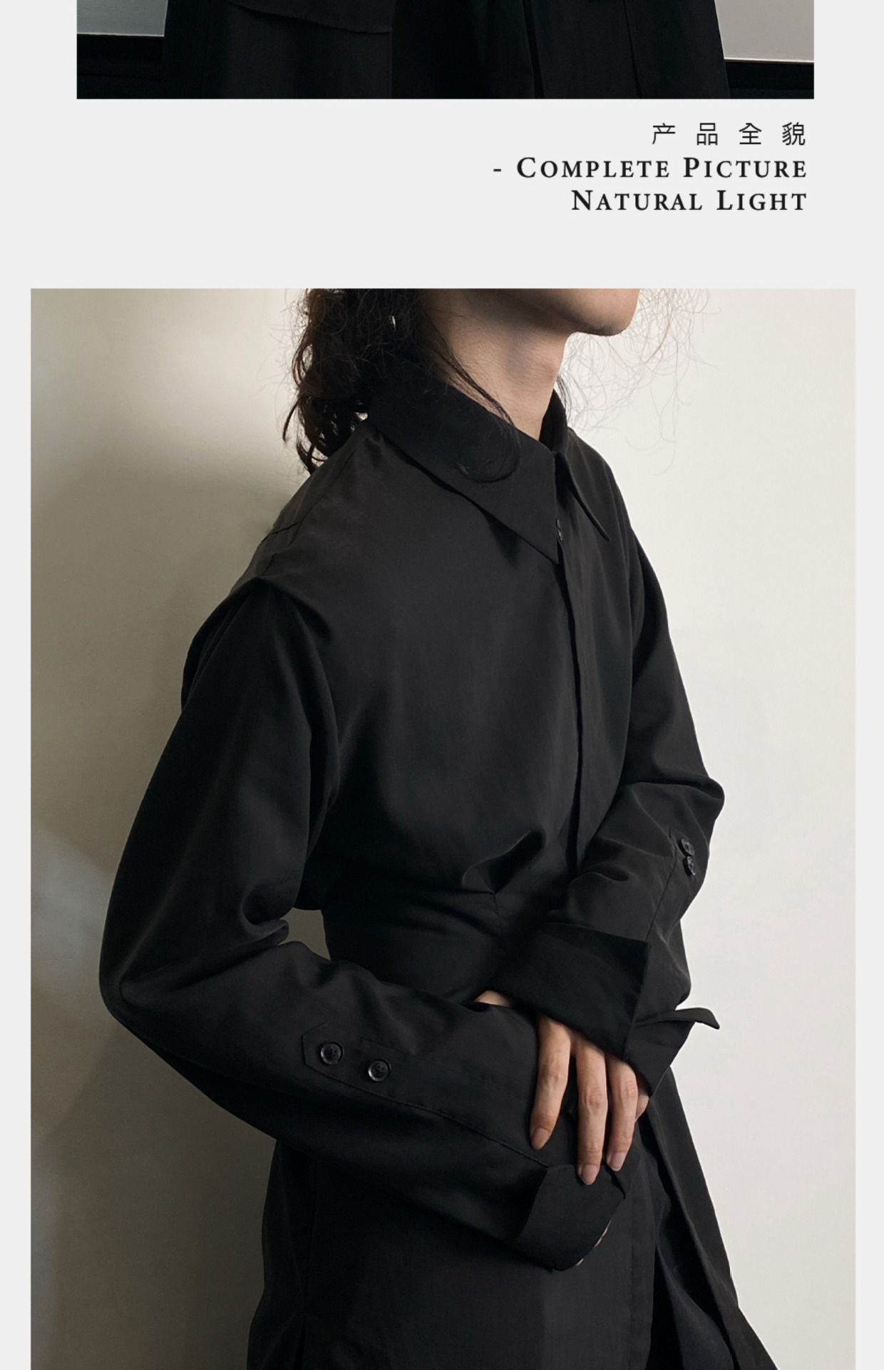 빅토리아 셔츠 원피스 봄과 가을 올 매치 느슨한 슬리밍 거들 파이오니어 슬림 핏 레트로 다크 롱 윈드 브레이커