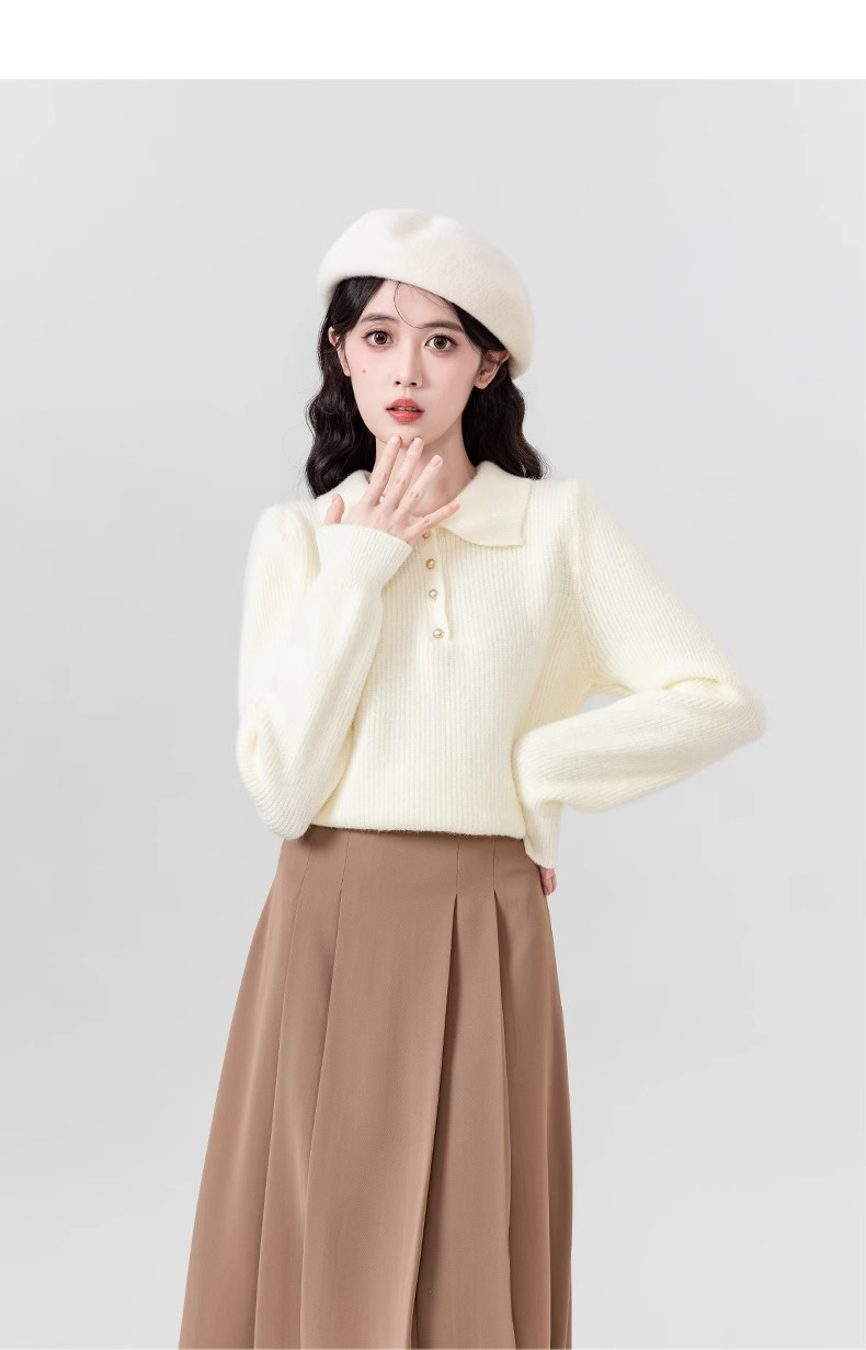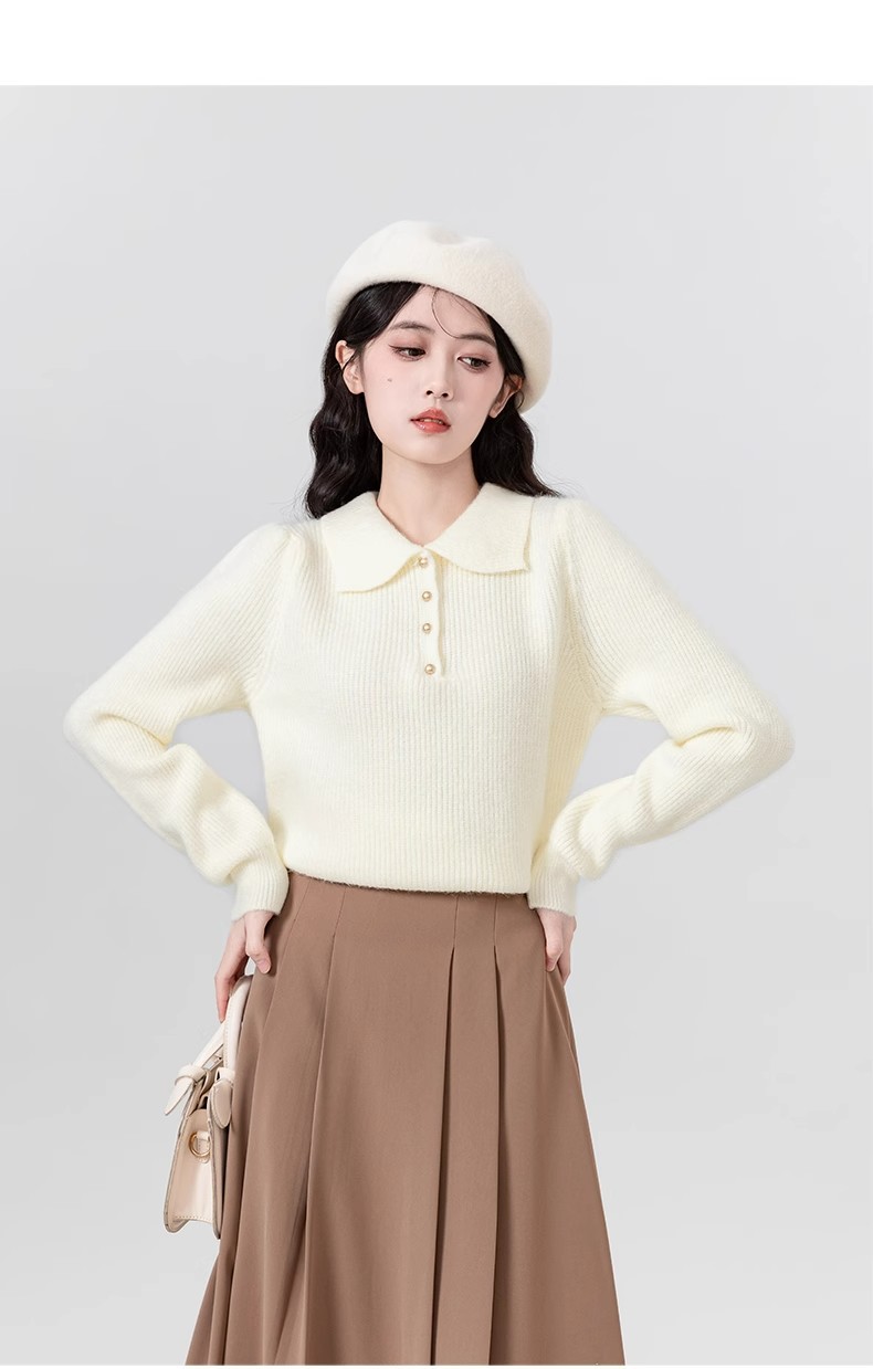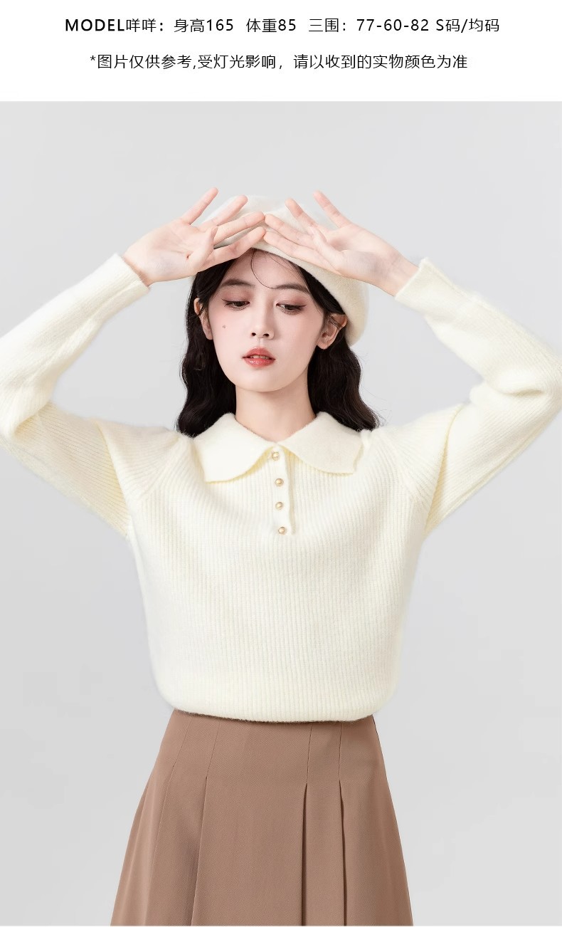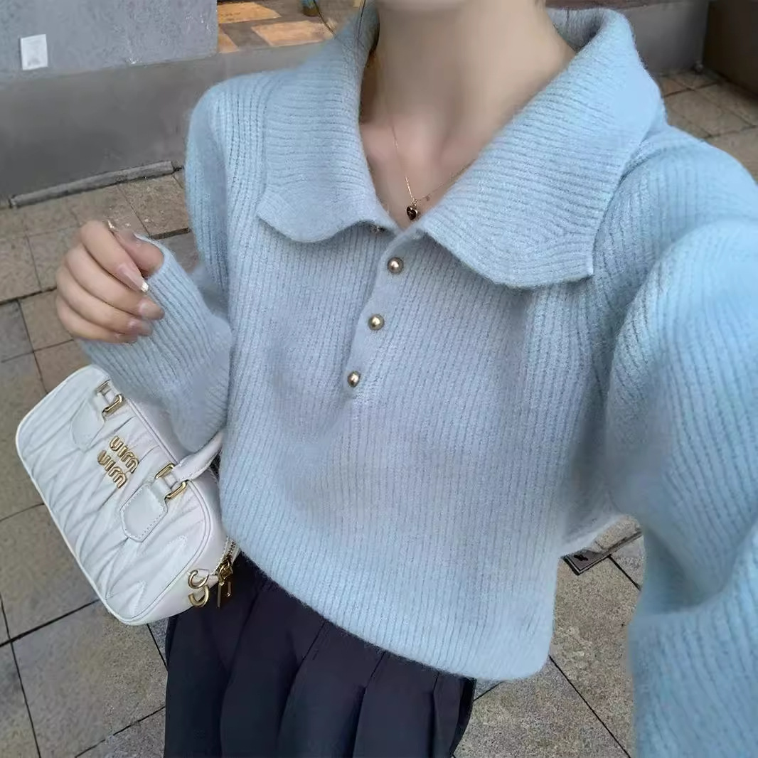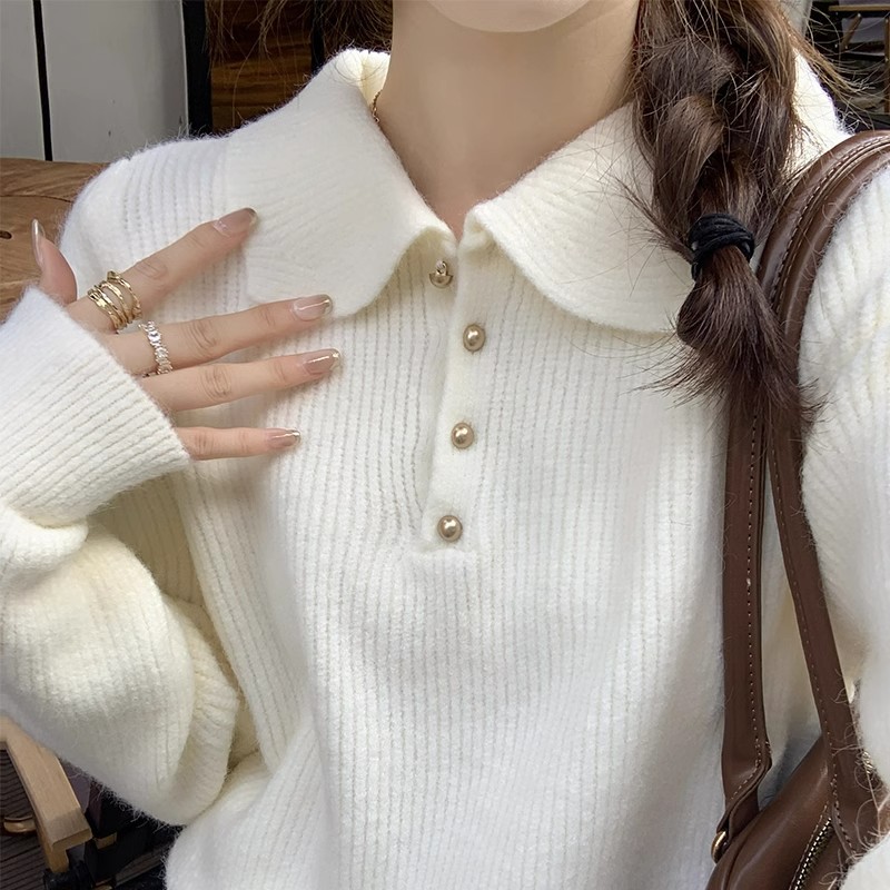 Da Lang 울 스웨터 봄과 가을 겨울 스웨터 여성의 새로운 인형 폴로 칼라 긴 소매 풀오버 기본 셔츠 탑