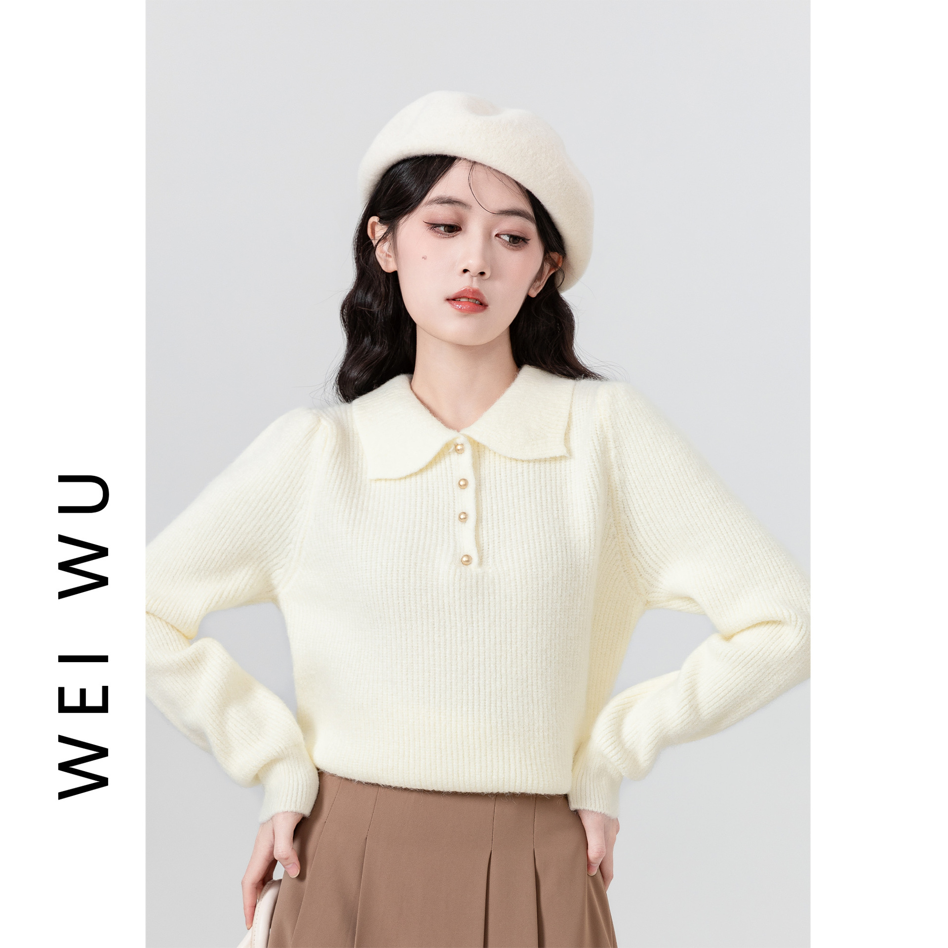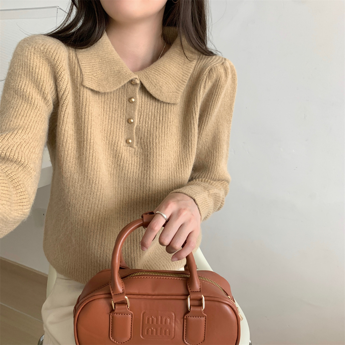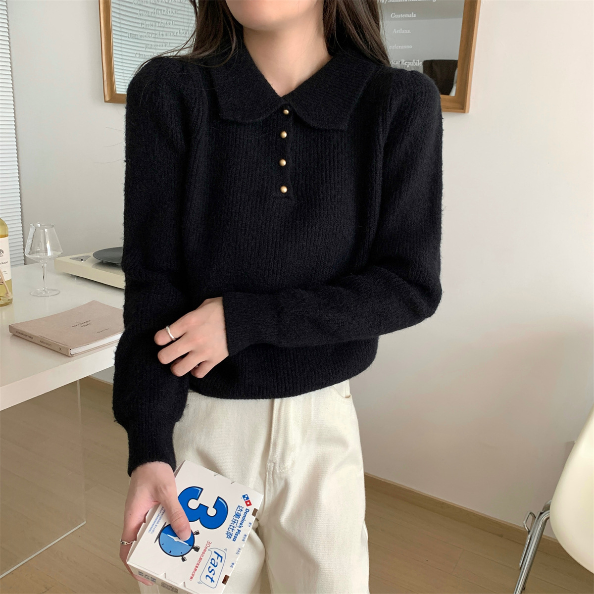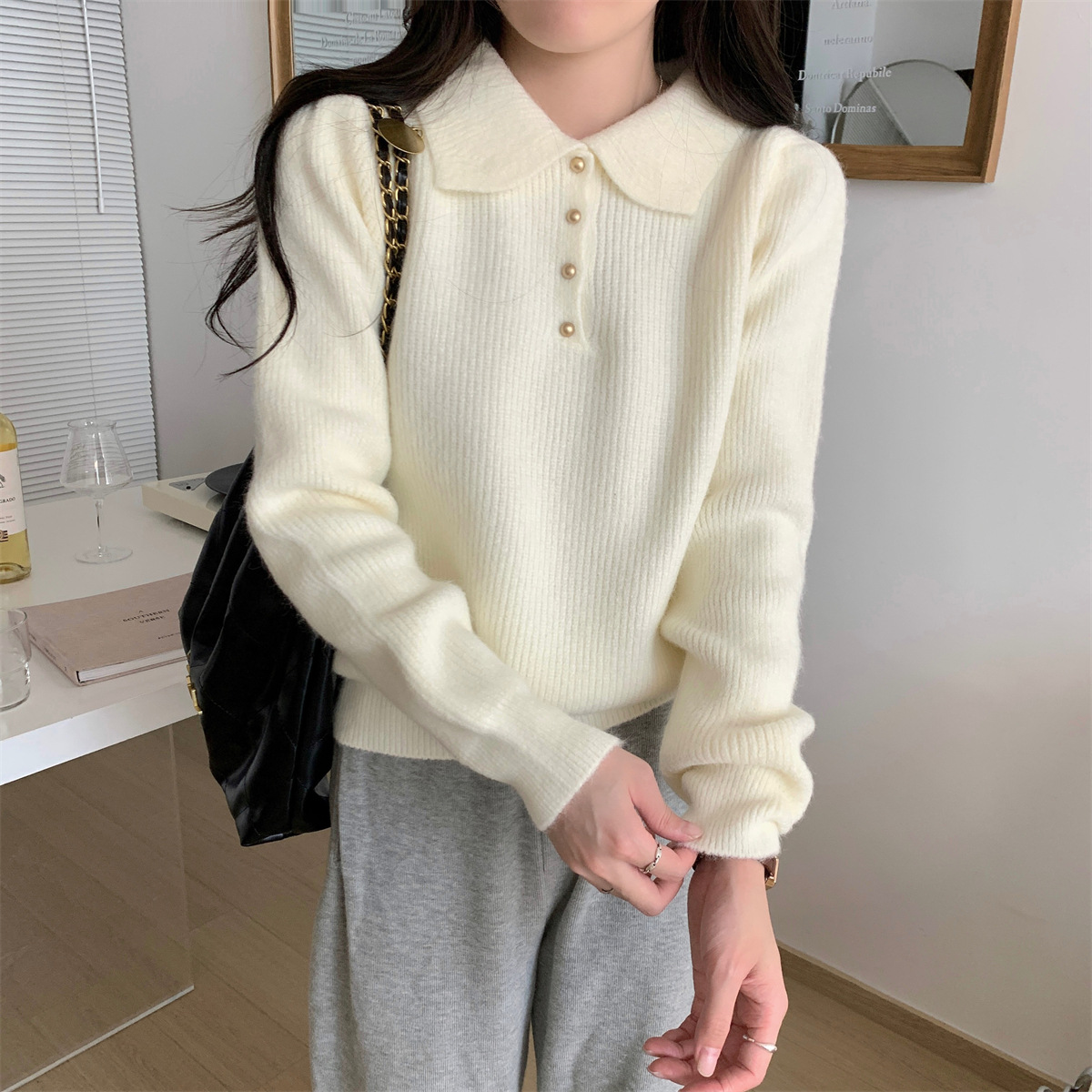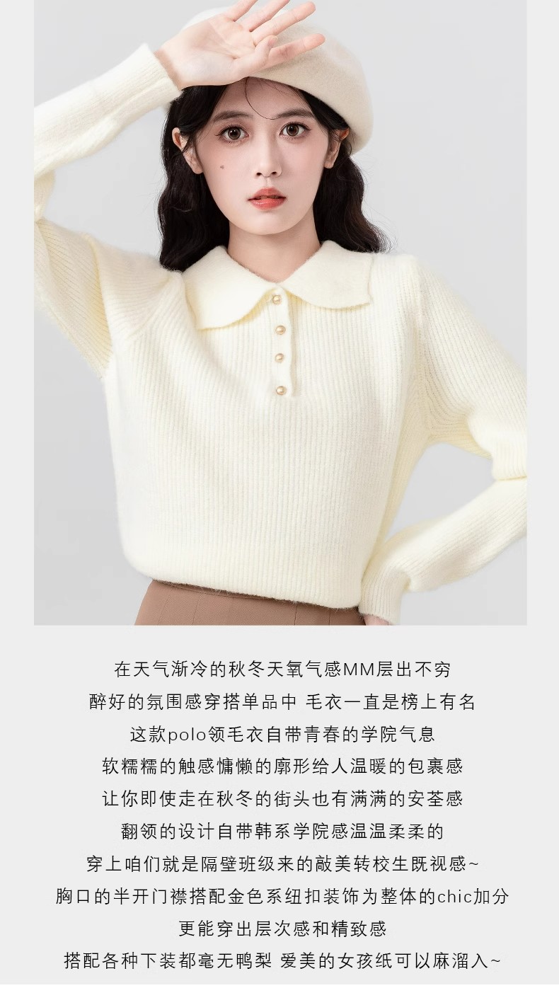 Da Lang 울 스웨터 봄과 가을 겨울 스웨터 여성의 새로운 인형 폴로 칼라 긴 소매 풀오버 기본 셔츠 탑