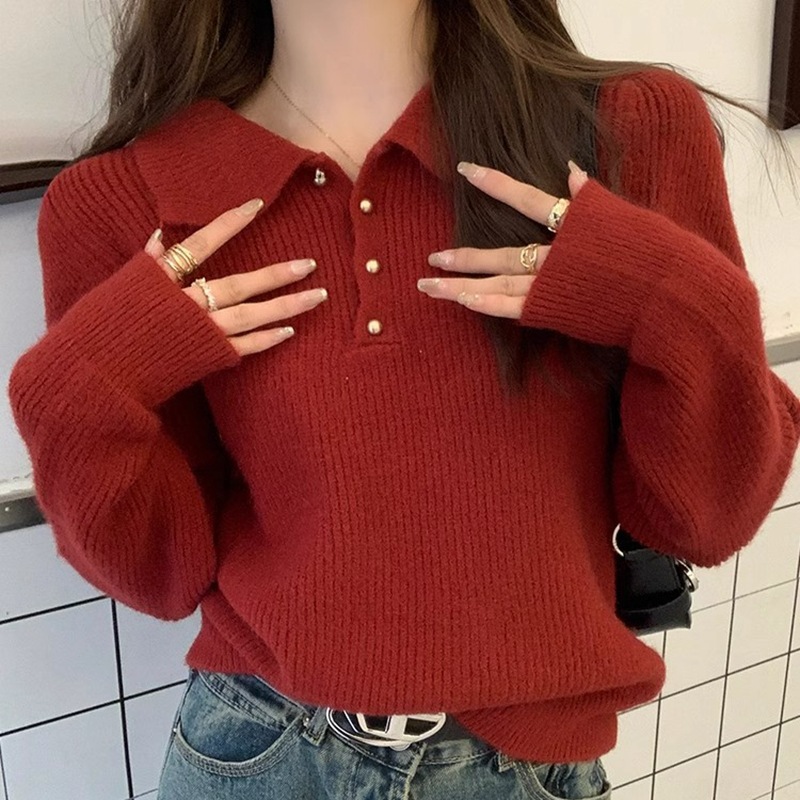Da Lang 울 스웨터 봄과 가을 겨울 스웨터 여성의 새로운 인형 폴로 칼라 긴 소매 풀오버 기본 셔츠 탑스토어 가기
