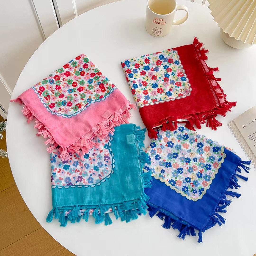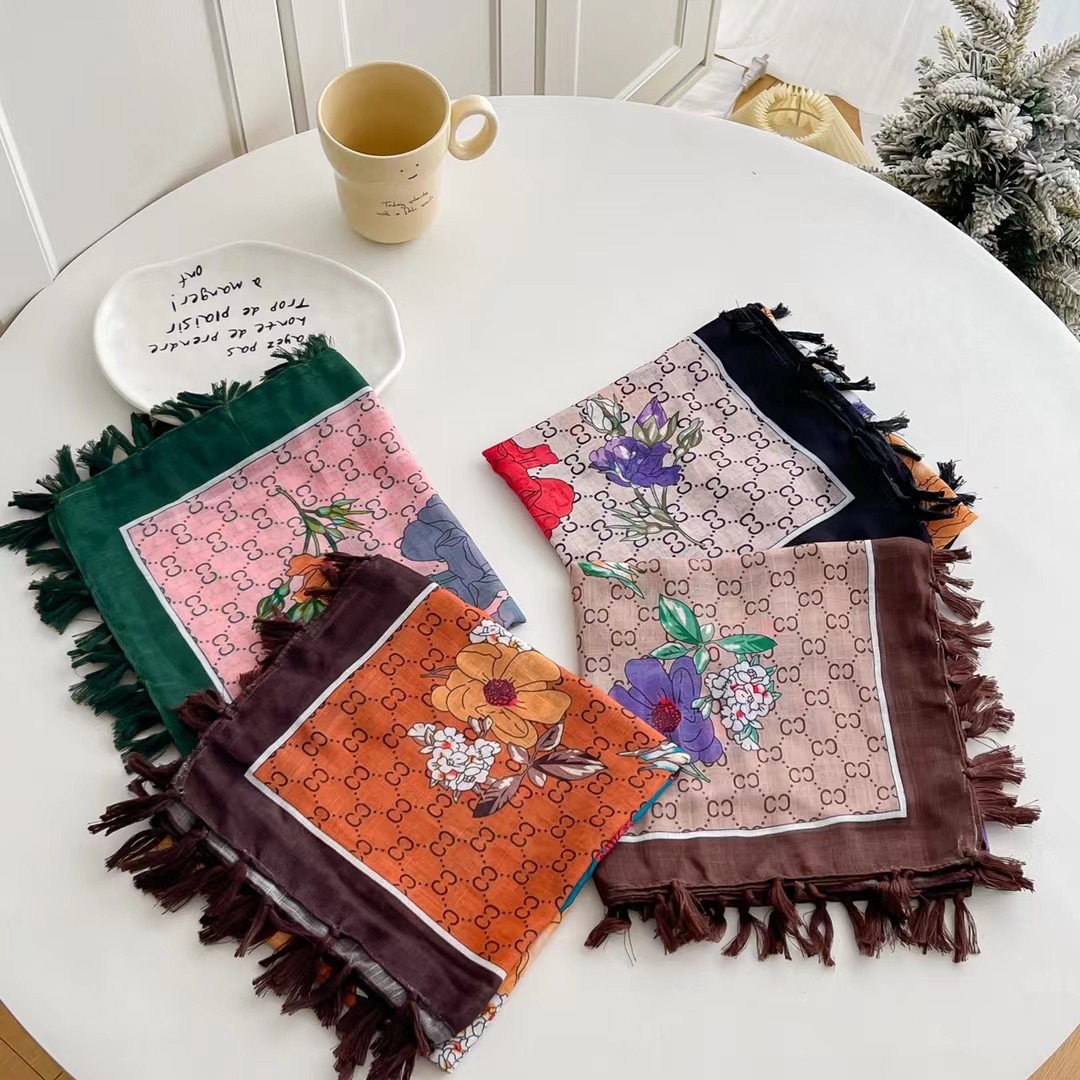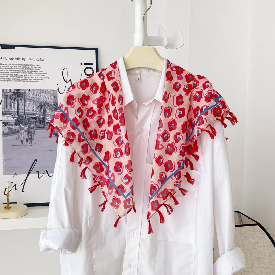 가을과 겨울 새로운 인쇄 90 면 및 리넨 스퀘어 스카프 한국식 대나무 면과 리넨 실크 스카프 간단한 통근 스타일 새로운 국경 목도리스토어 가기