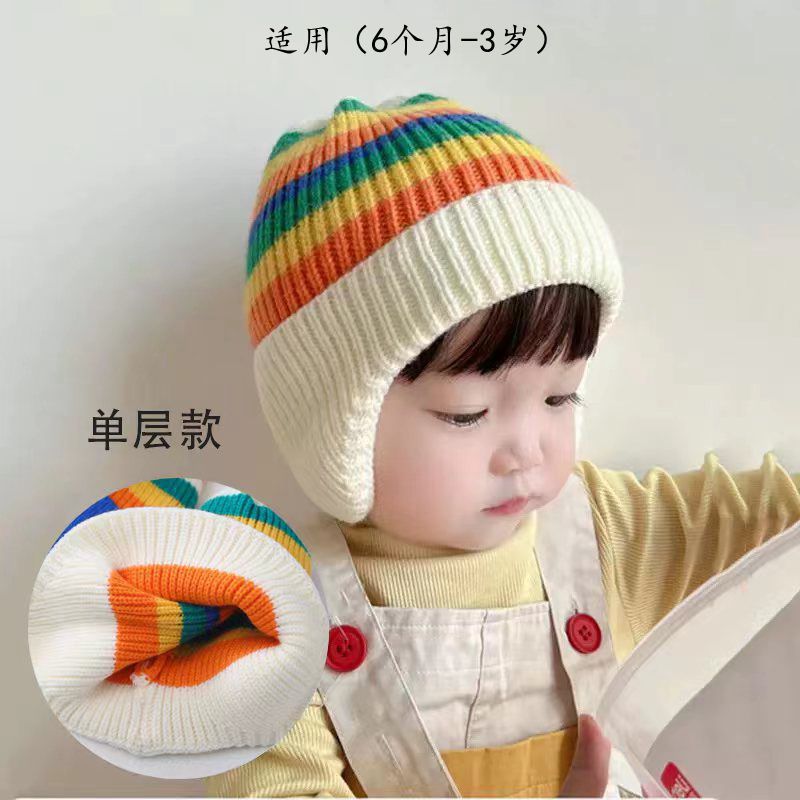 무지개 어린이 모자 두꺼운 가을 겨울 한국 니트 양모 모자 아기 모자 소녀 따뜻한 아기 귀 보호자