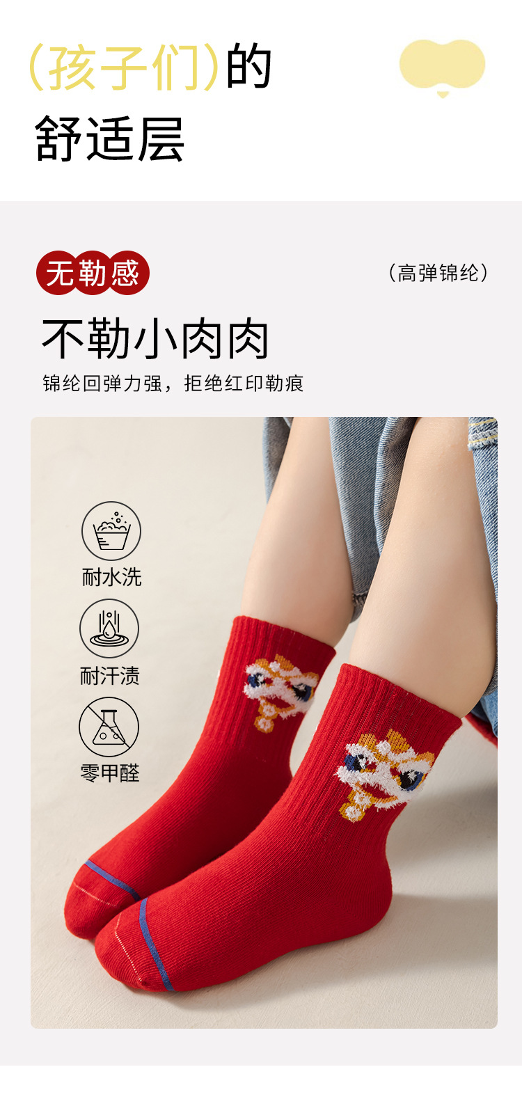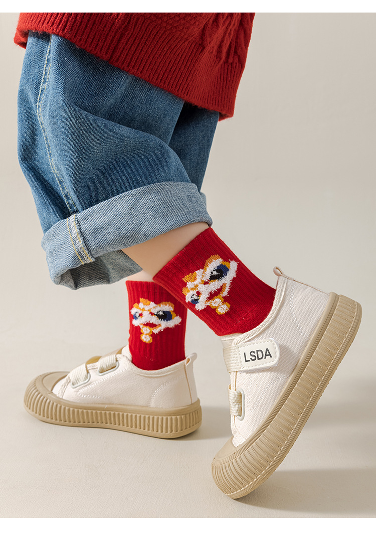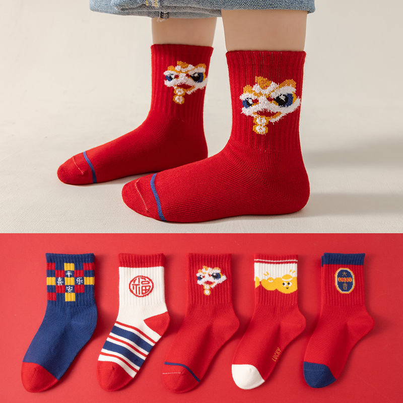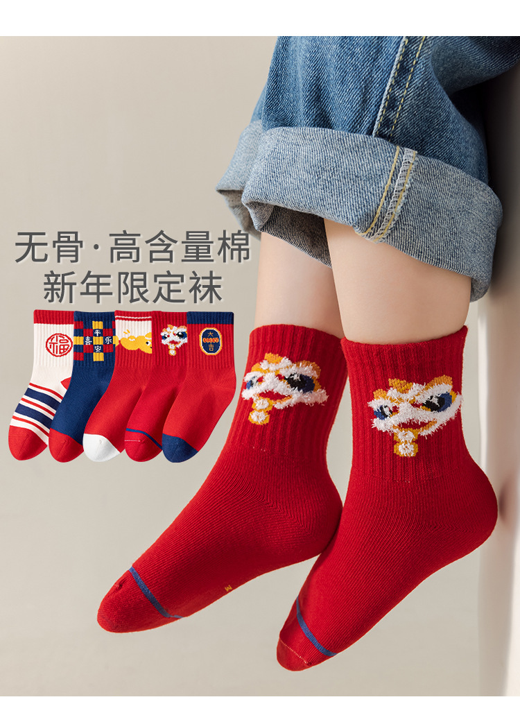 뼈없는 어린이 양말 소년 새로운 가을과 겨울 빨간 튜브 양말 소년 새해 축제 출생 년 빨간 양말 도매스토어 가기