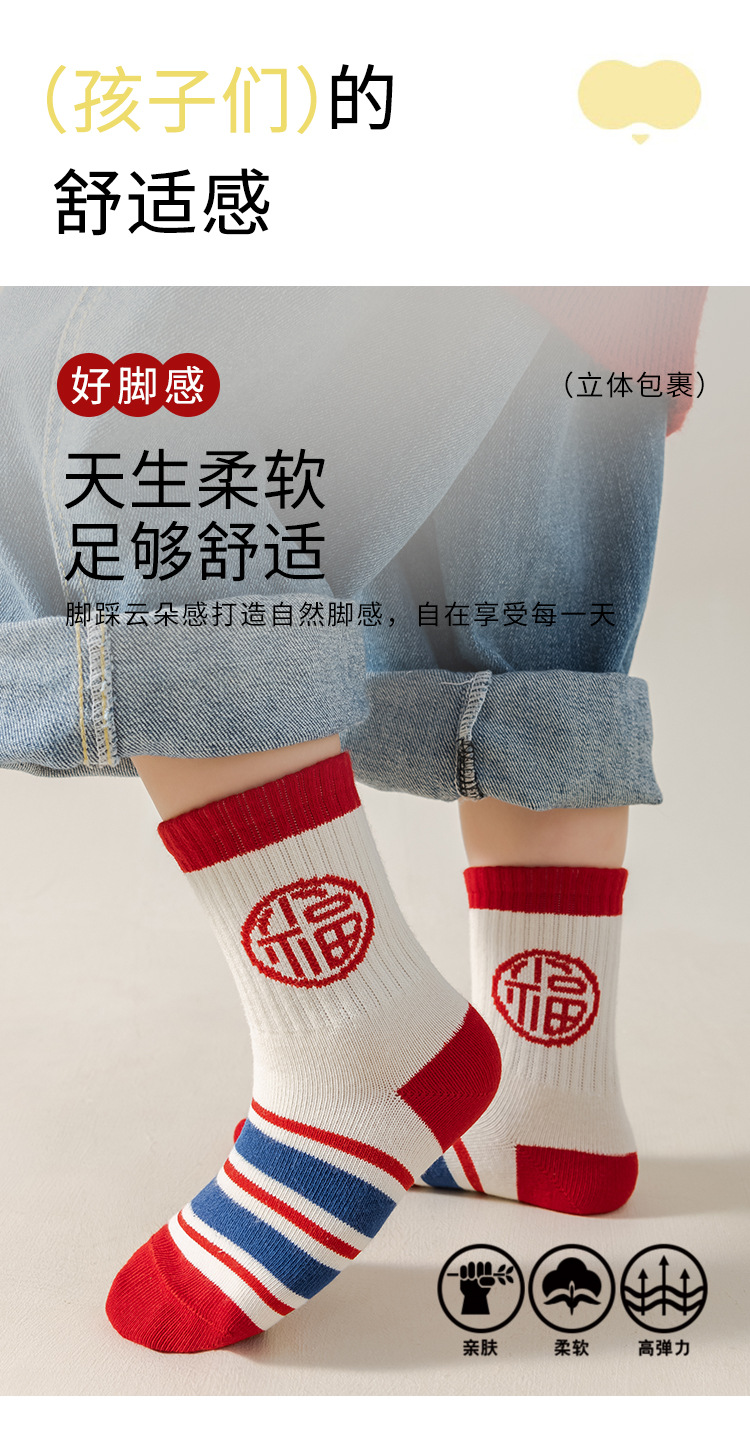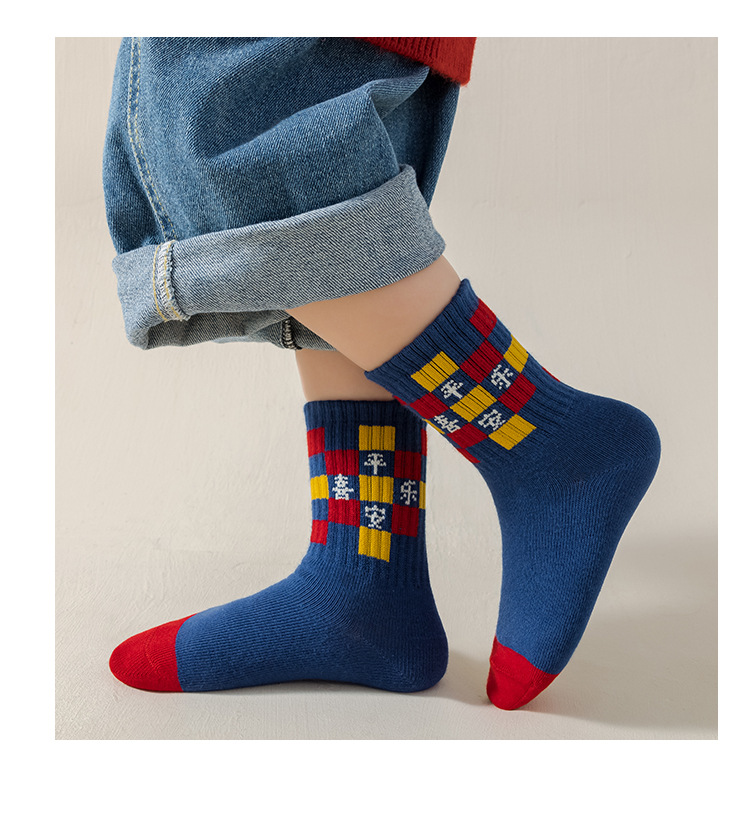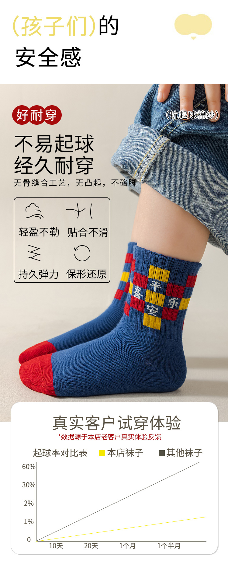 뼈없는 어린이 양말 소년 새로운 가을과 겨울 빨간 튜브 양말 소년 새해 축제 출생 년 빨간 양말 도매스토어 가기