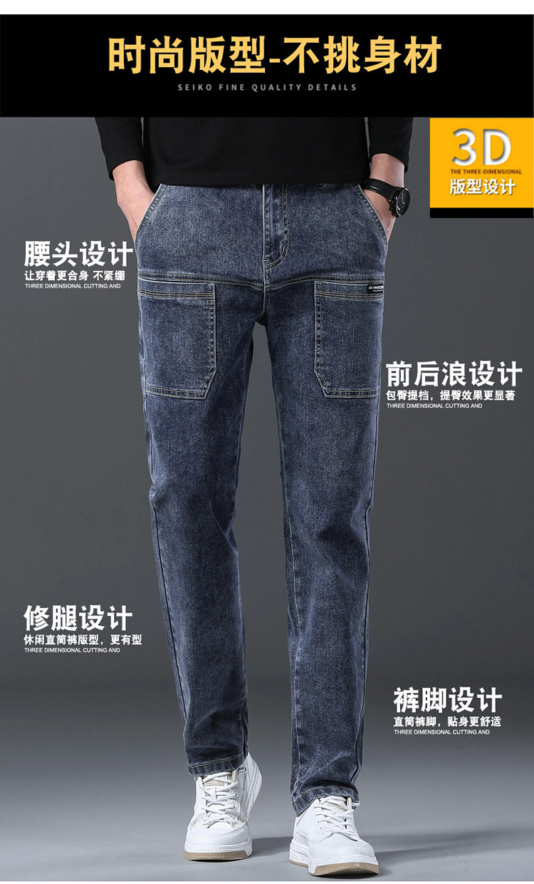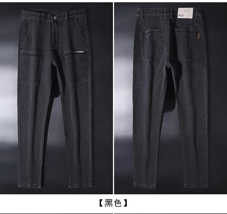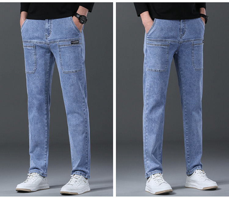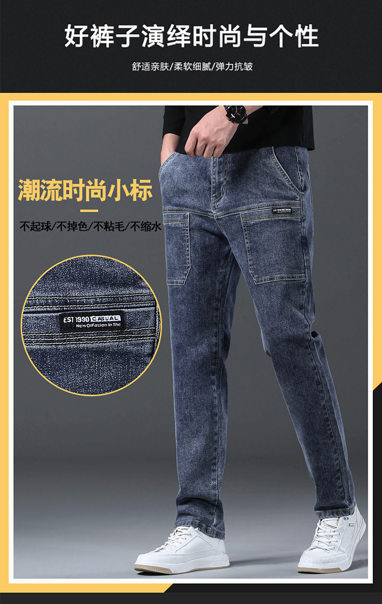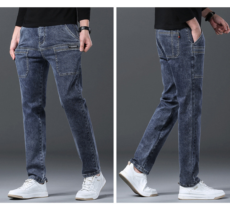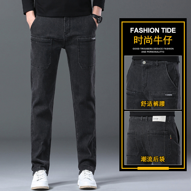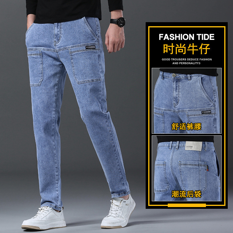 6 포켓 스트레치 청바지 남성용 트레몰로 폭발 트렌드 조커 작은 스트레이트 바지 2024 봄과 가을 데님 바지스토어 가기