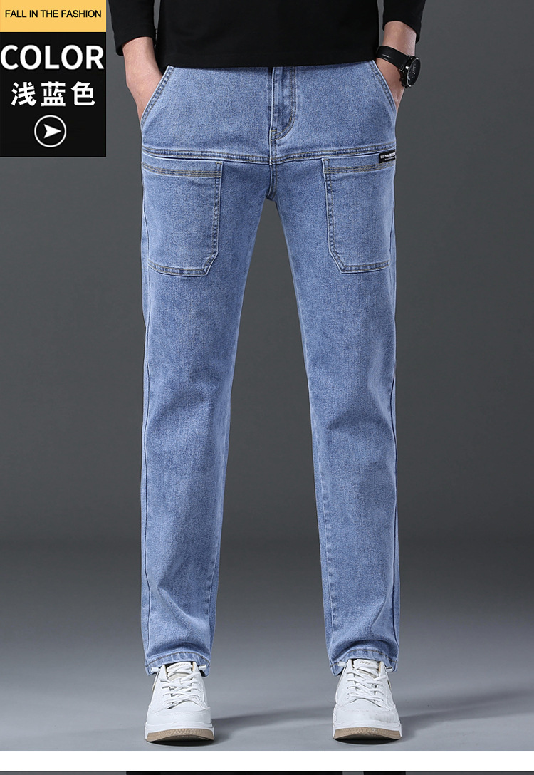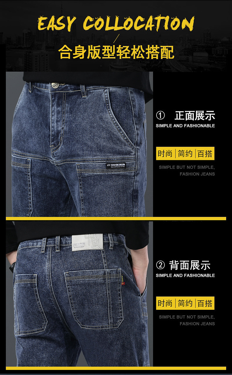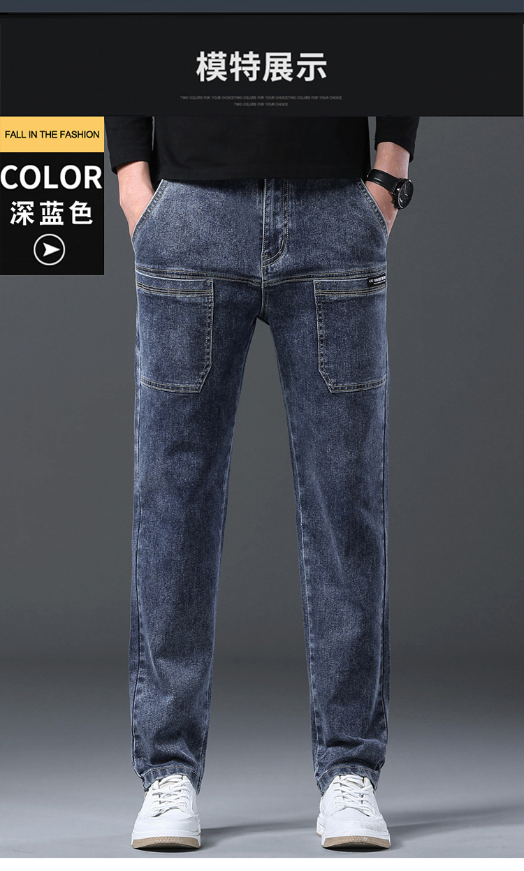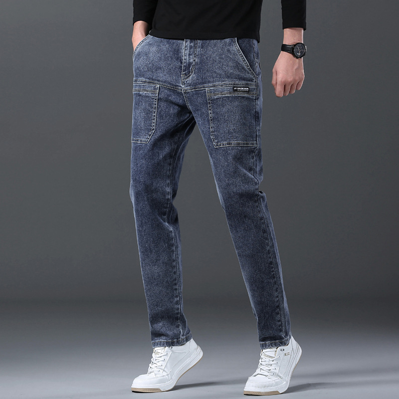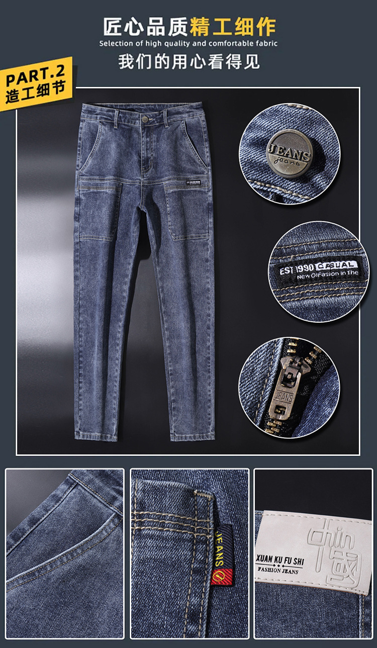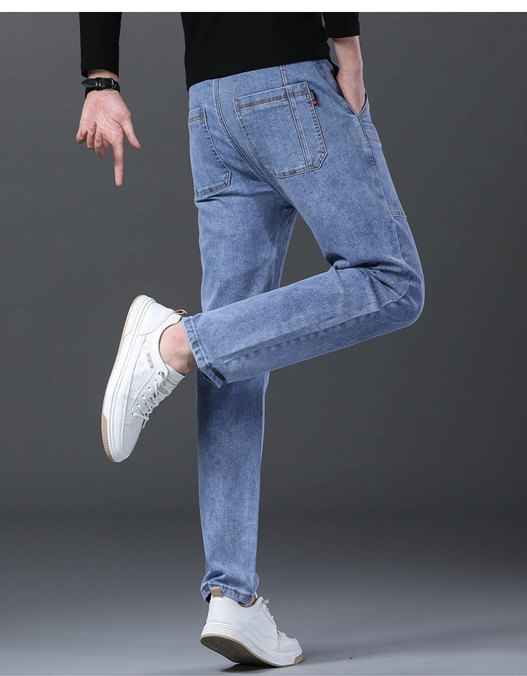 6 포켓 스트레치 청바지 남성용 트레몰로 폭발 트렌드 조커 작은 스트레이트 바지 2024 봄과 가을 데님 바지스토어 가기