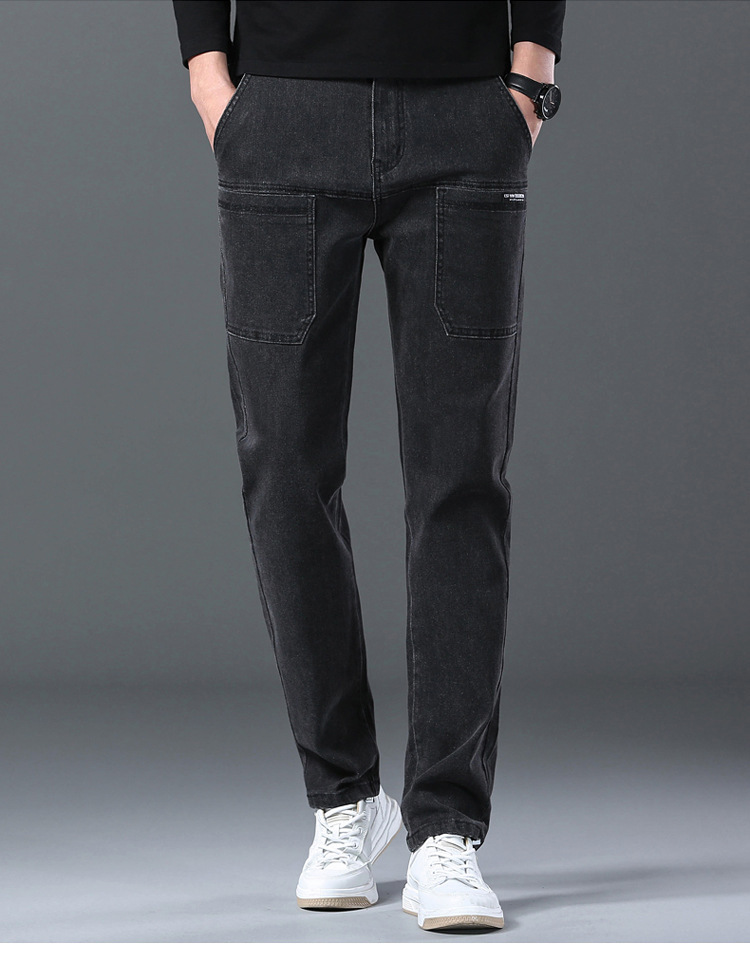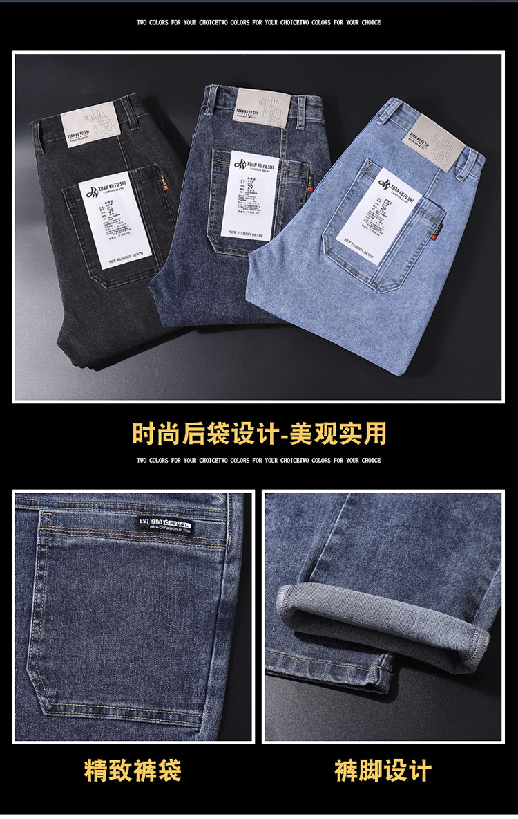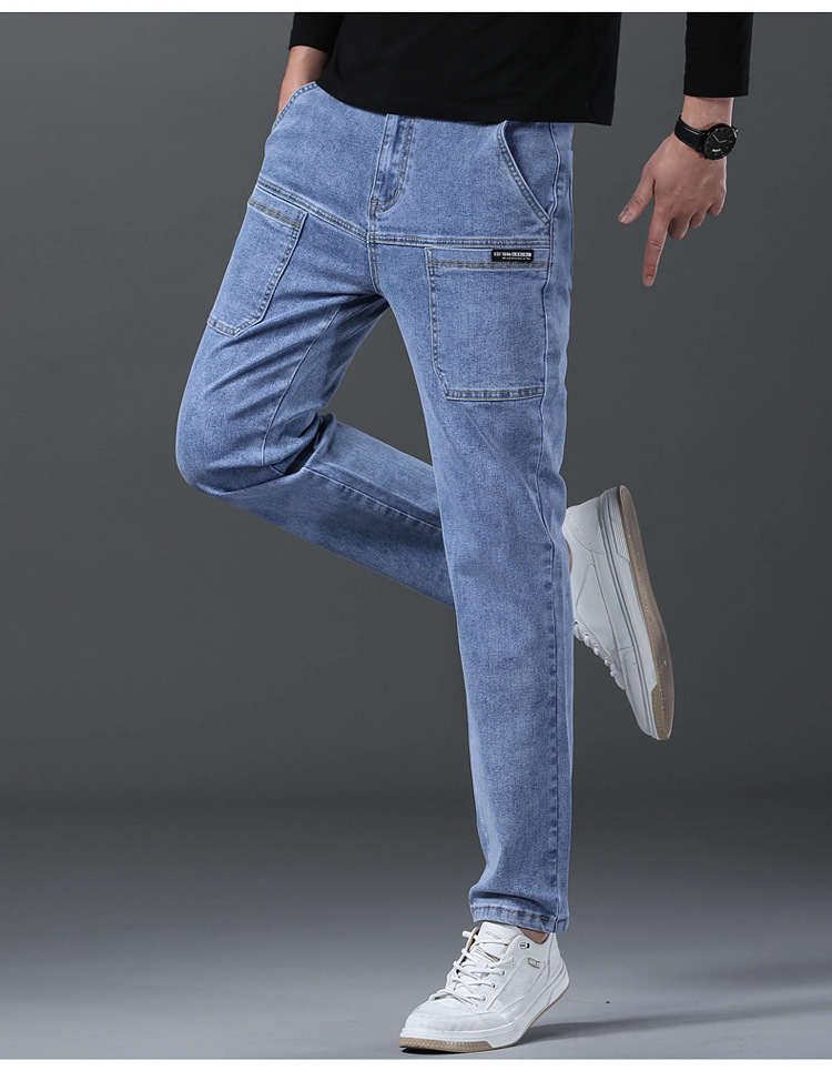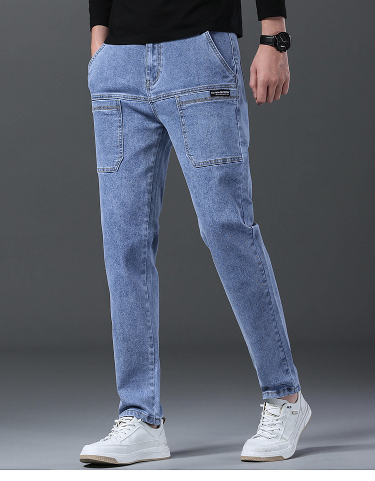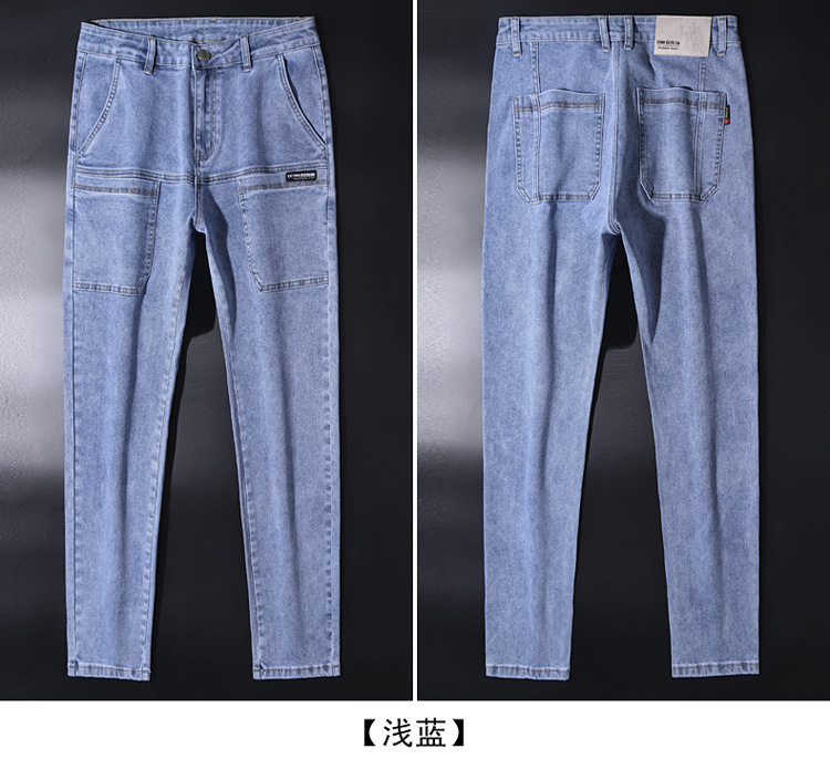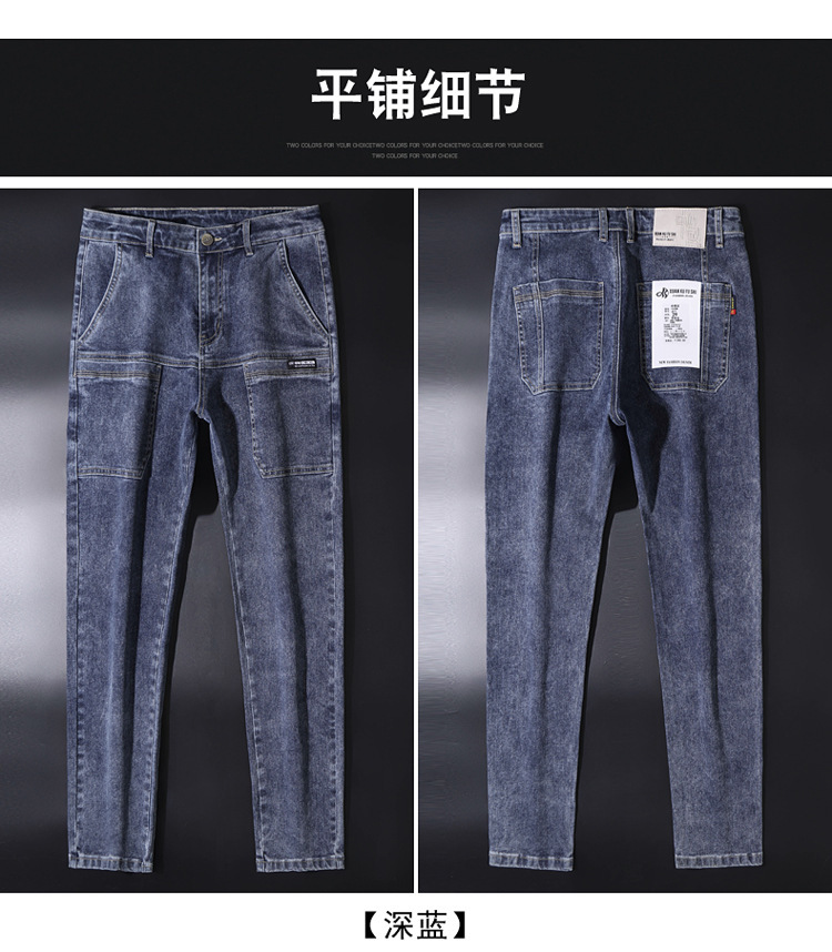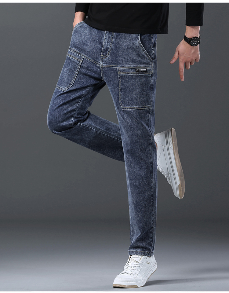 6 포켓 스트레치 청바지 남성용 트레몰로 폭발 트렌드 조커 작은 스트레이트 바지 2024 봄과 가을 데님 바지스토어 가기