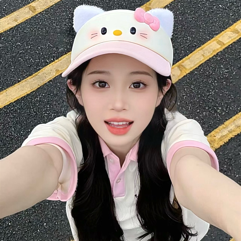 헬로 키티 귀여운 자외선 차단제 모자 야구 모자 kt 고양이 차양 그물 붉은 학생 자전거 큰 모자 테두리 여름